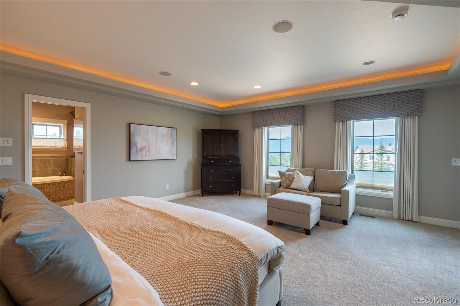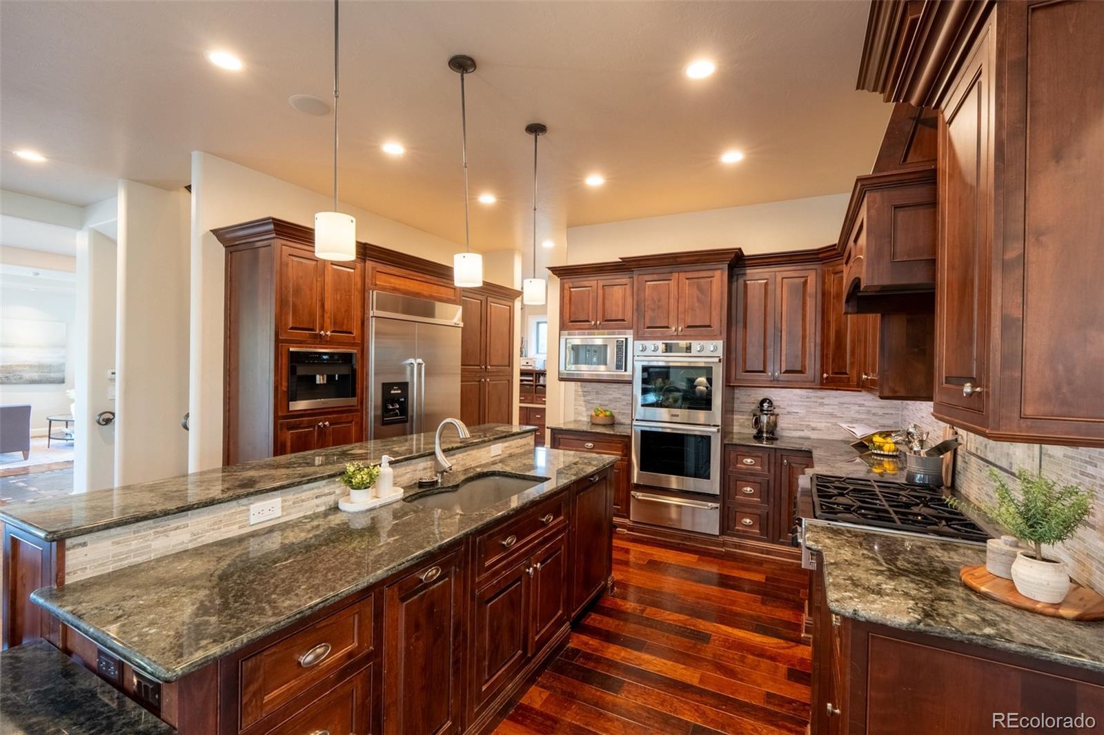Discover luxury living in this beautifully crafted custom home in the exclusive gated community of Toscano in Flying Horse. This lovely residence offers five spacious bedrooms and four elegant bathrooms meticulously maintained by the original homeowners. Spanning an impressive 5,560 sq. ft., this home perfectly balances luxury and comfort. Enjoy premium features by Dacor, Miele, SubZero, Pella, Hunter Douglas, and Toto. The gourmet kitchen and butler's pantry offer luxury and convenience. Heated radiant floors in all bathrooms and the entire lower level provide extra warmth and comfort. The exterior boasts extensive landscaping and an efficient irrigation system, along with a snow melt system for the front step and sidewalk. The oversized four-car garage with epoxy-coated floors and a dedicated outlet for Level 2 electric vehicle charging. A golf cart garage is an added bonus when attending your tee time at the Club at Flying Horse. Step outside to a lovely outdoor living space complete with a cozy patio fireplace, pergola, grill, refrigerator, and ample cooking space—perfect for entertaining! This home truly has it all. Don’t miss your opportunity to own this incredible property. Welcome home!!