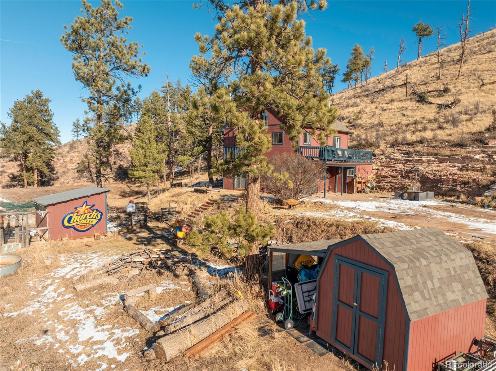 Mountain rural location on 5 acres, located just 20 minutes North from Woodland Park, in Trout Creek Ranches. The area offers large lots with horse allowed, only 15 minutes to the S Platte and fly fishing paradise. This home is equipped with a brand new roof, and new exterior paint! The opportunities to make this home complete with your own personal touches are endless! The floorplan is a raised ranch design, currently entering from the lower level. A main level deck off the kitchen could be equipped with a stairway to enter the main floor as well... 4 bedrooms are included in this home, one on the lower level, adjacent a family room area w/ a 3/4 bath, as well as 2 bedrooms on the main floor, and one additional bedroom upstairs, with an additional non-conforming space, can be used as either a bedroom or an office, making the uppermost level a great place for a master suite with a 1/2 bath servicing this floor. Outdoor enthusiasts opportunities abound in this region, included on this parcel is a shooting backstop for 50-100 yd shooting range. Great sized chicken coop, ready to go. Serviced by a 2 gpm household well w/ rights to water non-domestic animals such as horses, a septic system, and propane furnace with a wood-burning stove to help offset heating expenses. This could be your new mountain getaway!