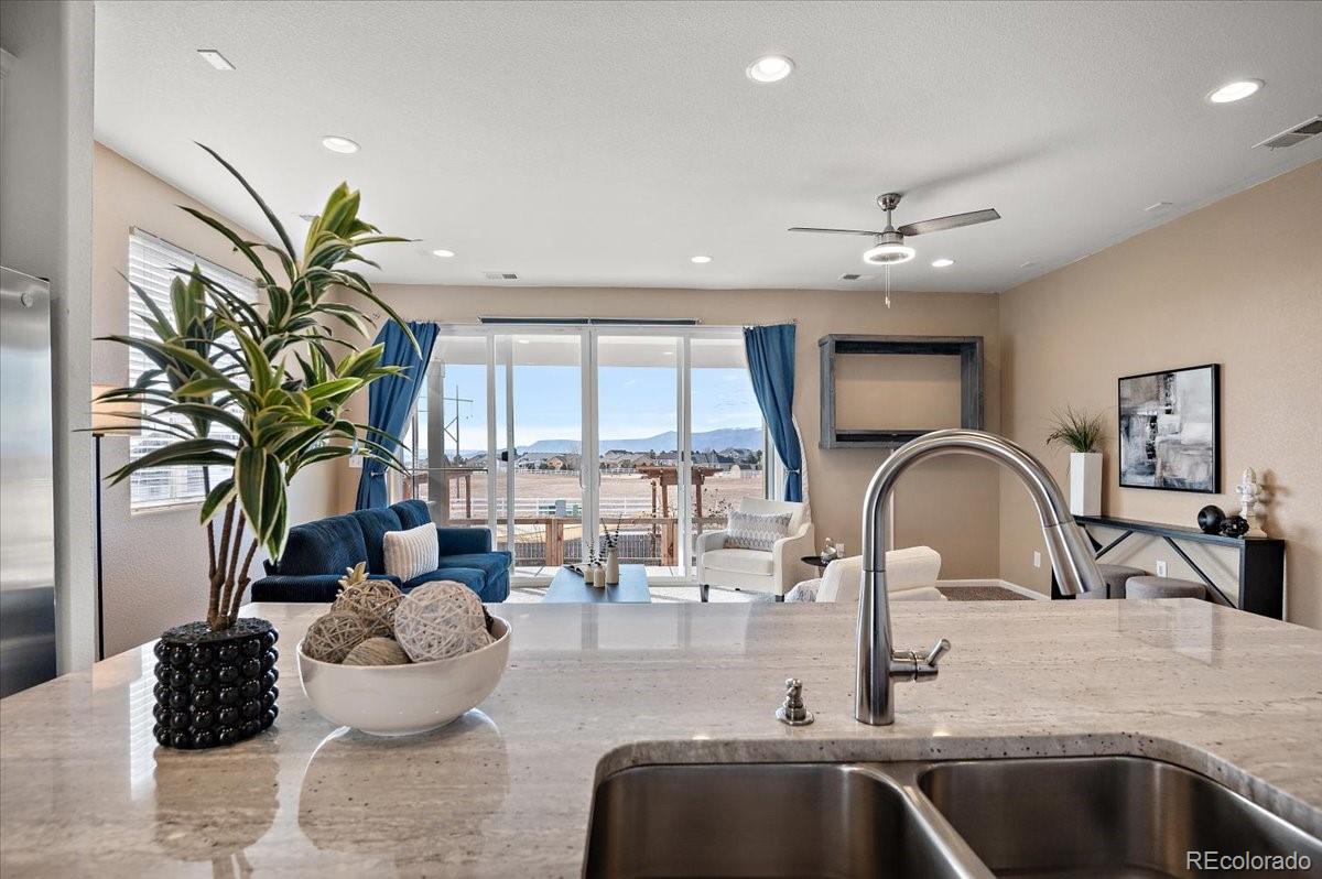 *Inviting and spacious ranch-style home *Open-concept great room floor plan *Beautiful kitchen featuring a center island, white cabinetry, granite countertops, breakfast bar, large pantry, and stainless steel appliances including gas range, refrigerator, dishwasher, and microwave *Primary suite with double vanities, oversized shower, and large walk-in closet *Flex area ideal for a home office, dining area or additional living space *Additional bedroom and full bathroom *Dedicated laundry room with washer and dryer *Three-car garage ands storage shed in the backyard *Generous lot size with beautiful mountain views *Covered front porch *Fenced backyard with covered patio and stunning water feature with koi *Conveniently located to parks and schools