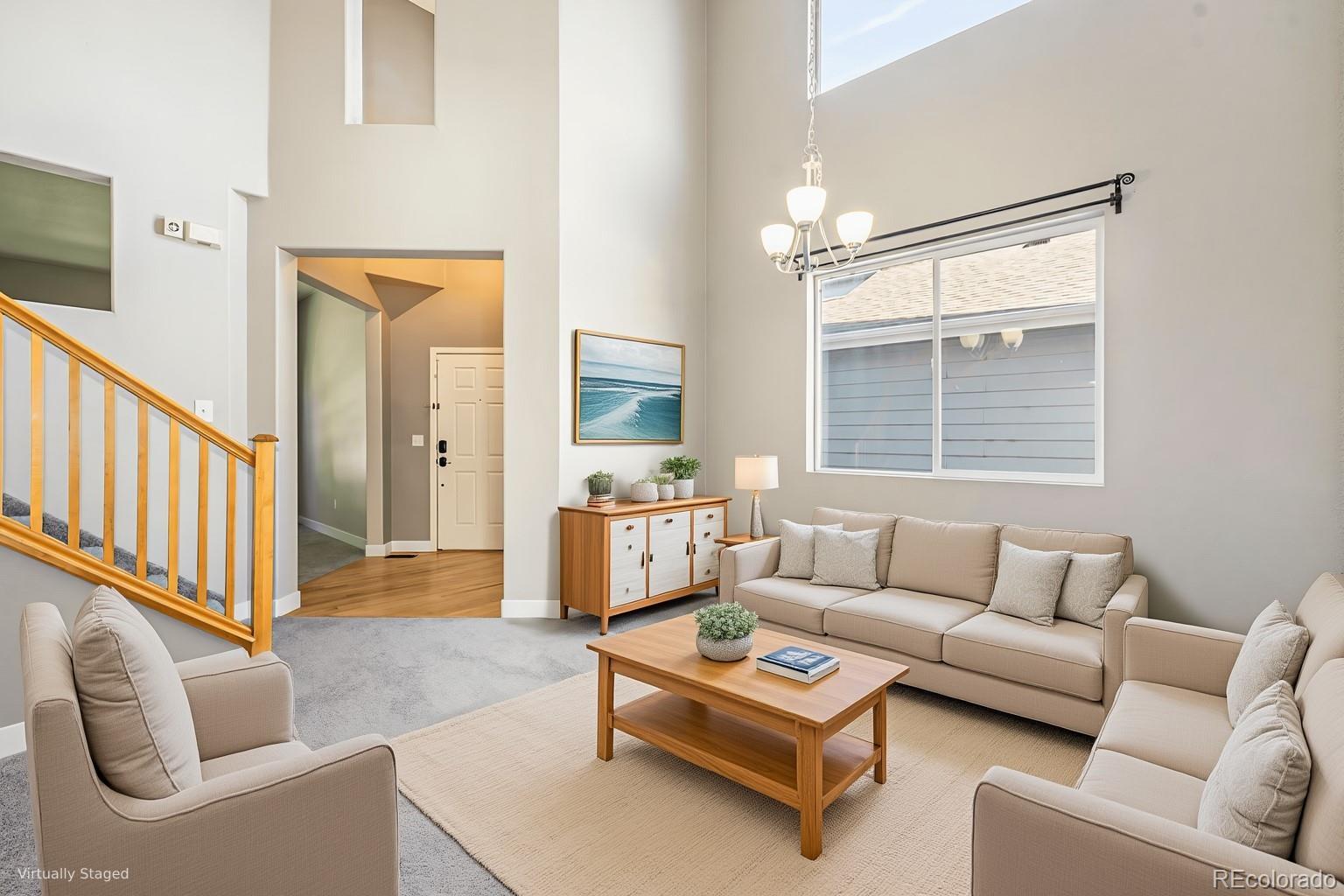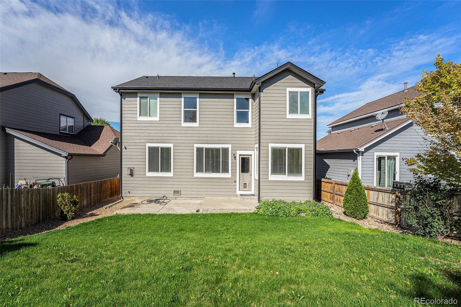 Schedule a showing for this beautiful two-story home located in the desirable Buffalo Mesa subdivision of Commerce City, Colorado. New carpet, new paint interior and exterior, new flooring, and a new roof! As you step inside, you'll immediately appreciate the vaulted ceilings and abundant natural light that flow throughout the main living areas. The spacious family room is the heart of the home, featuring a cozy gas fireplace and accent lighting—perfect for relaxing evenings with loved ones. The open kitchen is a chef’s dream with a convenient island, and plenty of storage. It’s the ideal space for cooking, entertaining, and creating lasting memories. Retreat to the expansive primary bedroom, where vaulted ceilings and a generous walk-in closet provide a sense of luxury. The unfinished basement, with its multiple egress windows, presents endless possibilities—whether you envision a home gym, an additional bedroom, or a customized entertainment space. Buffalo Mesa offers approximately 12 acres of open space, a community pool, parks, and trails—all just blocks from your front door. The neighborhood is perfectly positioned near top-rated schools, Buffalo Mesa trail, and Buffalo Run Golf Course and Denver Airport.