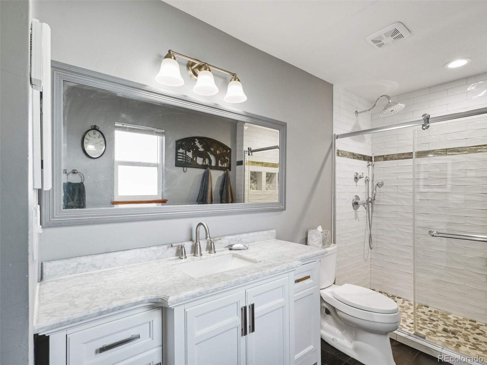 Welcome to 555 E Jamison in Littleton — the home you’ve been waiting for! Perfectly located in a highly desirable community, this beautifully updated residence offers the best of Colorado living with upgrades inside and out. Featuring four spacious bedrooms upstairs, including a fully renovated primary ensuite with heated floors, this home blends comfort and elegance. The main level showcases hardwood floors, an updated kitchen with granite countertops, and an eat-in area that flows seamlessly into the family room anchored by a cozy gas fireplace. Recent upgrades provide peace of mind: new roof and gutters (2023), new deck and railings (2022, with bronze-painted railings), exterior paint (2022), new windows installed between 2018–2022, refinished hardwood floors (2021), window well covers (2024), whole-house water softener, underground sprinkler system, and a convenient dog washing station. Step outside to a gorgeous professionally landscaped yard with rock walls, new trees, a vegetable garden, and a separate shed—perfect for gardening enthusiasts and those who love outdoor living. All of this is set in a prime Littleton location close to top-rated schools, parks, trails, shopping, dining, and easy access to C-470 and the foothills. Whether you’re enjoying evenings on the deck, entertaining in the open-concept living spaces, or exploring everything Littleton has to offer, this home is the perfect blend of comfort, convenience, and Colorado lifestyle.