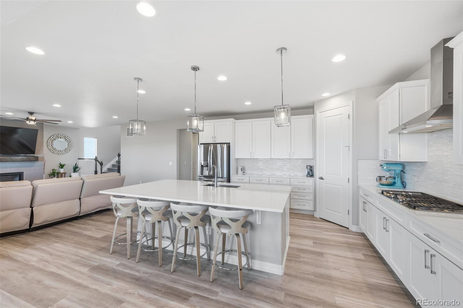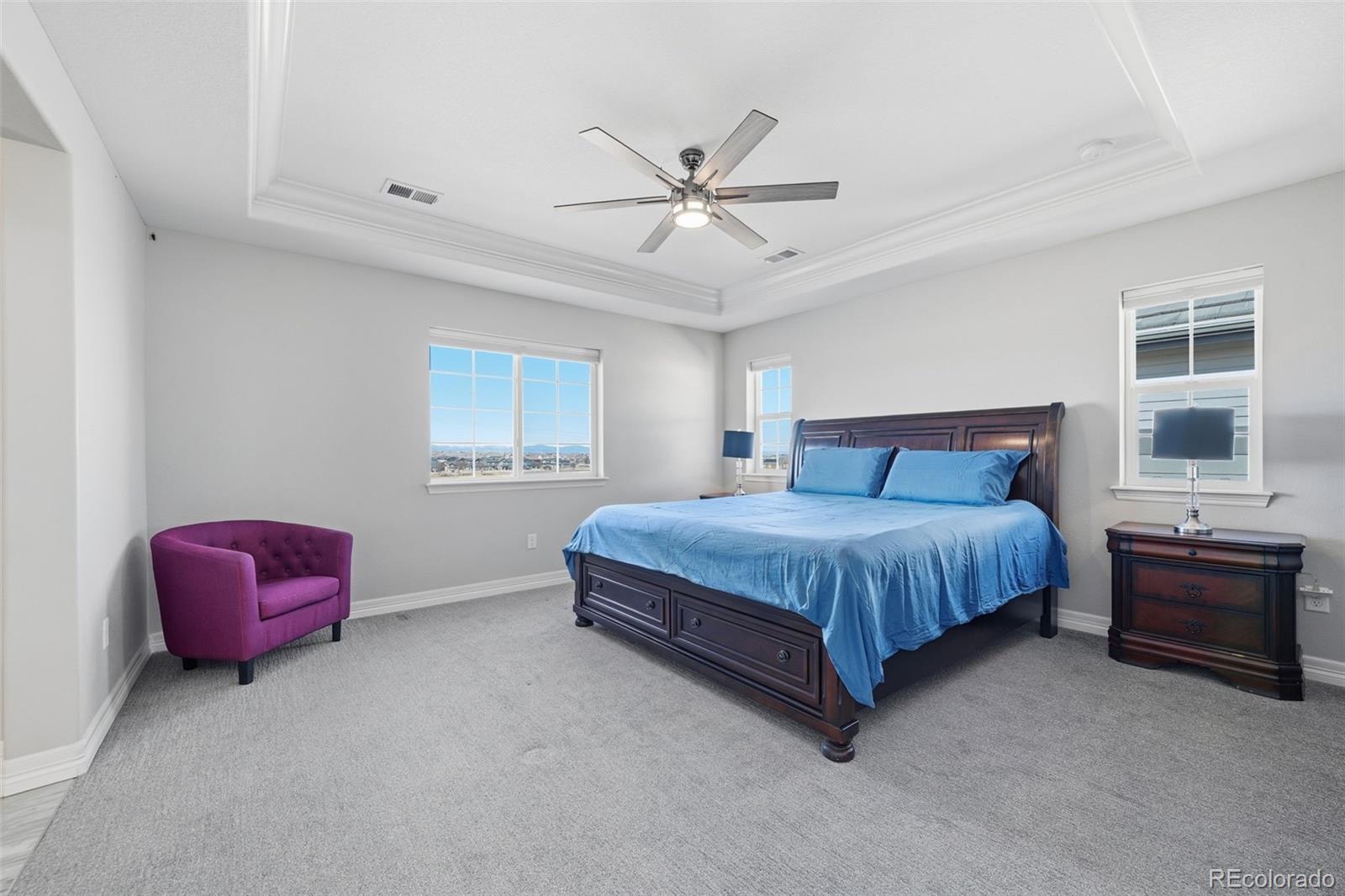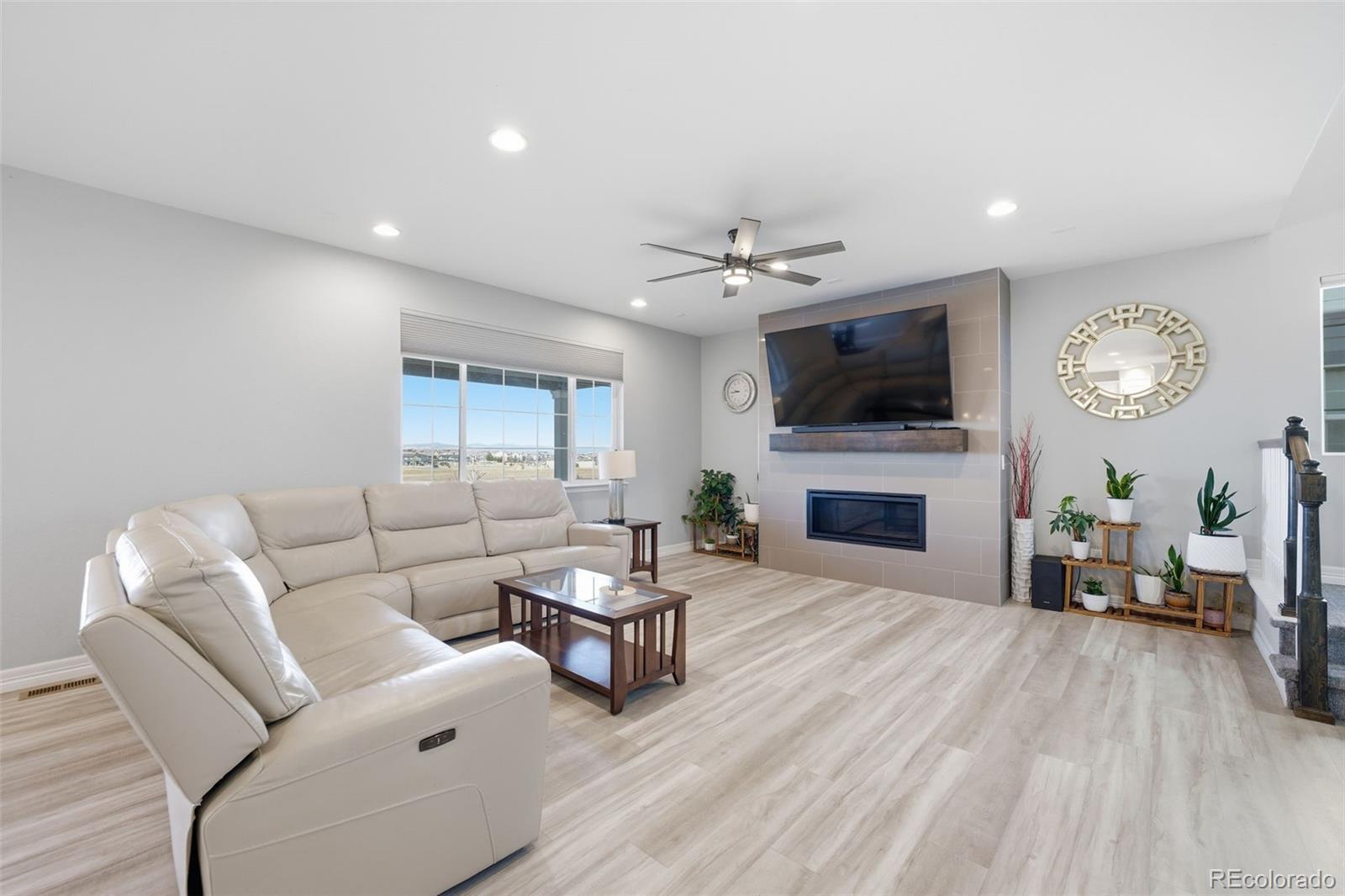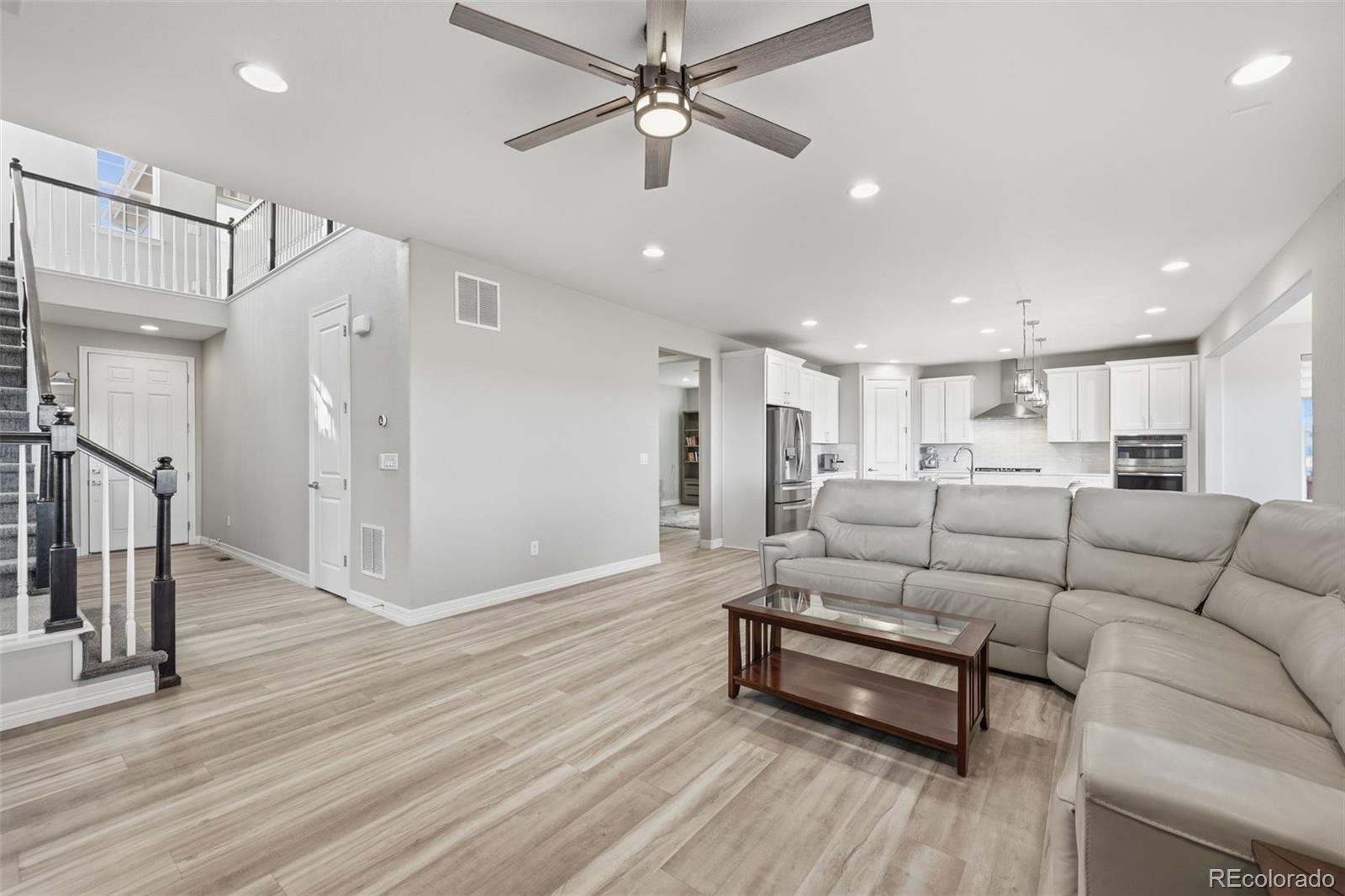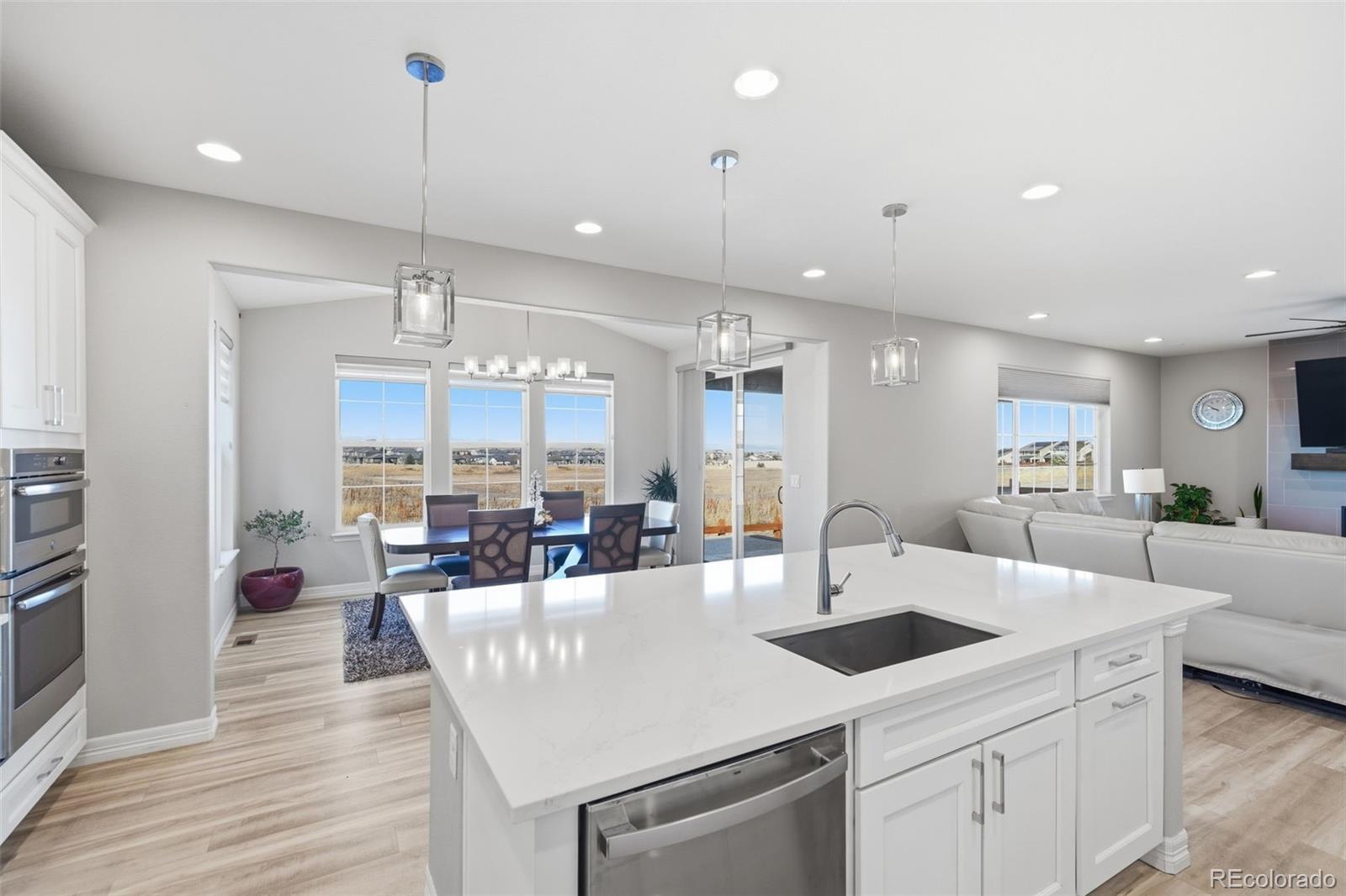 Ideally situated with stunning Front Range and mountain views backing to open space, this two-story residence in sought-after Meridian offers an exceptional setting, combined with luxury finishes and modern touches. The light and bright open floor plan features beautiful LVP floors, high 10’ ceilings, and a neutral palette to complement the functional layout of the main living spaces. The gourmet kitchen is equipped with an oversized center island, a stainless steel appliance suite, quartz countertops, upgraded shaker 42” cabinetry, and a walk-in pantry. Enjoy hosting dinner parties or intimate family meals in the formal dining space, drenched in natural light and offering unparalleled westerly facing views. Outside, the partially covered patio is ready for summer BBQs while overlooking low-maintenance professional landscaping and a turf yard. Upstairs, the private living quarters include a bonus loft, three generously sized secondary bedrooms, a full bath, laundry, and the owner’s suite. This serene retreat features tre-ceilings, a sizeable walk-in closet, and a spa-like ensuite bath with a huge walk-in glass-and-tile shower. Additional features of this turnkey residence include a main-floor home office, an attached 3-car garage, and a full, unfinished, plumbed basement ready for future expansion or ample storage. Meridian is an established family-friendly community with an outdoor pool, parks, a playground, and miles of trails. Ideally situated within minutes of award-winning Douglas County schools, and endless shopping, dining, and entertainment in Downtown Parker, Park Meadows, and DTC, this residence stands out as a unique opportunity in a premier neighborhood.