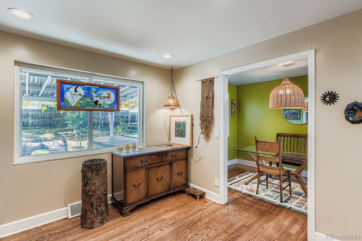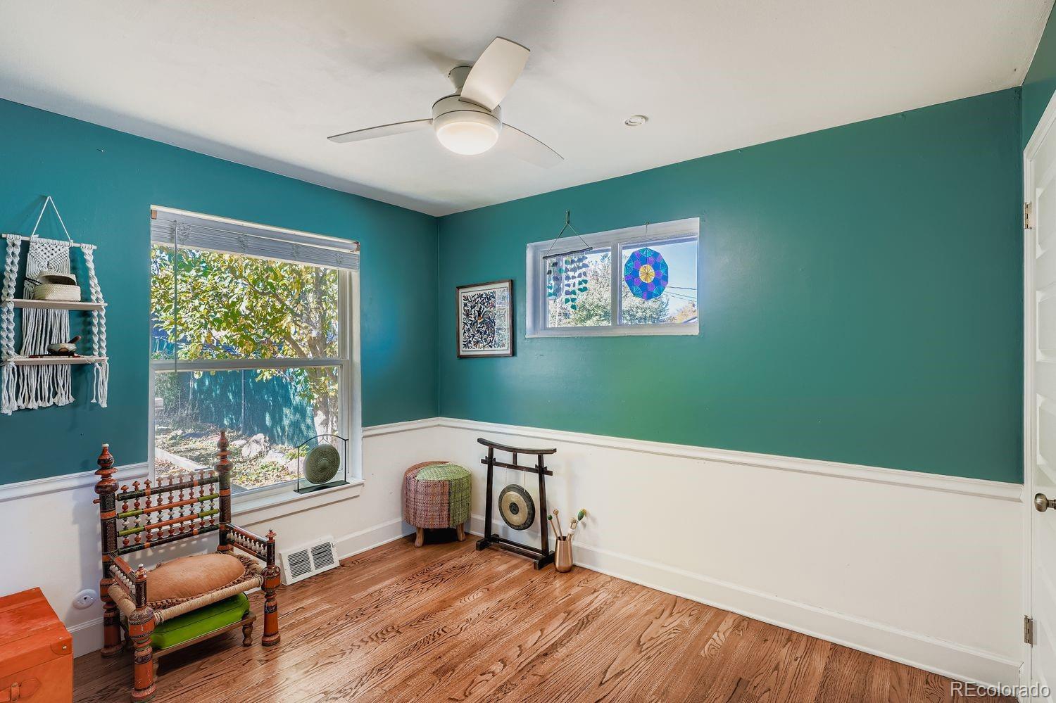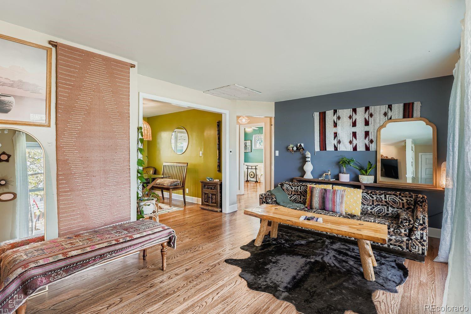 OPEN HOUSE: Saturday November 1st 3-6pm, and Sunday November 2nd 12-2pm. Step into a home that radiates soul, creativity, and individuality. This eclectic brick ranch isn’t just a house — it’s a storybook of character, color, and warmth, blending vintage details with personal flair to create a space that feels both nostalgic and refreshingly alive. From the moment you walk in, you’re welcomed into a cozy living and dining space filled with natural light from the large updated windows. Each room has its own unique character, offering a comfortable and inviting feel that makes the home easy to love and easy to live in. The home’s mid-century bones and brick exterior set the stage for its unique charm, while the interior exudes a timeless comfort that’s impossible to replicate. The primary bedroom features a gas fireplace, adding warmth and a classic touch to the space. Step outside and discover a backyard oasis that feels like something out of a hidden garden — apple, raspberry, plum, and rhubarb plants mingle with rose bushes, blooms, and butterfly-attracting perennials. It’s a space designed for connection with nature, where mornings begin with birdsong and evenings end in the warm glow of the setting sun. Beyond the main home, the heated ADU stands out as a truly unique space, complete with a garage-style door that adds a modern, industrial touch. With plenty of flexibility, it’s perfect for a yoga or workout studio, creative workspace, home office, or private retreat. Located in one of the most convenient yet serene areas near the foothills, you’ll enjoy easy access to Green Mountain, I-70, C-470, 6th Avenue, and the light rail, as well as a park with pickleball and tennis courts just a block away. It’s the best of both worlds — a tranquil haven close to the pulse of the city and the gateway to the mountains. This property is more than a place to live — it’s a place to be inspired. Eclectic, soulful, and one-of-a-kind.