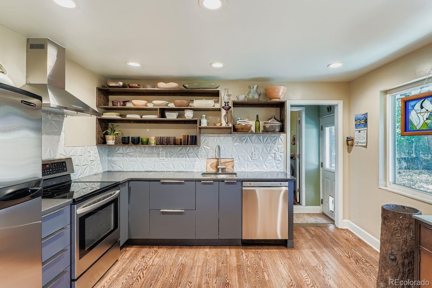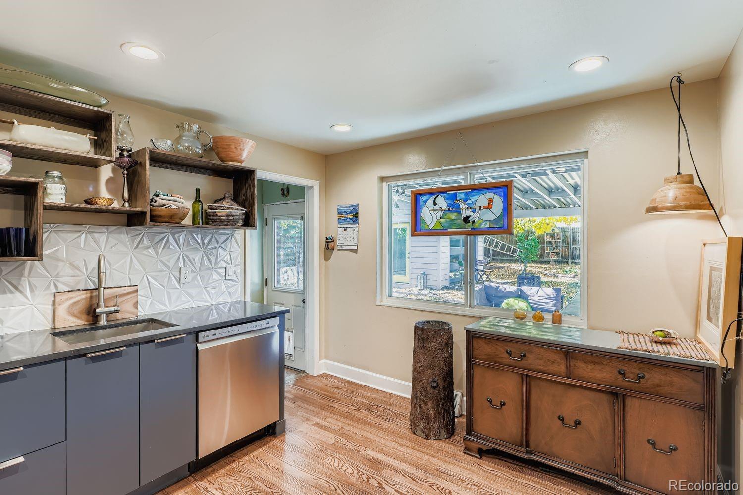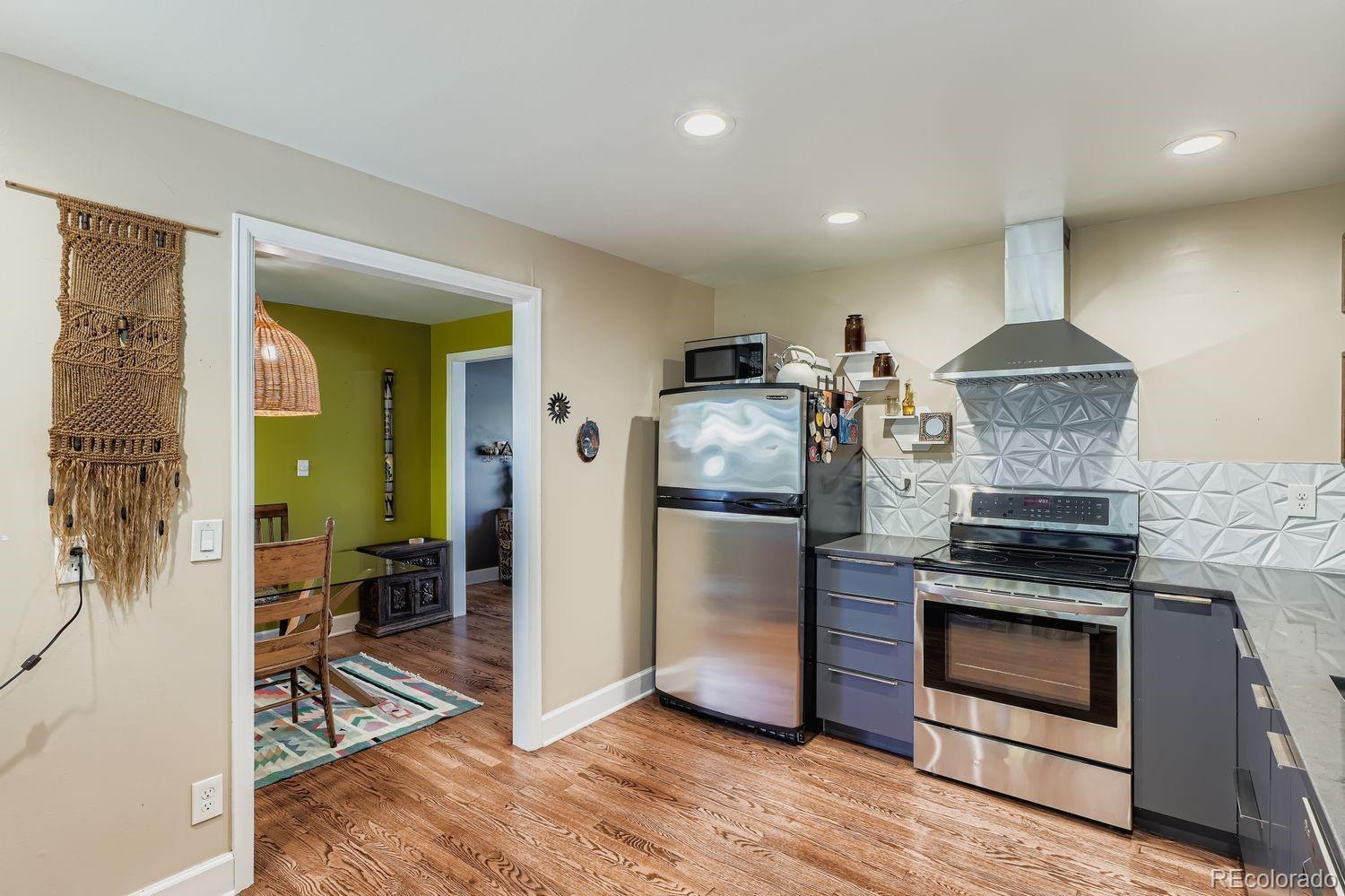 OPEN HOUSE: Saturday November 1st 3-6pm, and Sunday November 2nd 12-2pm. Step into a home that radiates soul, creativity, and individuality. This eclectic brick ranch isn’t just a house — it’s a storybook of character, color, and warmth, blending vintage details with personal flair to create a space that feels both nostalgic and refreshingly alive. From the moment you walk in, you’re welcomed into a cozy living and dining space filled with natural light from the large updated windows. Each room has its own unique character, offering a comfortable and inviting feel that makes the home easy to love and easy to live in. The home’s mid-century bones and brick exterior set the stage for its unique charm, while the interior exudes a timeless comfort that’s impossible to replicate. The primary bedroom features a gas fireplace, adding warmth and a classic touch to the space. Step outside and discover a backyard oasis that feels like something out of a hidden garden — apple, raspberry, plum, and rhubarb plants mingle with rose bushes, blooms, and butterfly-attracting perennials. It’s a space designed for connection with nature, where mornings begin with birdsong and evenings end in the warm glow of the setting sun. Beyond the main home, the heated ADU stands out as a truly unique space, complete with a garage-style door that adds a modern, industrial touch. With plenty of flexibility, it’s perfect for a yoga or workout studio, creative workspace, home office, or private retreat. Located in one of the most convenient yet serene areas near the foothills, you’ll enjoy easy access to Green Mountain, I-70, C-470, 6th Avenue, and the light rail, as well as a park with pickleball and tennis courts just a block away. It’s the best of both worlds — a tranquil haven close to the pulse of the city and the gateway to the mountains. This property is more than a place to live — it’s a place to be inspired. Eclectic, soulful, and one-of-a-kind.