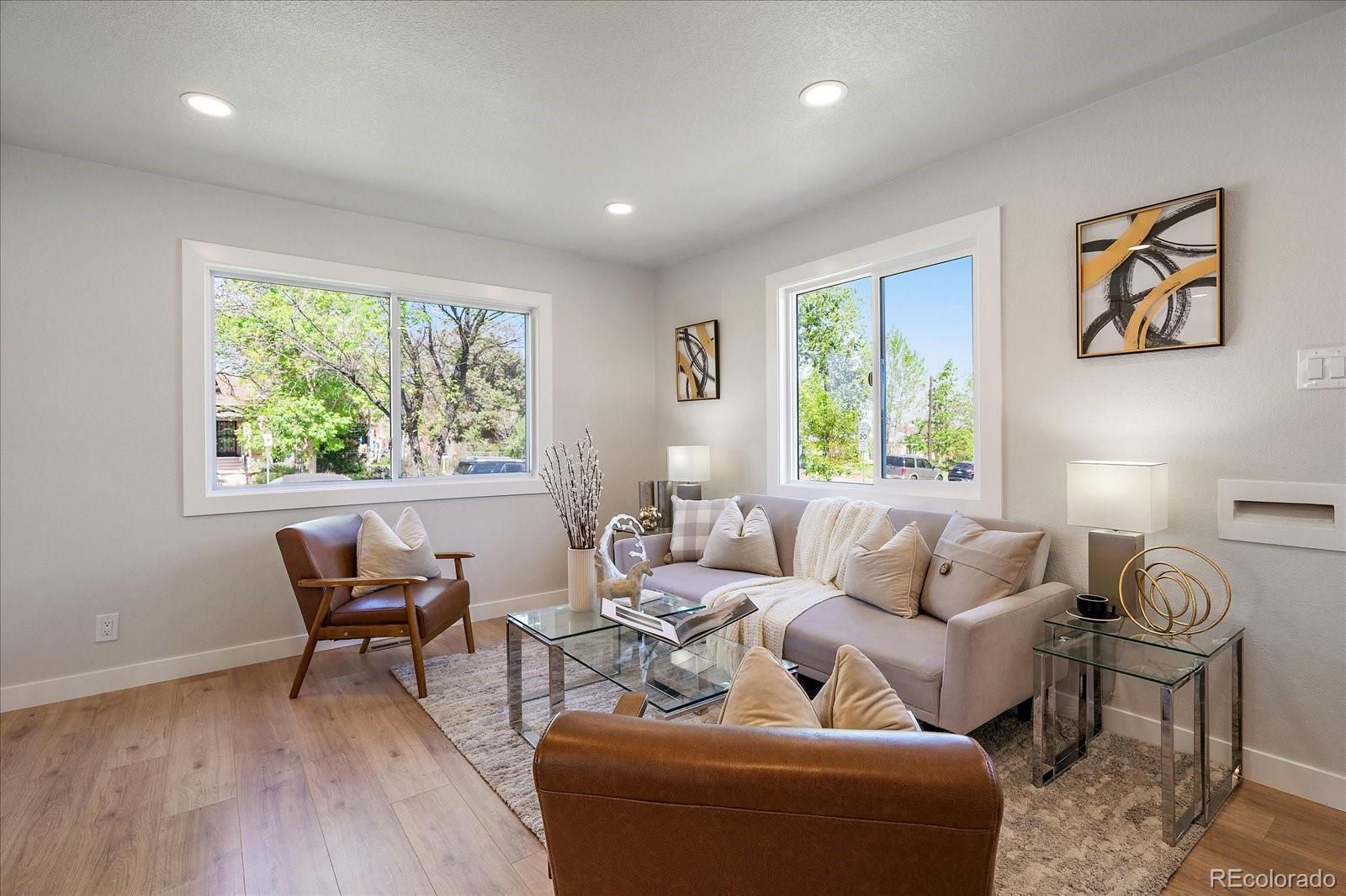 Location Location! Welcome to your cozy urban retreat in the vibrant City Park North neighborhood of Denver! This charming 2 bed 1 bath townhome offers the perfect blend of character and convenience, ideal for those seeking a low-maintenance lifestyle without sacrificing style or comfort. Step inside to discover a thoughtfully designed open floor plan that maximizes space and natural light. The welcoming living area is perfect for relaxing after a long day, with plenty of room for your favorite furniture pieces and décor. The adjacent kitchen is a chef's delight, featuring quartz countertops, new SS appliances, gas stove and ample cabinet space for all your culinary essentials. Individual Washer/Dryer hook ups in the kitchen pantry. . The adjacent full bathroom is well-appointed and offers convenience with its modern fixtures and finishes.2nd bedroom or office rounds out the sleeping arrangements. Outside, you'll find a private fenced large yard where you can soak up the sun, enjoy al fresco dining, or simply unwind with a good book and a glass of wine. A fenced yard provides privacy and a safe space for pets to roam and play. Walk out your gate to 3 off street parking spots and trash bin area. This unit has spots 3,4 and 5. Located just steps from the vibrant shops, restaurants, and parks of city park and Rhino, this home offers the perfect blend of urban living and neighborhood charm. With easy access to downtown Denver and major highways, you'll enjoy the best of city living without sacrificing the tranquility of suburban life. Don't miss your opportunity to own this remodeled gem in one of Denver's most sought-after neighborhoods. Schedule your showing today. Parking bay #4,5,6. Don't miss out only a few units remaining. NO HOA!!!! Party wall Agreement only. This property qualifies for a lender credit of up to $6,000 through the community reinvestment act. See private comments or contact listing agent for details.