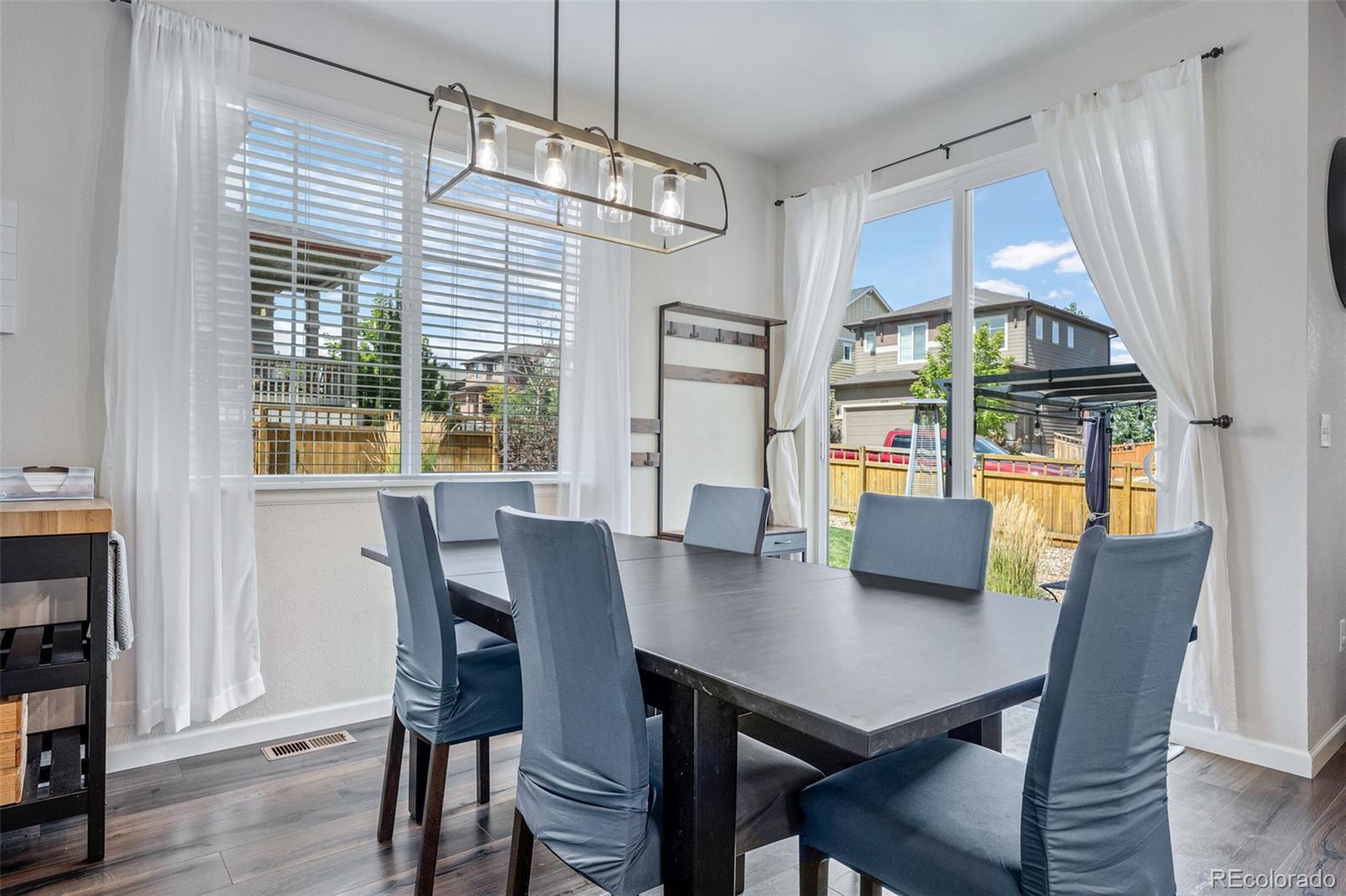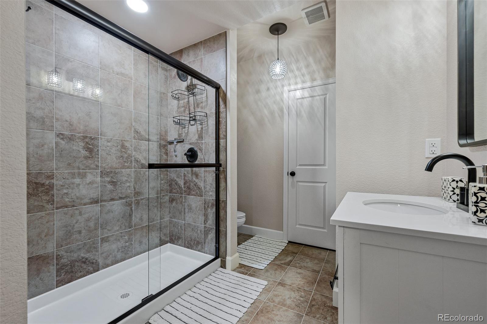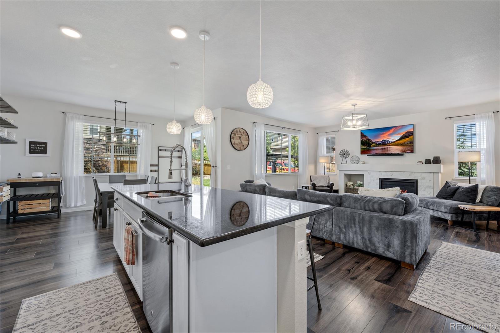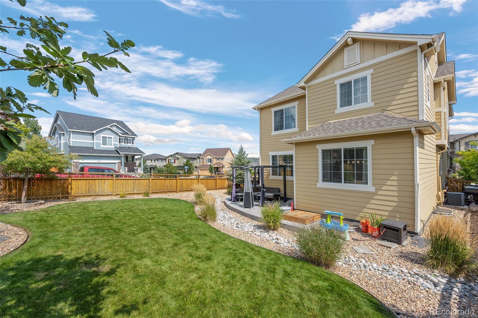 Stunning 5-Bedroom Home in The Meadows – Castle Rock. Welcome to this impeccably maintained and beautifully upgraded home nestled in the highly sought-after Meadows neighborhood of Castle Rock. Boasting 5 spacious bedrooms and 5 bathrooms, this residence offers the perfect blend of functionality and modern convenience. Step inside to discover an open-concept layout flooded with natural light, luxury vinyl plank flooring on the main level and stairs, and newer carpet in the bedrooms. The gourmet kitchen features granite countertops, stainless steel appliances, upgraded sink faucets, and smart lighting, seamlessly flowing into the large living with and dining areas—ideal for entertaining or everyday comfort. Unique switchback ceiling lighting allows for customizable ambiance—daylight or soft glow—all from the same fixture. The main floor office is ideal for remote work, complete with built-in bookshelves and stylish finishes. Upstairs, enjoy a large laundry room with stubs for a utility sink, and generously sized bedrooms with thoughtful upgrades throughout. The finished basement offers a large bedroom and bathroom along with a versatile entertainment room and kitchenette with refrigerator, microwave, dishwasher, and sink--perfect for guests, movie nights, or multi-generational living. Outside, the beautifully landscaped backyard invites relaxation with a wraparound stamped concrete patio, ideal for gatherings or quiet evenings. The 2-car garage features interlocking floor tiles for a clean, polished look. Additional highlights include: Radon mitigation system, Upgraded lighting fixtures throughout, close proximity to parks, restaurants, retail, medical facilities, and quick access to I-25 for easy commuting. This home truly has it all—style, space, and smart upgrades in a vibrant community. Don’t miss your chance to experience it in person!