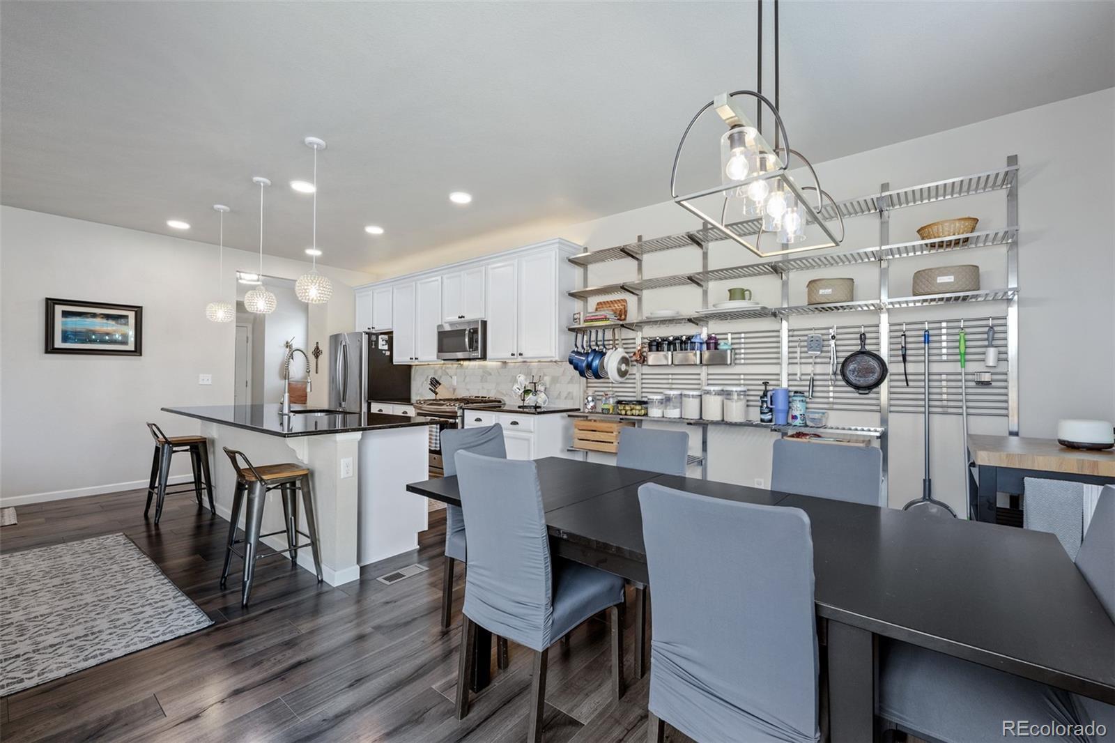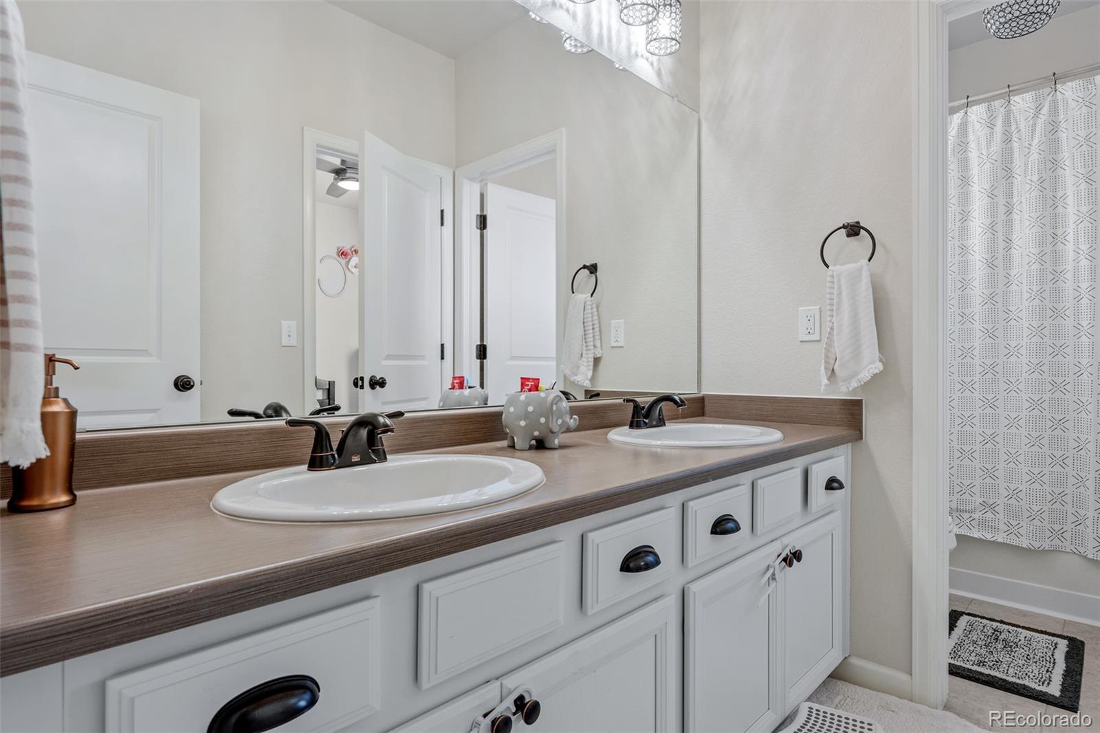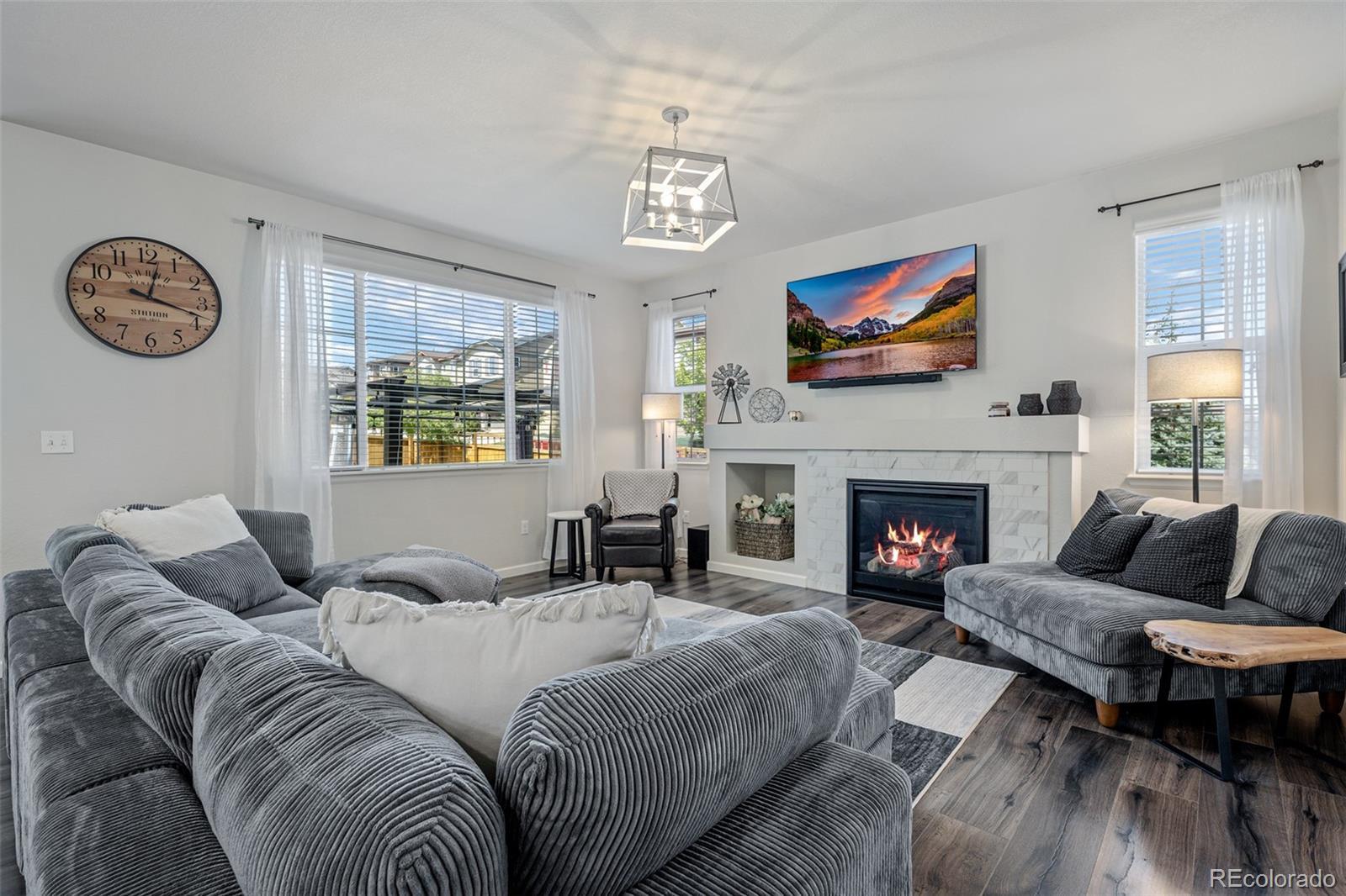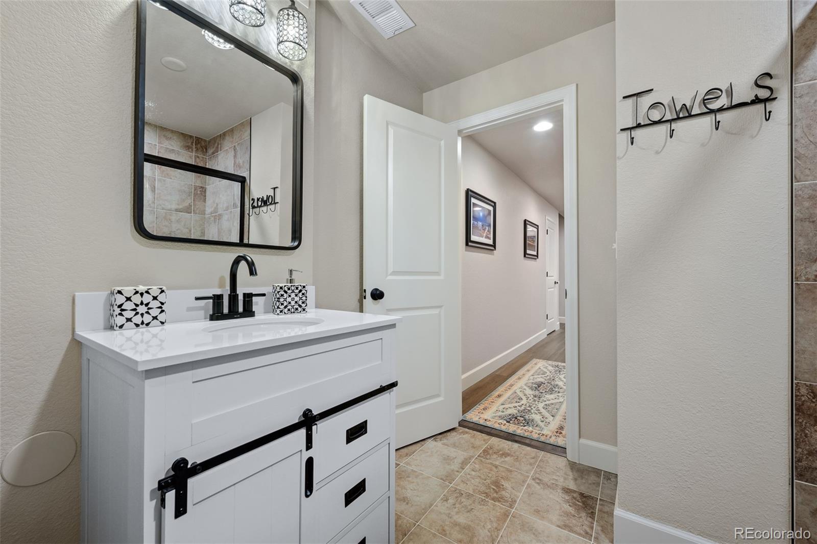 Stunning 5-Bedroom Home in The Meadows – Castle Rock. Welcome to this impeccably maintained and beautifully upgraded home nestled in the highly sought-after Meadows neighborhood of Castle Rock. Boasting 5 spacious bedrooms and 5 bathrooms, this residence offers the perfect blend of functionality and modern convenience. Step inside to discover an open-concept layout flooded with natural light, luxury vinyl plank flooring on the main level and stairs, and newer carpet in the bedrooms. The gourmet kitchen features granite countertops, stainless steel appliances, upgraded sink faucets, and smart lighting, seamlessly flowing into the large living with and dining areas—ideal for entertaining or everyday comfort. Unique switchback ceiling lighting allows for customizable ambiance—daylight or soft glow—all from the same fixture. The main floor office is ideal for remote work, complete with built-in bookshelves and stylish finishes. Upstairs, enjoy a large laundry room with stubs for a utility sink, and generously sized bedrooms with thoughtful upgrades throughout. The finished basement offers a large bedroom and bathroom along with a versatile entertainment room and kitchenette with refrigerator, microwave, dishwasher, and sink--perfect for guests, movie nights, or multi-generational living. Outside, the beautifully landscaped backyard invites relaxation with a wraparound stamped concrete patio, ideal for gatherings or quiet evenings. The 2-car garage features interlocking floor tiles for a clean, polished look. Additional highlights include: Radon mitigation system, Upgraded lighting fixtures throughout, close proximity to parks, restaurants, retail, medical facilities, and quick access to I-25 for easy commuting. This home truly has it all—style, space, and smart upgrades in a vibrant community. Don’t miss your chance to experience it in person!