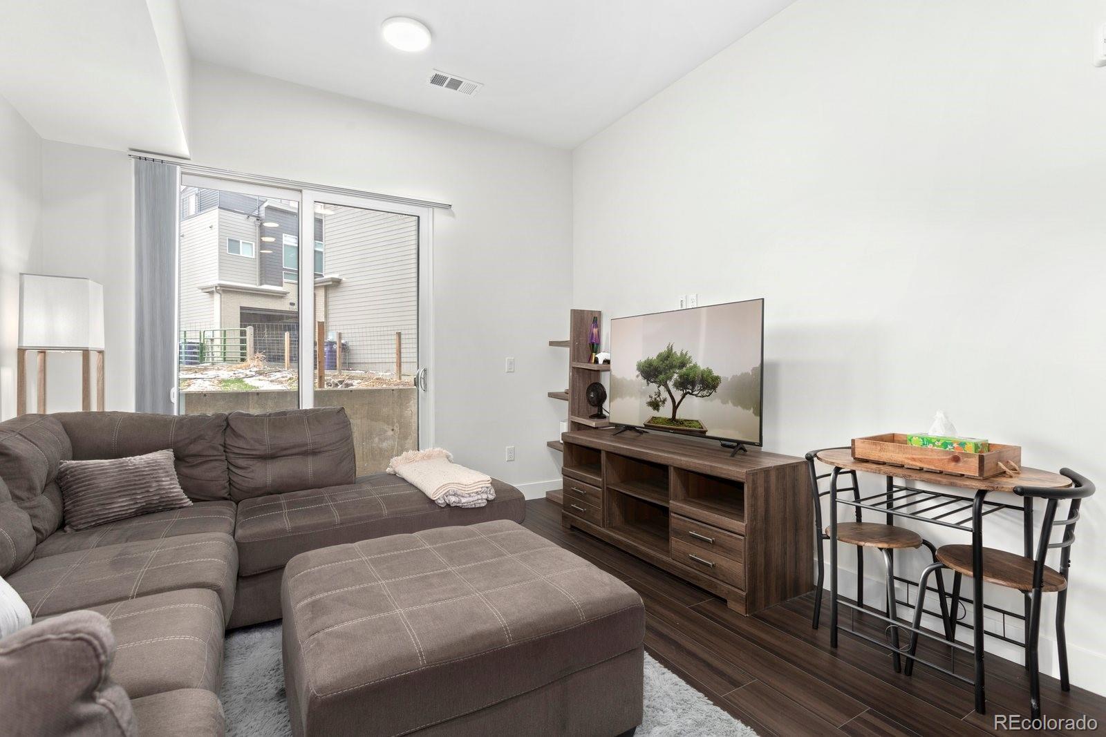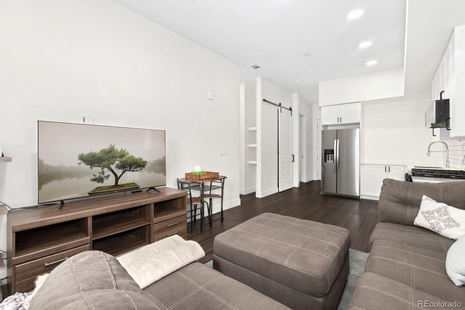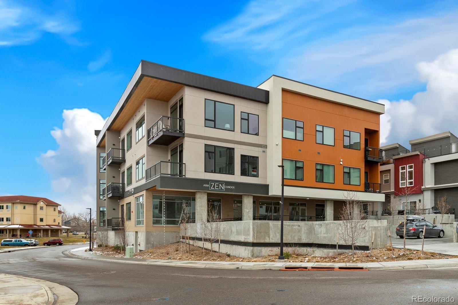 Sleek and stylish, this first-floor condo at Aria Zen Condos brings modern living to the heart of Berkeley. Built in 2022, it features an airy open layout with 10-foot ceilings, 8-foot doors, and expansive windows that fill the home with natural light. The kitchen shines with quartz countertops, stainless steel appliances, and a classic subway tile backsplash, while the primary bedroom includes a walk-in closet and remote-controlled blinds, a $3.5k upgrade. A second bedroom provides flexible use as a study or guest space, and the spacious bathroom is finished with chic tile floors and a deep soaking tub. Additional highlights include in-unit laundry with a full-size washer and dryer, a walk-in pantry behind a modern barn door, a reserved parking space in the secure underground garage, and a dedicated storage unit. The building elevates daily living with amenities such as a yoga studio, pet wash, bike storage, garden, and community room. Perfectly positioned for both city and outdoor access, this condo is just minutes from downtown Denver, Regis University, Starbucks, and neighborhood favorites on Tennyson, The Highlands, and Lowell. With convenient access to I-70, I-76, and I-25, Aria Zen Condos combine lifestyle, location, and modern design. Buyer/Buyer's agent is responsible for verifying all information, measurements, schools, and HOA rules/fees/regulations.