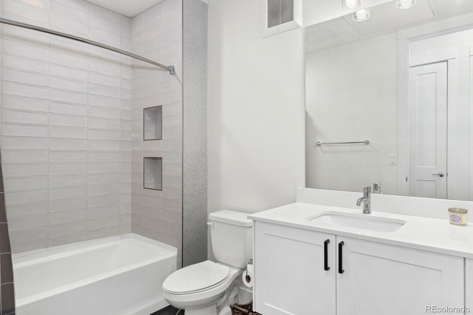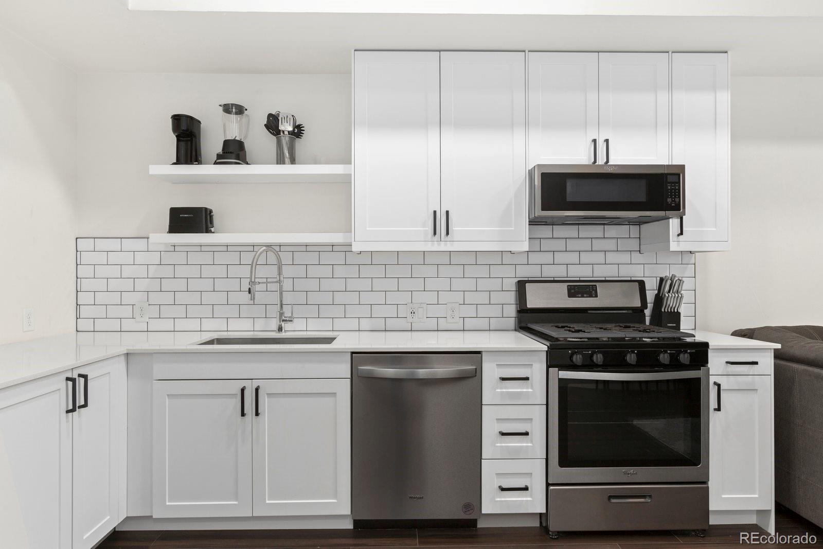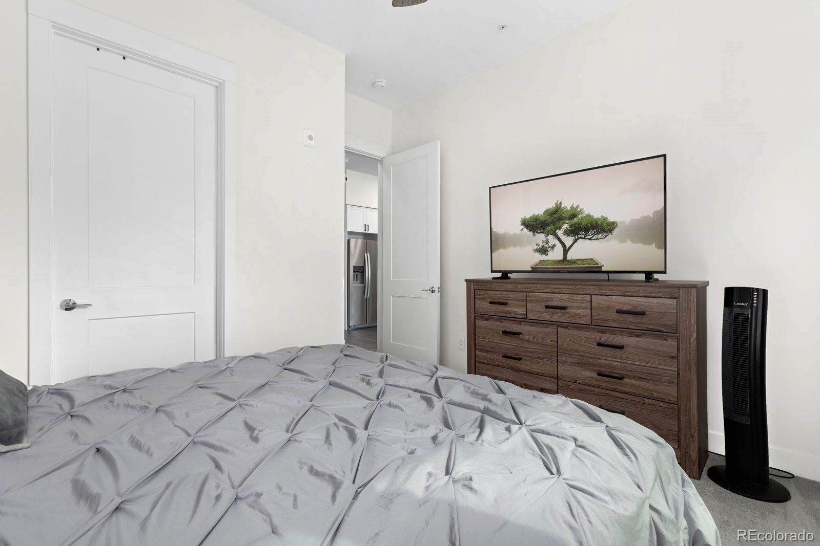 Sleek and stylish, this first-floor condo at Aria Zen Condos brings modern living to the heart of Berkeley. Built in 2022, it features an airy open layout with 10-foot ceilings, 8-foot doors, and expansive windows that fill the home with natural light. The kitchen shines with quartz countertops, stainless steel appliances, and a classic subway tile backsplash, while the primary bedroom includes a walk-in closet and remote-controlled blinds, a $3.5k upgrade. A second bedroom provides flexible use as a study or guest space, and the spacious bathroom is finished with chic tile floors and a deep soaking tub. Additional highlights include in-unit laundry with a full-size washer and dryer, a walk-in pantry behind a modern barn door, a reserved parking space in the secure underground garage, and a dedicated storage unit. The building elevates daily living with amenities such as a yoga studio, pet wash, bike storage, garden, and community room. Perfectly positioned for both city and outdoor access, this condo is just minutes from downtown Denver, Regis University, Starbucks, and neighborhood favorites on Tennyson, The Highlands, and Lowell. With convenient access to I-70, I-76, and I-25, Aria Zen Condos combine lifestyle, location, and modern design. Buyer/Buyer's agent is responsible for verifying all information, measurements, schools, and HOA rules/fees/regulations.