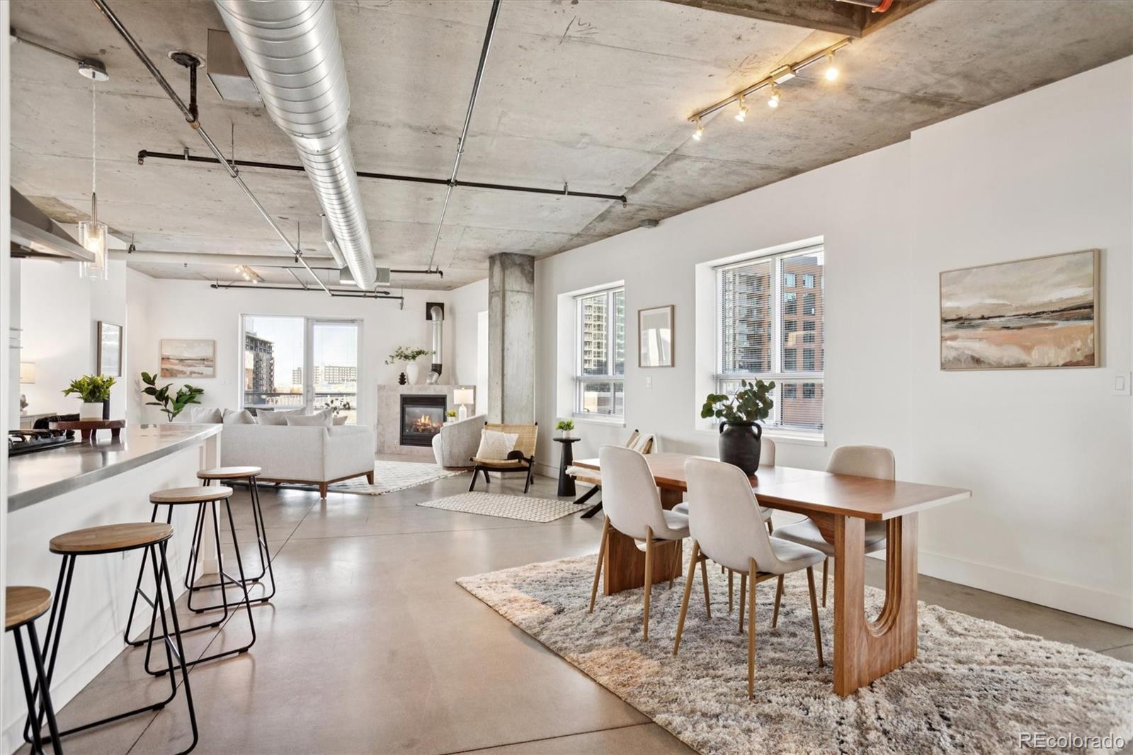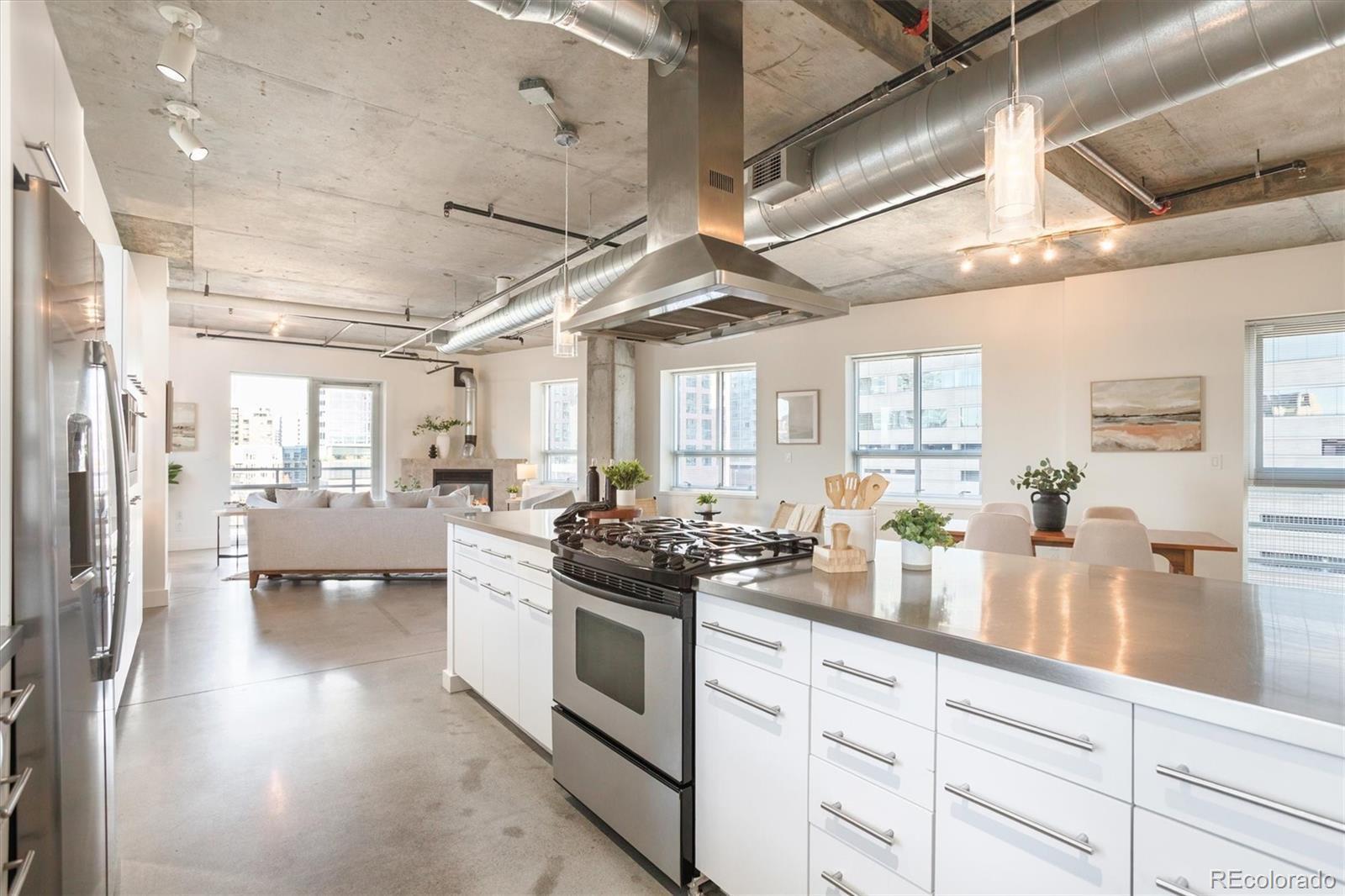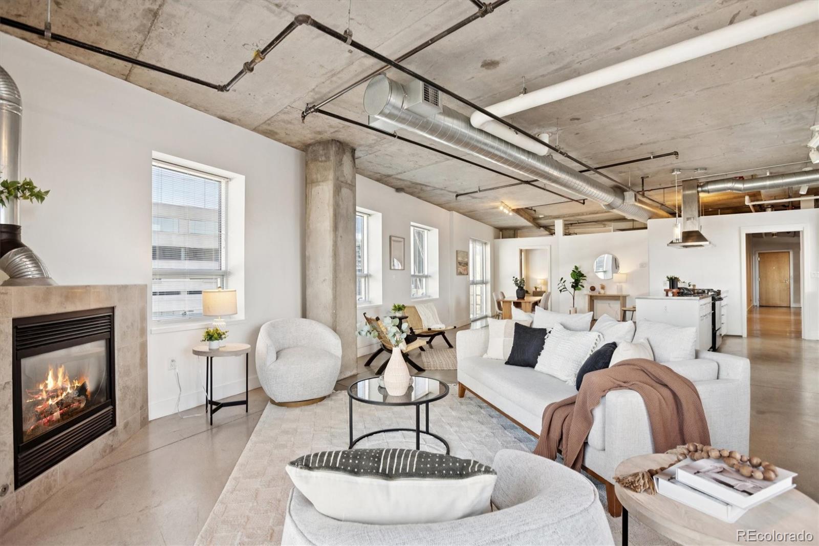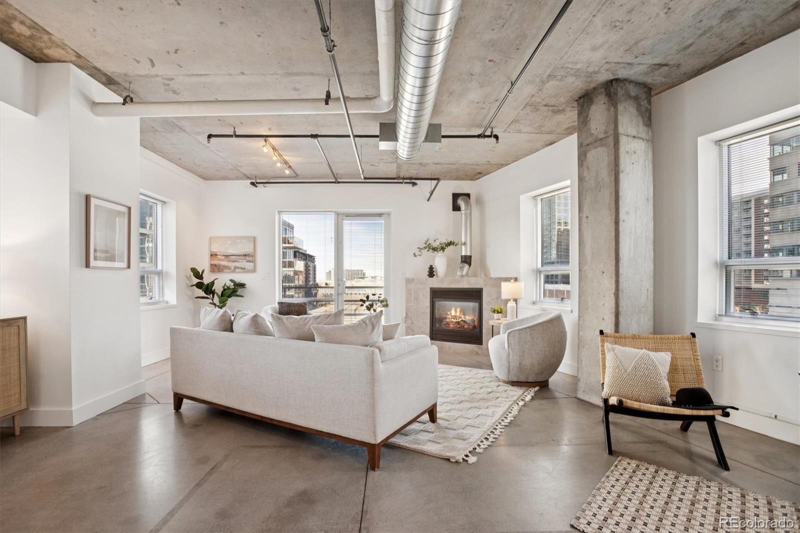 This uber cool, sophisticated, urban loft has a unique layout – different than the other residences in one of Riverfront's premier buildings, Park Place Lofts! It has a gas fireplace, which is super rare, and lots of extra glass so it is flooded with light! Terrific master suite with a HUGE closet and five-piece bath. The balcony is perfectly positioned to optimize views. The patio also has a gas stub for a gas grill. The large, open kitchen has stainless steel appliances and a GAS stove along with plentiful cabinets. The microwave has been recently replaced along with the washer and dryer in the in-unit laundry room. The polished concrete floors and exposed mechanical systems and concrete ceilings create a backdrop for any style of living - from traditional to modern. Located at the foot of the Millennium pedestrian bridge you will find yourself within close proximity to hundreds of restaurants, shops, bookstores, Union Station, the Ski Train, art galleries, gyms, Whole Foods, lightrail, parks and the footbridge to the Highlands! All the best that Riverfront Park, Union Station and LoDo has to offer!