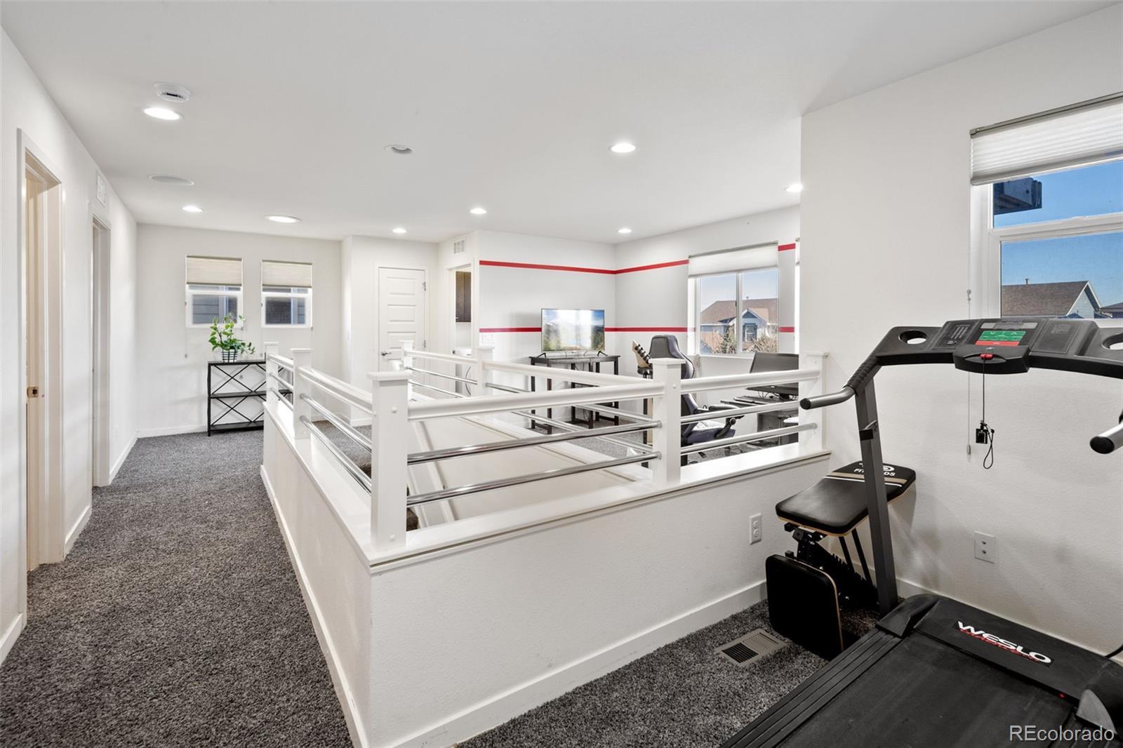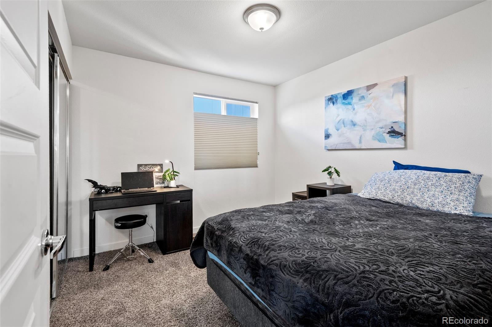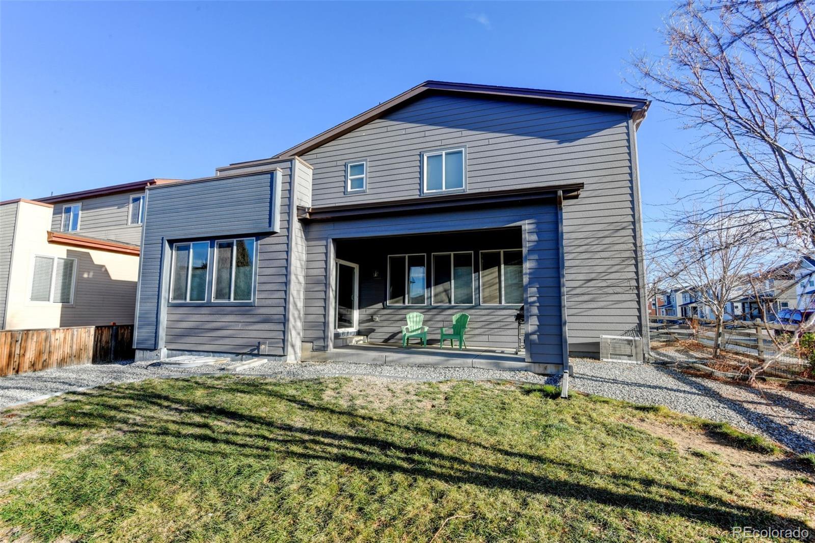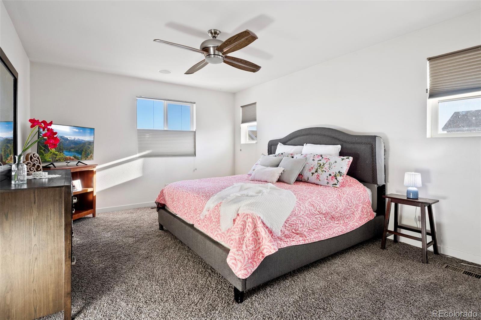 Fantastic home in Reunion, ideally situated on a large corner lot just one block from Reunion Park with a Lake, Rec Center, Coffee House and trail. Offering over 3,000 square feet of living space, the main level features a spacious study or bonus room with newly installed carpet, along with an open-concept living room, kitchen, and dining area. The kitchen provides ample counter space and cabinetry, while the dining area is highlighted by a patio door and abundant windows that fill the space with natural light. Upstairs, you’ll find newly installed carpet, an open loft perfect for a home office, exercise area, or entertainment space, as well as a laundry room with cabinets, a linen closet, two additional bedrooms, and a full bathroom. The oversized primary bedroom includes a private 3/4 bathroom with a double vanity and a large walk-in closet. The basement offers a cozy sitting area, a full bathroom, and two additional bedrooms—one non-conforming—along with a storage area near the bathroom and a utility closet. Step outside to the 17' x 8' covered back patio, ideal for enjoying shade during the summer months. The backyard is fully fenced and landscaped. With its prime location within walking distance to the park and amenities, this home is a must-see. Schedule your showing today!