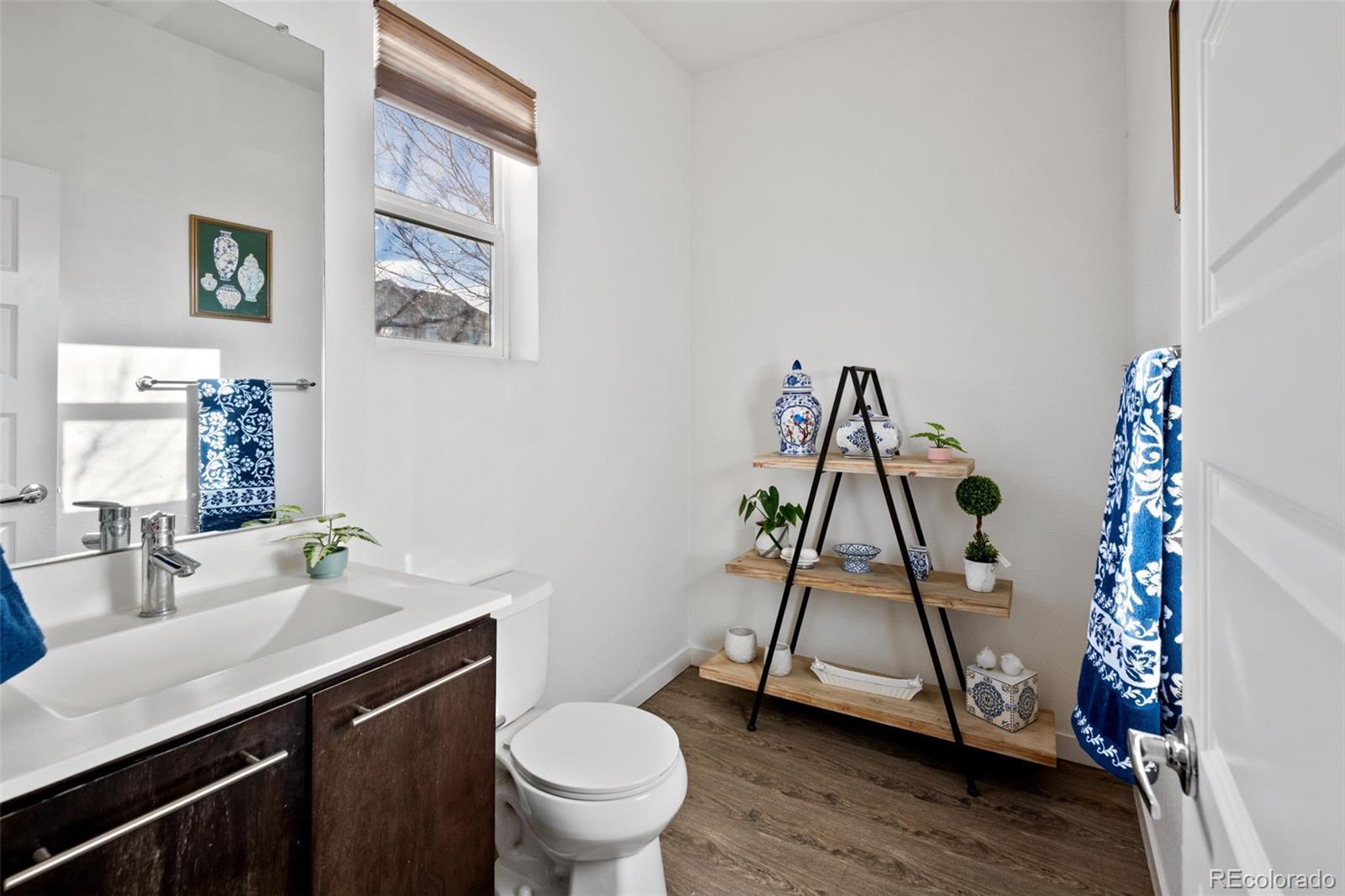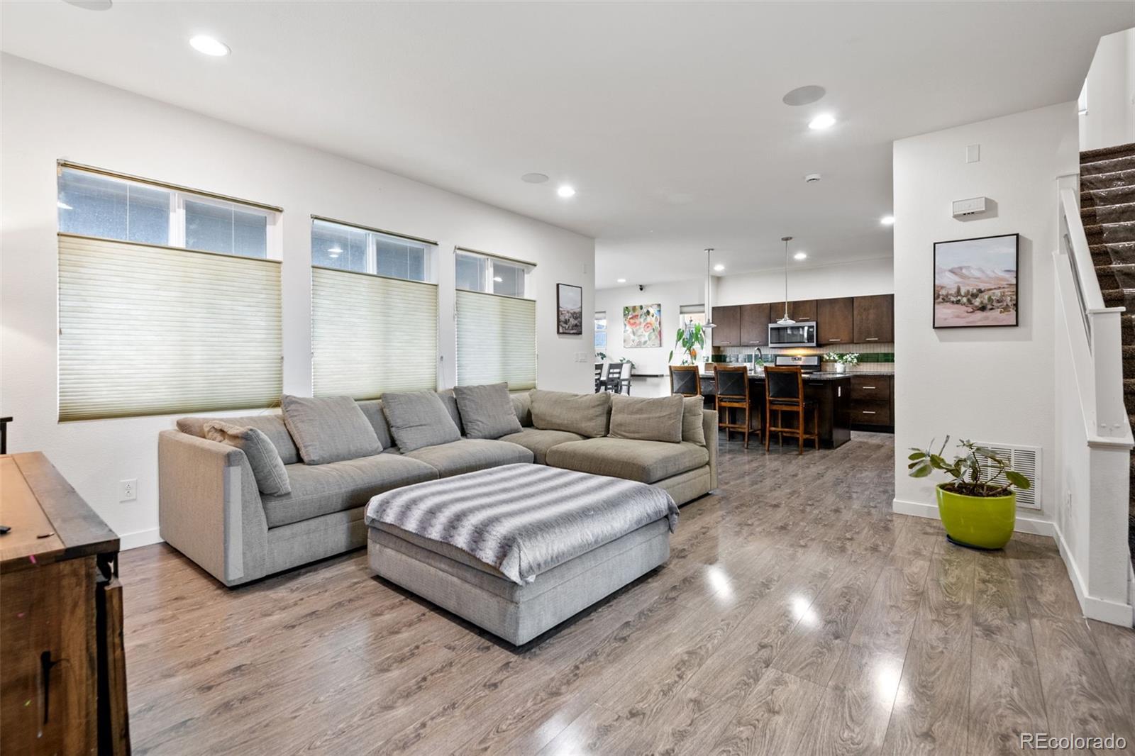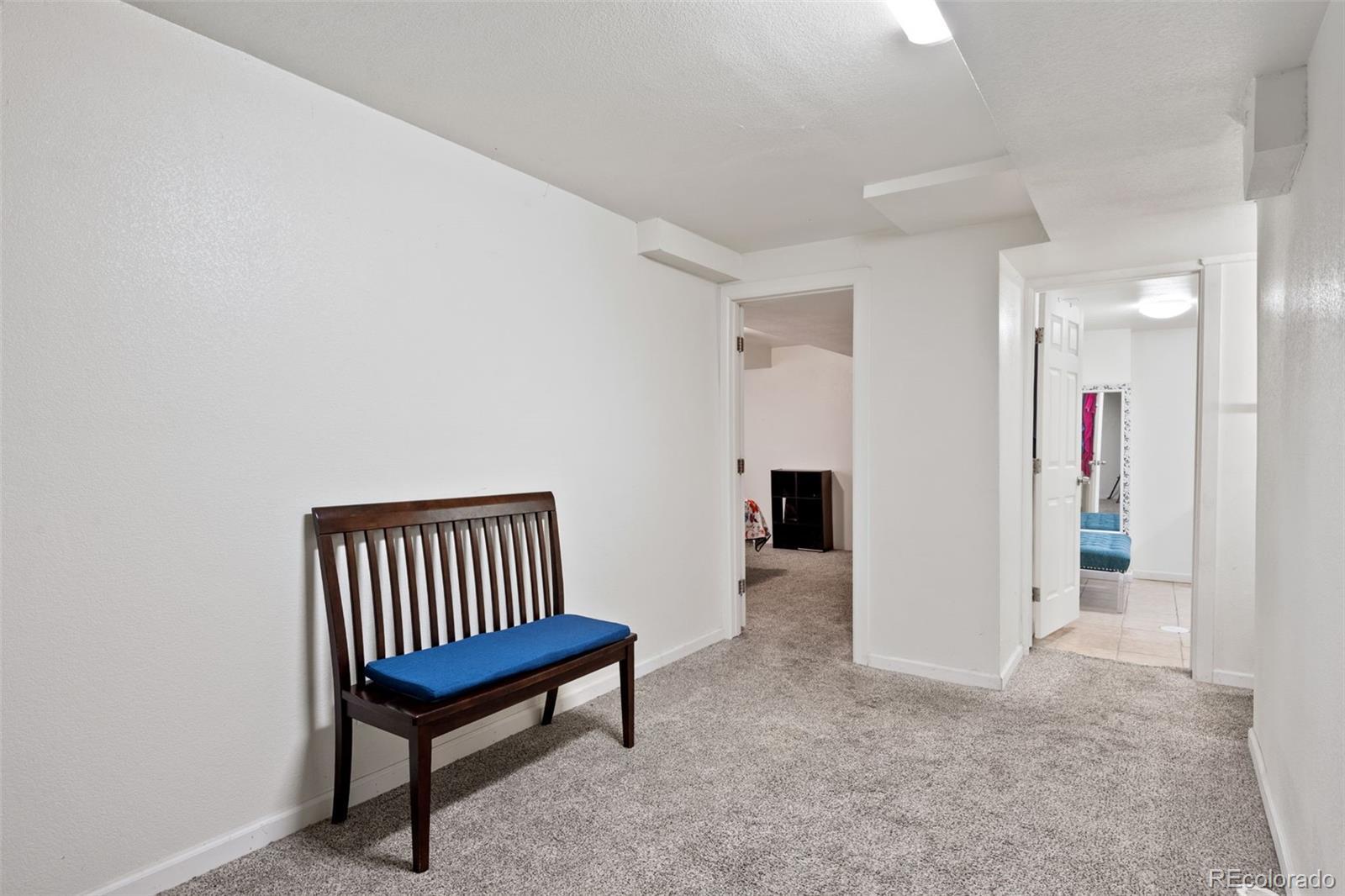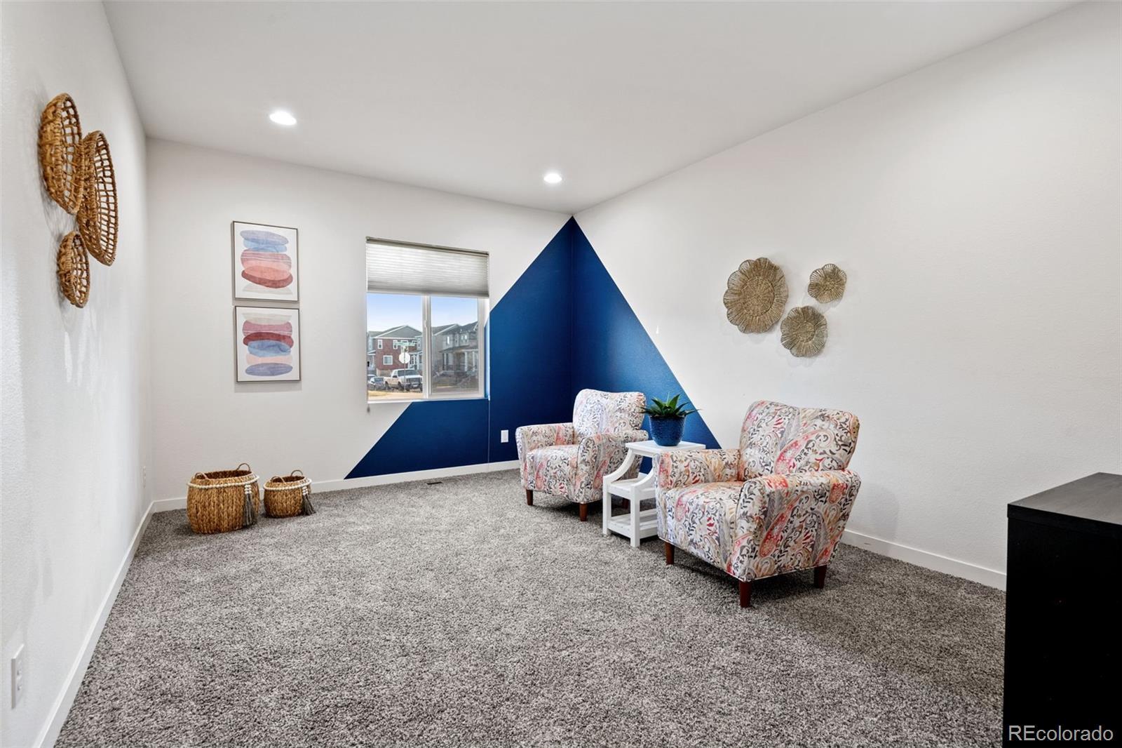 Fantastic home in Reunion, ideally situated on a large corner lot just one block from Reunion Park with a Lake, Rec Center, Coffee House and trail. Offering over 3,000 square feet of living space, the main level features a spacious study or bonus room with newly installed carpet, along with an open-concept living room, kitchen, and dining area. The kitchen provides ample counter space and cabinetry, while the dining area is highlighted by a patio door and abundant windows that fill the space with natural light. Upstairs, you’ll find newly installed carpet, an open loft perfect for a home office, exercise area, or entertainment space, as well as a laundry room with cabinets, a linen closet, two additional bedrooms, and a full bathroom. The oversized primary bedroom includes a private 3/4 bathroom with a double vanity and a large walk-in closet. The basement offers a cozy sitting area, a full bathroom, and two additional bedrooms—one non-conforming—along with a storage area near the bathroom and a utility closet. Step outside to the 17' x 8' covered back patio, ideal for enjoying shade during the summer months. The backyard is fully fenced and landscaped. With its prime location within walking distance to the park and amenities, this home is a must-see. Schedule your showing today!