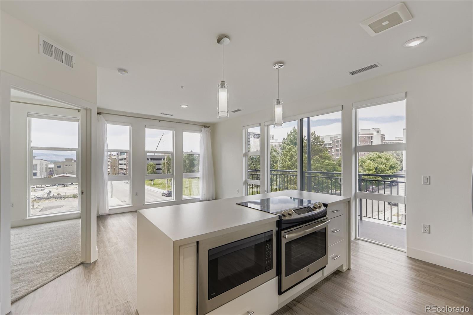 Welcome to Corona Street Lofts! This spacious corner unit 2-bedroom, 2-bath home is nothing short of immaculate with modern construction, open floor plan and breathtaking mountain views! Light, bright with floor-to-ceiling windows. This corner unit is one of few that has tons of natural light! The kitchen includes a top-of-the-line stainless appliance package, custom cabinets with soft close drawers, a huge island with bar seating and modern lighting. Plenty to love with a private primary suite that includes 9' ceilings, floor to ceiling windows that allow maximum light exposure and more mountain views. Also enjoy the stunning views of the Rocky Mountains on your spacious balcony. Front load stacking washer/dryer inside the unit are also included. Bring all your toys this unit includes an indoor parking space, storage locker and bike storage. The building features a stylish lobby and interior hallways with modern and elegant decorations, artwork and finishes that are sure to impress. Nearby is Craig and Swedish Hospitals to the west and surrounding restaurants, shops and entertainment that are conveniently located, an urban delight. Don't miss this opportunity for low maintenance urban living, call the listing broker today for your private showing.