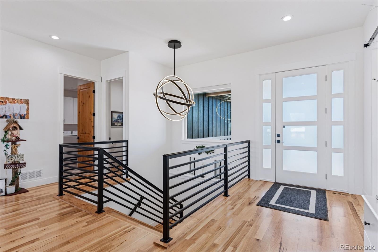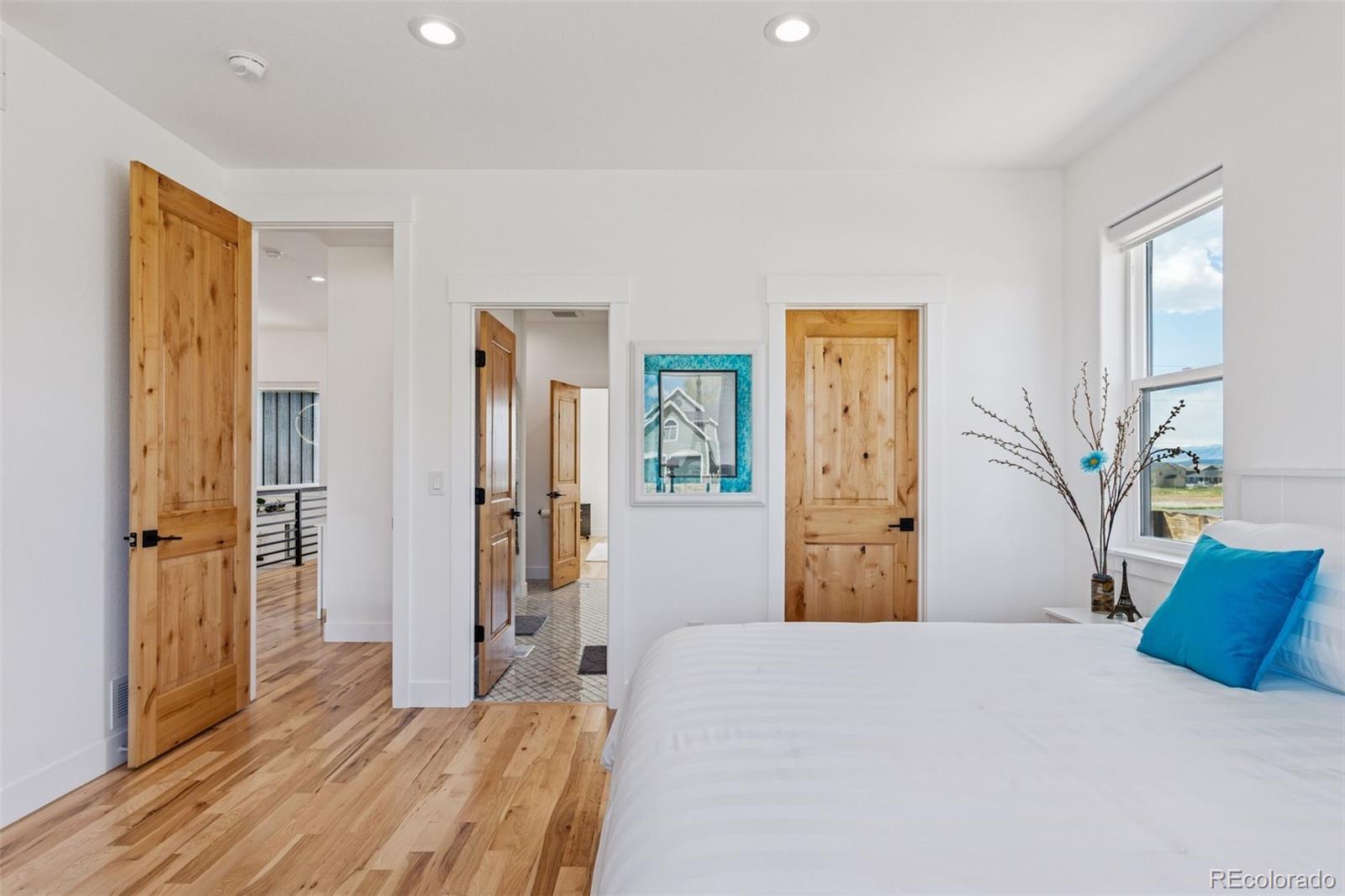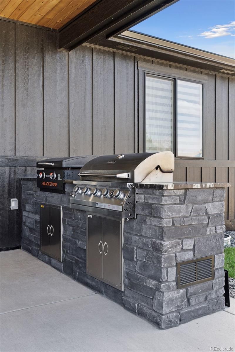 One of a kind Colorado custom home with no HOA or metro tax district plus a view! Tucked in a tranquil setting between the charming town of Berthoud and the majestic front range of the Rocky Mountains, this custom residence offers the best of both worlds—small-town charm and sweeping natural beauty. Encompassing over 5,000 square feet of meticulously curated space, this architectural masterpiece rests on a generous lot, offering freedom and privacy in an idyllic setting. From golden-hour sunsets shimmering over nearby Lake Carter to serene mornings looking upon the gorgeous mountains, this home invites nature in at every turn. Step inside to experience a seamless blend of sophistication and warmth. Soaring ceilings, rich hickory hardwood floors, and a striking white stone fireplace set the tone for elegant yet effortless living. Designed for connection and comfort, the open-concept floor plan features five spacious bedrooms and four well-appointed bathrooms, offering space for both lavish entertaining and quiet retreat. At the heart of the home, the chef’s kitchen is a showpiece of form and function—outfitted with premium slate appliances, custom cabinetry, quartz countertops, and an oversized island perfect for gathering. The primary suite is your personal sanctuary, where spa-inspired finishes, a statement chandelier, and serene design details evoke the ambiance of a boutique resort. Every corner of this home reflects exceptional craftsmanship: beautifully tiled bathrooms, a custom wet bar for effortless hosting, and a whole-home Sonos sound system that elevates everyday living. Step outside and discover seamless indoor-outdoor living. A cozy front porch welcomes you, while the covered back patio opens to a breathtaking outdoor kitchen and expansive concrete entertaining terrace—ideal for al fresco dining, summer, and evenings under the stars. This is more than a home it’s a statement. A place where luxury, nature, and everyday ease meet in harmony