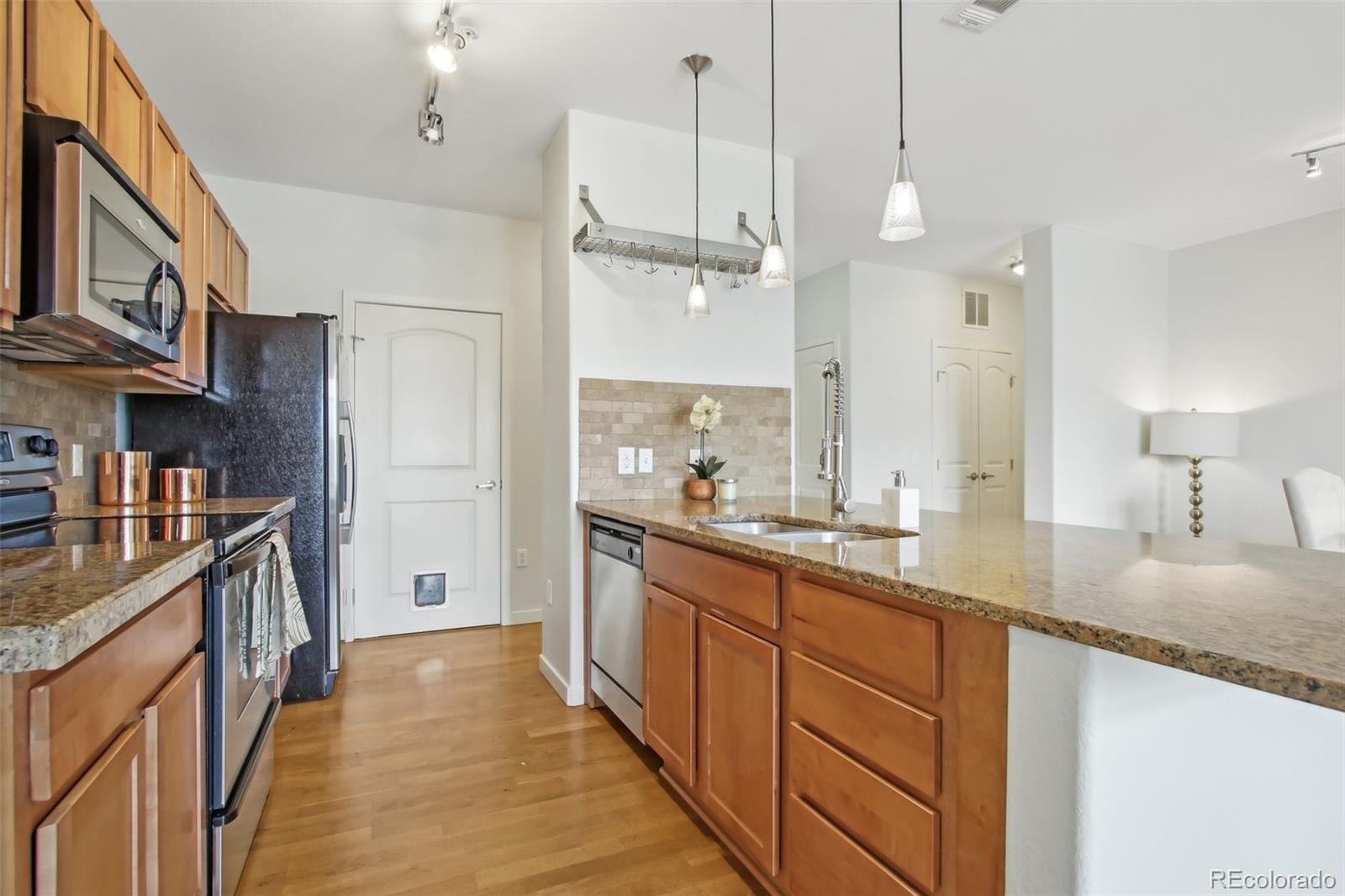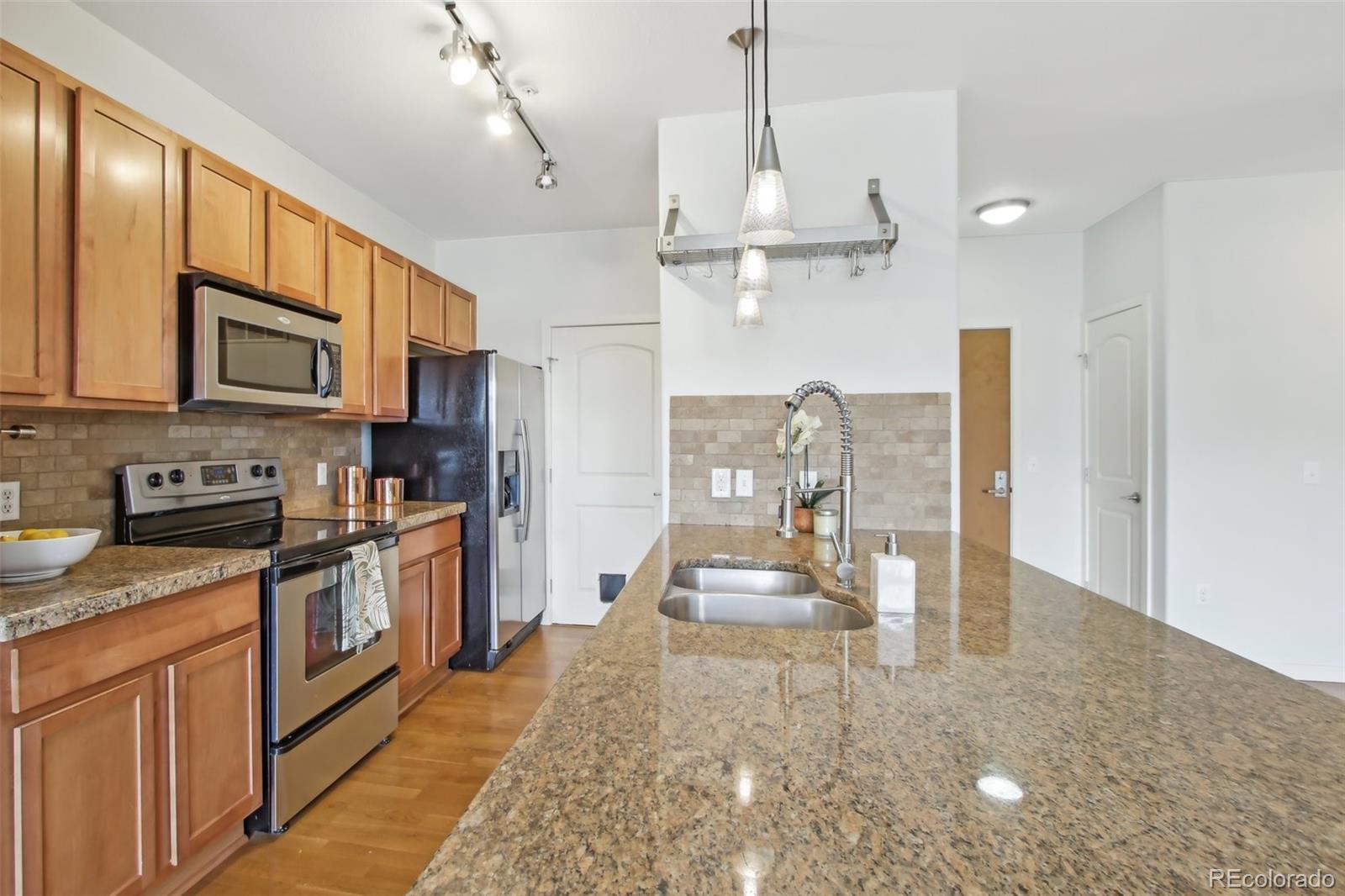 Sunny west facing condo with rare mountain views...Imagine starting your day sipping coffee on your own private balcony or ending the day with friends in your own home! This unit features two spacious en-suite bedrooms on opposite sides–ideal for roommates, guests or home office. Each en-suite bathroom features its own soaking tub, modern fixtures and plenty of storage. The gourmet kitchen has all you could ever need with granite countertops, stainless steel appliances, large island w/ ample seating, pot holder rack & dining area. You will love the fresh paint, wood flooring & new carpet, making it easy to move right in. Great additional shelving, modern light fixtures & 9' ceilings make this one shine. Furnace, new water heater (Dec 22), washer & dryer are conveniently located right in the unit. Take advantage of all the community amenities such as the pool, hot tubs, clubhouse w/ kitchen & bar, game room, fitness center & outdoor fire pit for entertaining & community events. Enjoy the Colorado lifestyle with immediate access to the Carolyn Holmberg Nature Preserve Trail right out your back door. Grab a quick bite to eat at Smokin Oak Pizza or a quick pick me up at Starbucks, all within walking distance. If you want to explore a little further, Boulder and Denver are easily accessible. Plus multiple dining and shopping venues are within minutes. Secure entry and garage parking with elevator access for added convenience. Lock and leave whenever you want and catch a bus right to DIA for your next adventure. So much to experience, right within your fingertips. Make this one yours today!