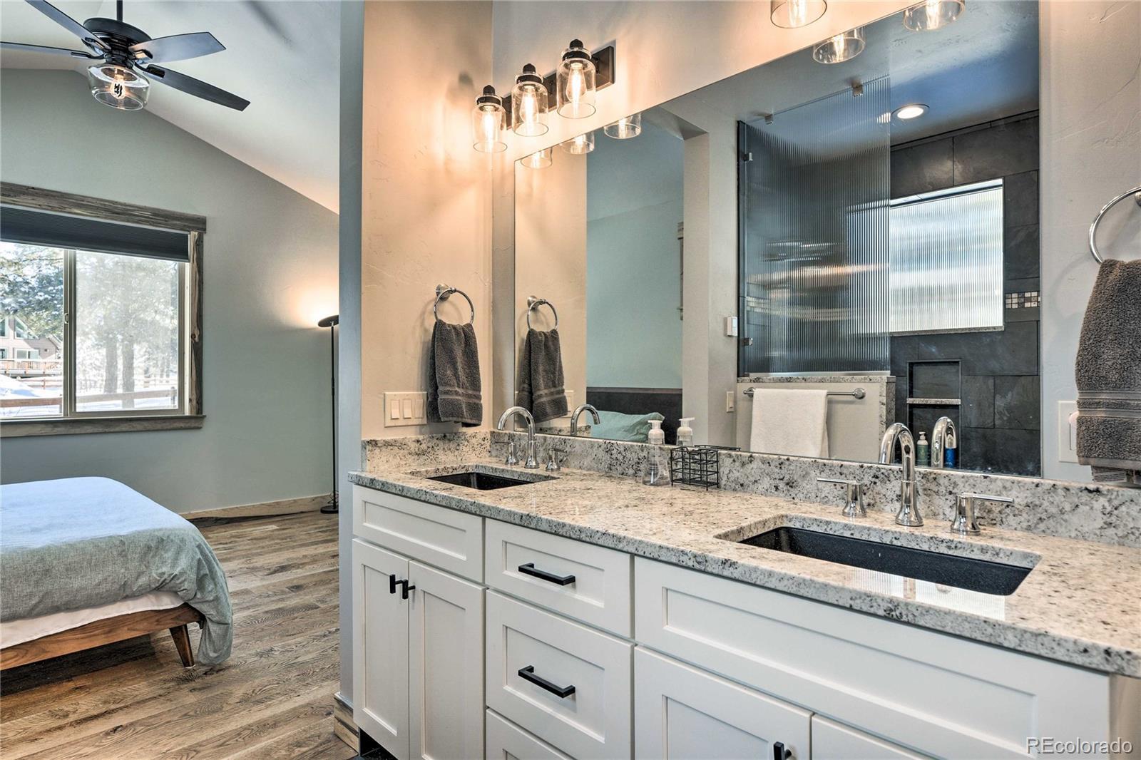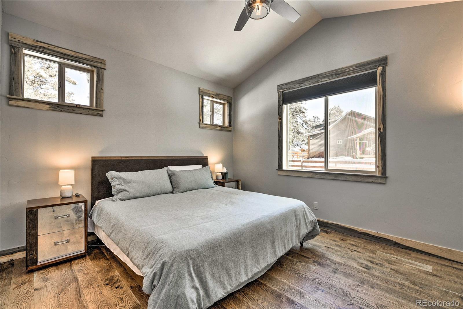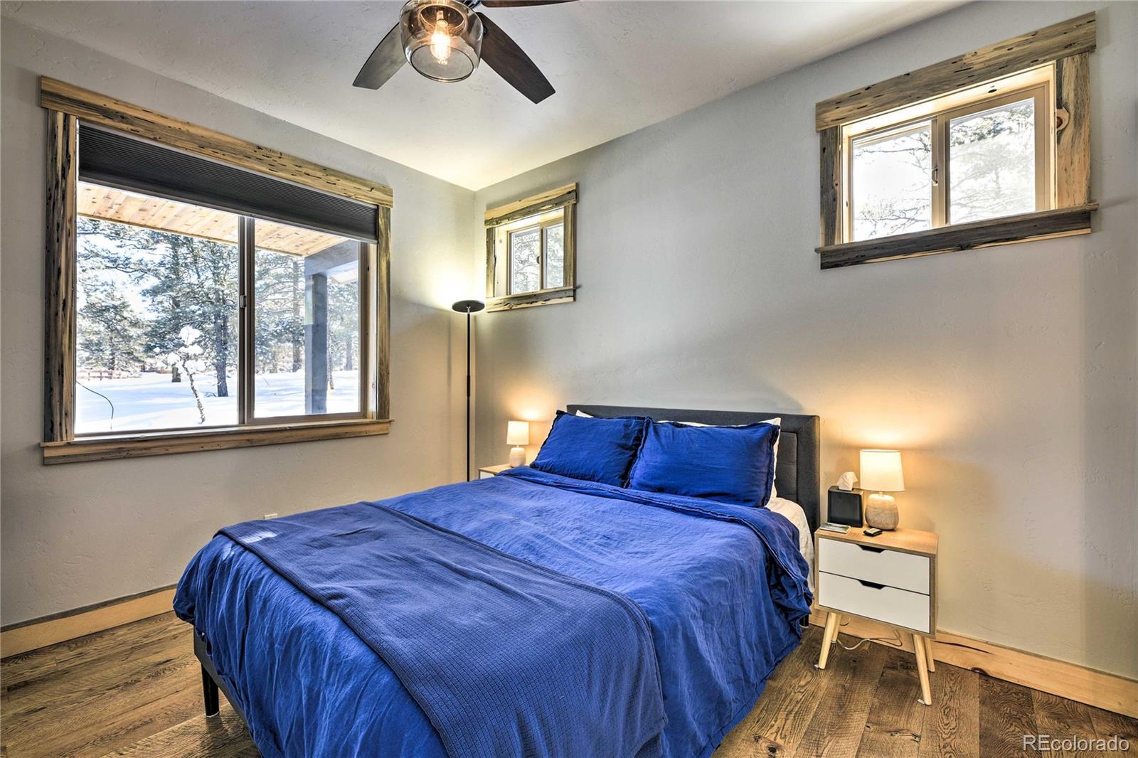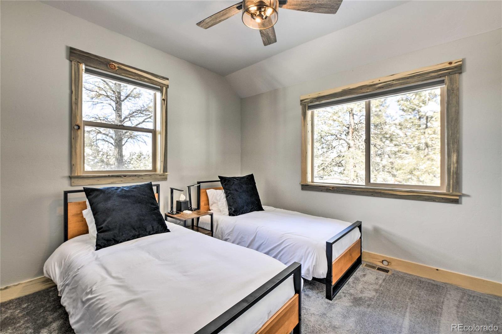 Gorgeously outfitted, 4-bedroom 3.5 bath mountain home in Pagosa Springs, CO. Meticulously completed in 2021 this 2400 square foot home is a perfect option for a part or full time singles, couples or a family. Dual master suites with double vanities on the main floor. Open plan living room/kitchen with gas fireplace and dining nook and 1/2 bath. Granite countertops and raised bar seating, GE built-in appliances. Main master has a large closet, separate shower and freestanding tub. Huge windows throughout first floor and separate den area. Laundry/mudroom with large built in shelving pantry and heated 2 car garage. Covered patio with hot tub hookup looks out on a quiet, greenspace full of pines and a firepit off the patio. Upstairs: bonus living area, two spacious bedrooms and a full bath. Other touches: beetle wood window/door trim, baseboards, exposed wood beams, wood floors, heated bathroom floors. Close to grocery, restaurants, hiking and biking trails.
