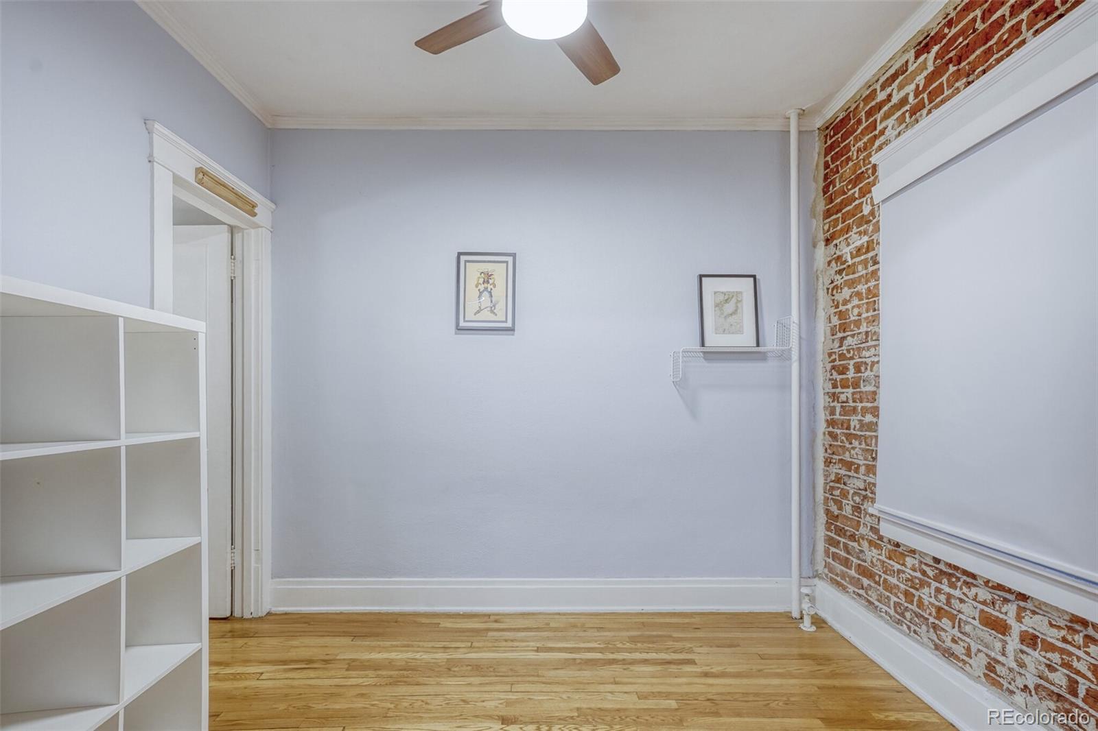 Don’t miss this charming, light-filled Capitol Hill condo that blends historic character with fresh updates and modern convenience. Exposed brick walls in both the living room and bedroom add warmth and timeless appeal, while vaulted ceilings enhance the bright, open feel throughout the space. Fresh paint and updated light fixtures create a clean, inviting atmosphere and offer the perfect canvas to make your own. Step outside and enjoy easy access to all the restaurants, parks, music venues, and nightlife Capitol Hill has to offer. The bathroom showcases classic 1920s charm with vintage tile, a soaking tub/shower, wainscoting, and built-in storage. Generous closets in both the living area and bedroom, along with an additional basement storage unit, provide exceptional storage rarely found in condos of this era. With classic architectural details and an unbeatable walkable location, this is a rare opportunity to own a piece of Denver in one of its most desirable neighborhoods.