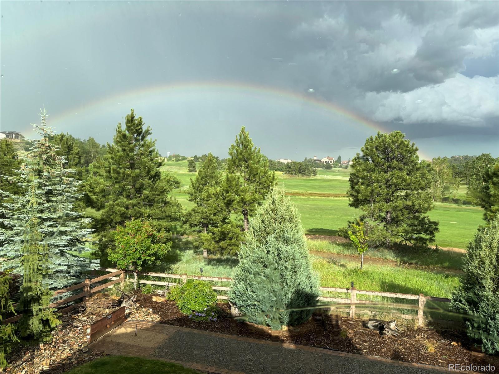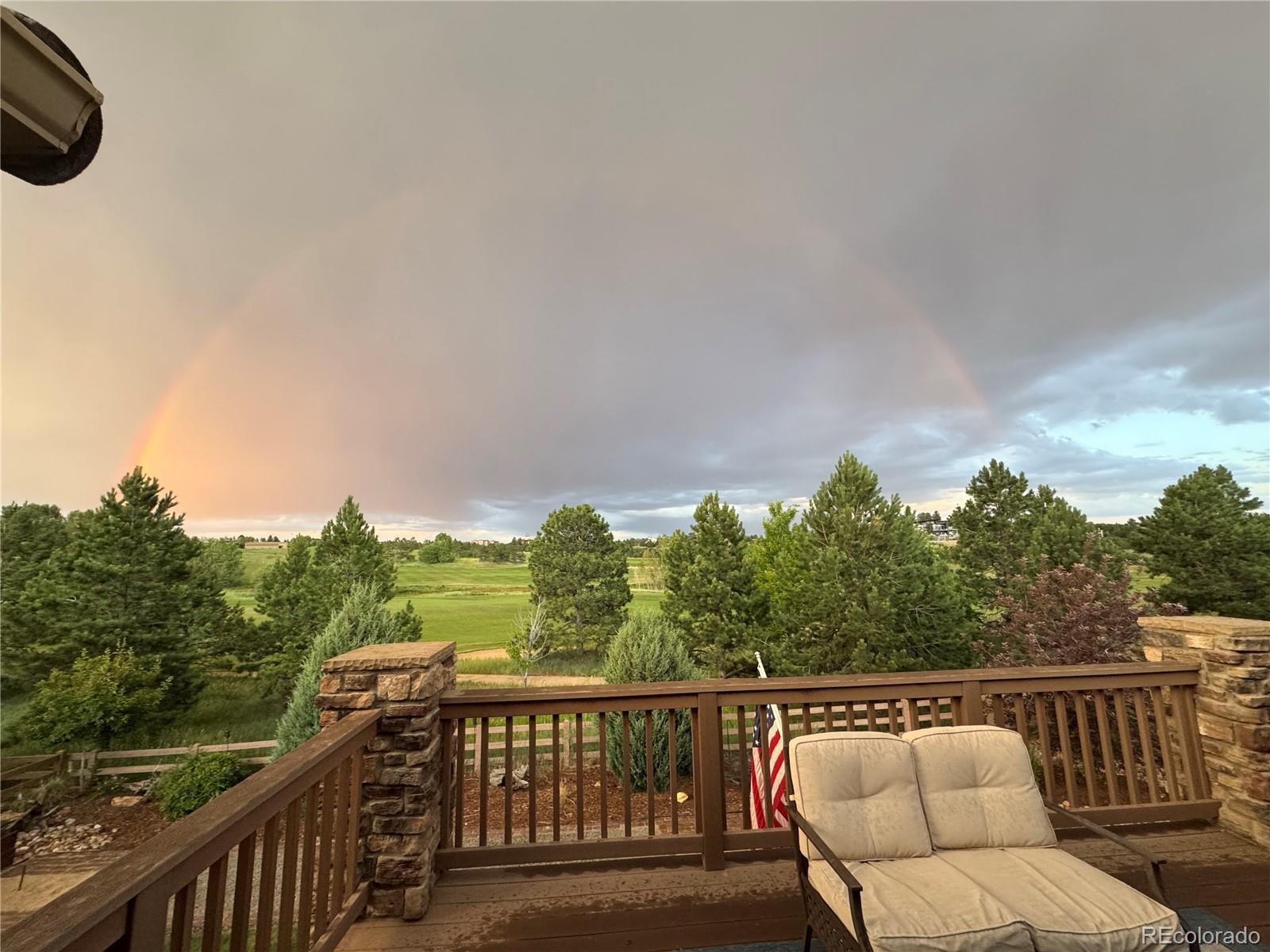 This stunning home offers four bedrooms and three bathrooms with ranch style main level living. The open floor plan leads to a spacious living area with a interior/exterior fireplace and window views to the back yard and the golf course. The kitchen is set perfectly for entertaining small or big crowds with a large island and matching stainless steel appliances and access from the dining area to the large deck with stairs to oversee the backyard and 12th fairway of the golf course. The primary bedroom with golf course views and 5 piece suite with jacuzzi tub are comfortably on the main level with a second bedrooms or office and full bath. Walking down the wide stairs leading to the basement with 9ft ceilings and large family room with wet bar and wine cooler offer a spacious area to entertain, with a walk out to the backyard and several outdoor living areas to relax or entertain. This home is west facing which is great for snow melt and sunsets in the backyard with the deer and the firework display from the club house make this a great home to entertain family and friends. This home was painted in June of 2025. The garage was customized with the builder by the owner to include an additional 2ft of length. The neighborhood offers top tier community amenities, and access to award winning D-20 schools, fine dining, shopping and with the The Club at Flying Horse in view from your backyard this home offers the perfect blend of golf oasis and location. Don’t miss this rare and exceptional opportunity, schedule your showing today!
