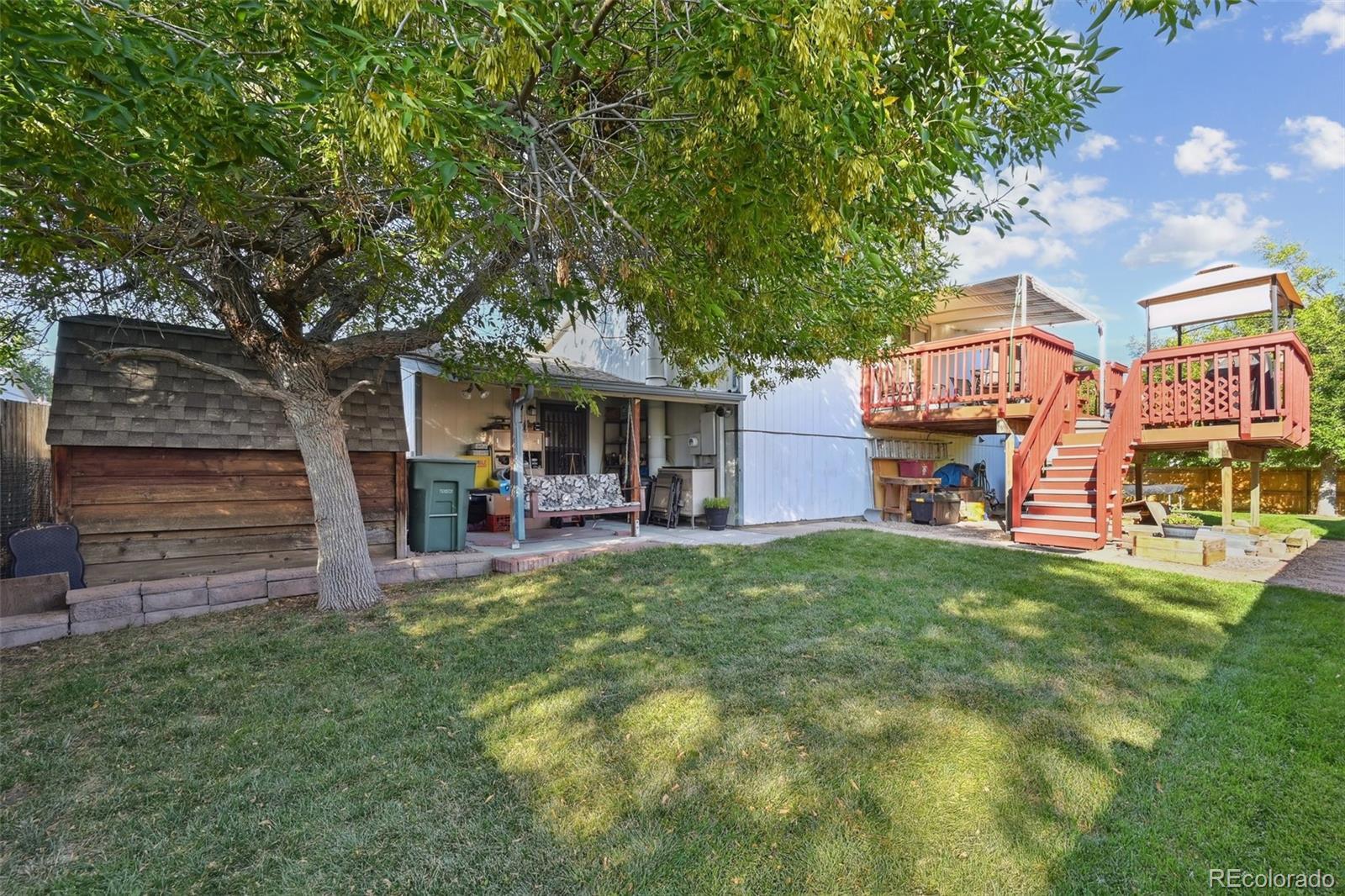 Welcome to this fantastic 3-bedroom, 2-bathroom home in the McCoy Hills neighborhood of Thornton, perfectly situated on a corner lot! Upstairs, you’ll find brand-new carpet and new luxury laminate flooring in the kitchen, along with a dining space that flows seamlessly to the back deck through sliding glass doors. The kitchen features newer appliances including the stove, microwave, and dishwasher, and opens into a bright and welcoming living room with a wood-burning fireplace. The spacious primary bedroom includes an en-suite full bathroom, while a second bedroom and an additional full bath complete the upper level. The recently remodeled lower lever, completed by Complete Basement Systems, provides incredible extra living space. It features a large family room with a cozy wood-burning stove, a spacious guest bedroom, and a versatile landing area that can be used as a bar space, book nook, or whatever fits your lifestyle. Outside, the property shines with an attached 2-car garage, additional driveway parking, AND designated RV parking! The backyard is a retreat with a mature shade tree, covered patio, spacious deck, and a storage shed for toys and tools. Sprinkler systems in both the front and back yards keep the landscape lush and green ~ You'll love entertaining or relaxing in this outdoor space! Located just five minutes from the Thornton Crossroads & 104th Light Rail Station, this home is perfect for commuters. Thornton is known for its extensive parks and recreation, seasonal festivals, and premium outlet shopping. You'll also enjoy easy access to the city being just 10 miles north of Denver. This home offers comfort, updates, and convenience in a prime location—don’t miss the chance to make it yours!