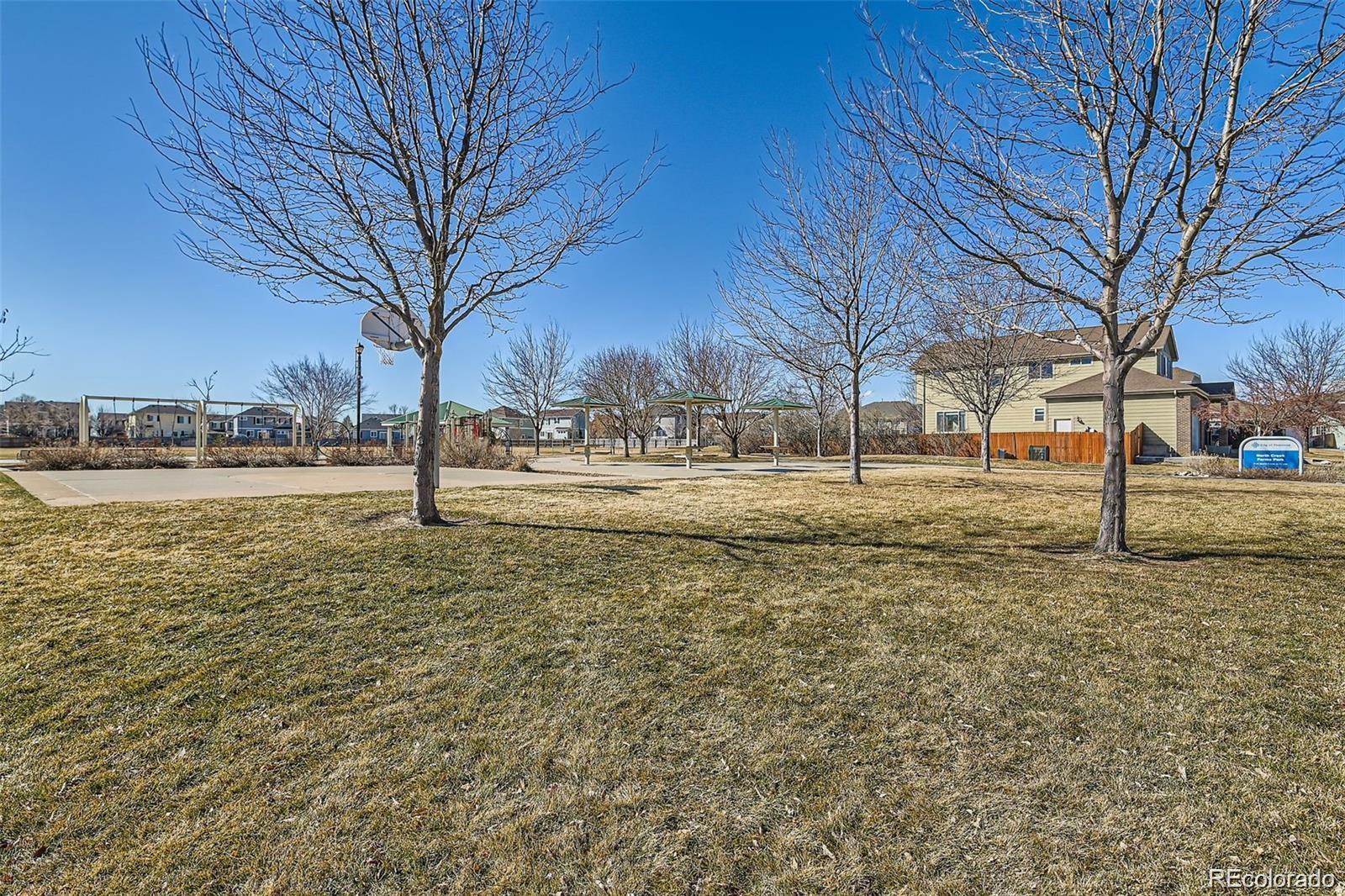 Welcome Home! North Creek Farms Beautiful 2 Story! Corner Lot!! South Facing! Inviting Foyer with Bench as you enter this spacious home offers an Open Main Floor -Formal Living-Formal Dining-Office-Kitchen-Dining-Family Room w/ Gas Fireplace & Hardwood Floors Throughout! Inviting you upstairs to the 14x14 Loft area-Incredible Master Suite w/ 3 Sided Gas Fireplace-Bonus Room/Sitting Area-5 PC Bathroom w/ Oval Soaking Tub/Granite, 2 Bedrooms & a 2nd Remodeled 3/4 Bathroom/Granite & Laundry Room! All new Toilets throughout! New Appliances! The basement is unfinished awaiting your custom design! This large backyard has a great 2 tier patio, Mature trees & Sprinkler system! An oversized 2 car garage w/ Opener! Location is key here...Near Top Golf, Shopping, Costco, Restaurants & the Newest Chicken & Pickle! Quick access to I-25, C470/E470 Tollway, 20 Minutes to the Airport! North Creek Farms has 3 Parks, Basketball Courts, Pavilions and walking distance to many Restaurants/Costco/Top Golf! Priced to Sell!! Interest Rate Buy Down available! MUST SEE!!!