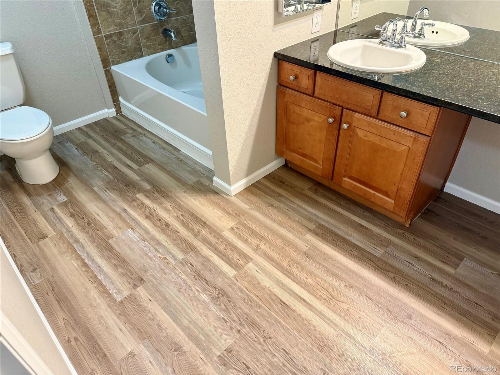 Welcome Home to this lovely remodeled and updated 2 bedroom/2 bath ground floor condo located in this Parker community that offers a pool/hot tub, Clubhouse, Playground, Fitness Center and trails with a convenient location close to Parker Rd. and E470. Inside you'll find an open floorplan, which features an inviting kitchen that boasts granite countertops and stainless-steel appliances, 2 large bedrooms, each with huge walk-in closets, 2 large bathrooms, both with granite countertops, 2 covered patios, a spacious great room with a gas fireplace and a laundry room with washer and dryer included. The condo has been beautifully updated with luxury vinyl plank throughout and fresh paint. The condo has ground floor access, no stairs and is an end-unit. Perfectly located, this home provides quick and easy access to the vibrant town of Parker--offering a wide array of shopping, dining and parks, plus easy access to I-25, Denver International Airport and the beautiful Colorado mountains.