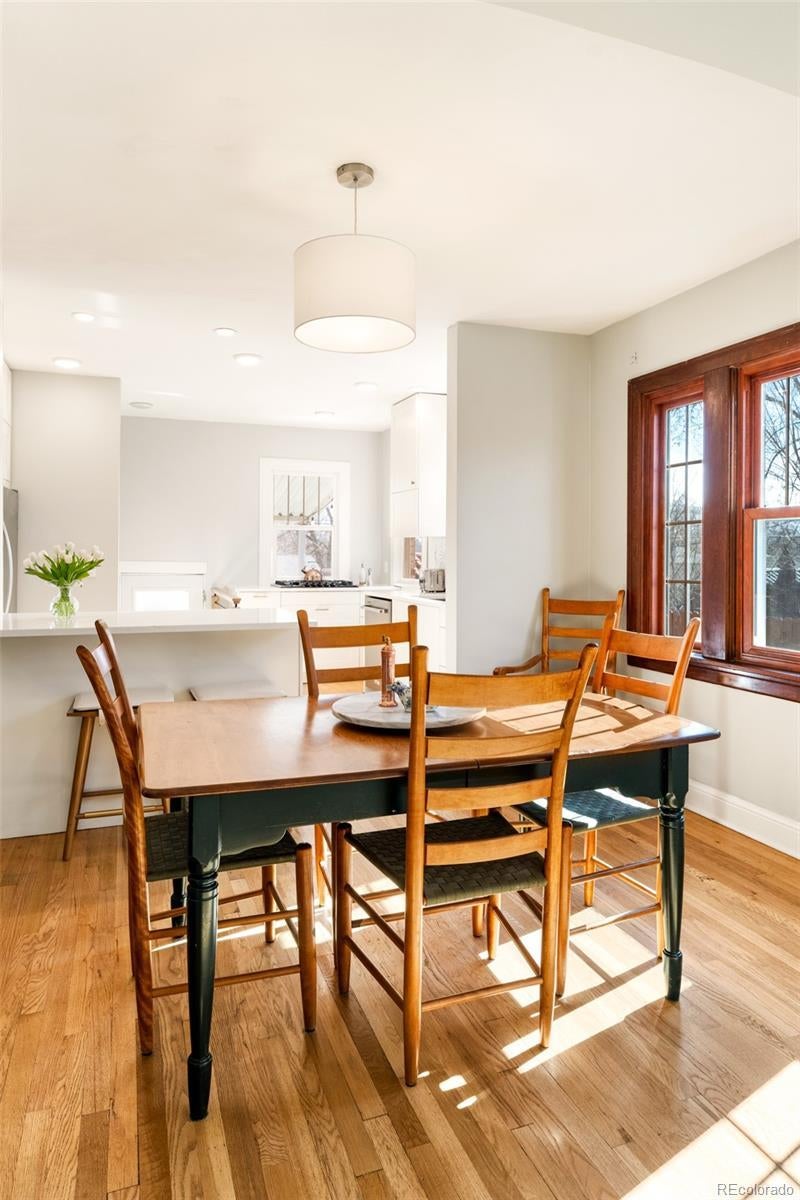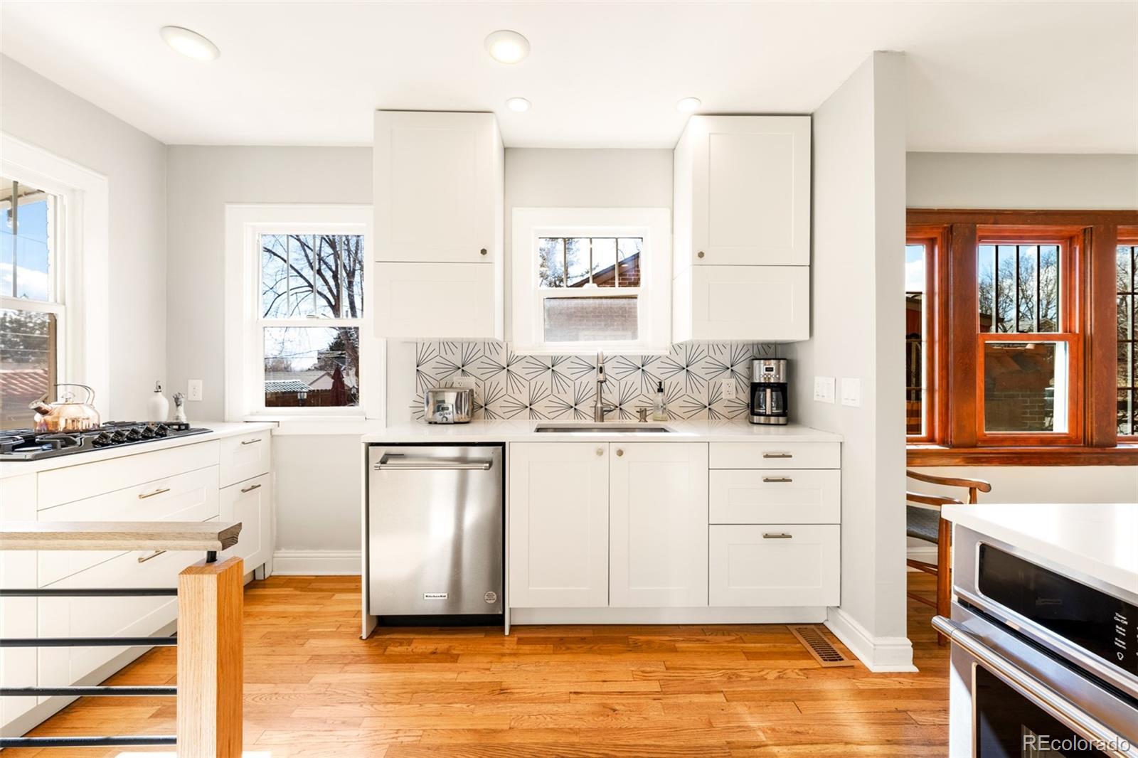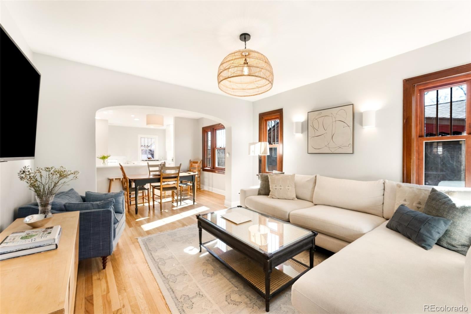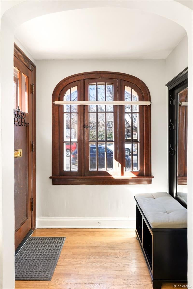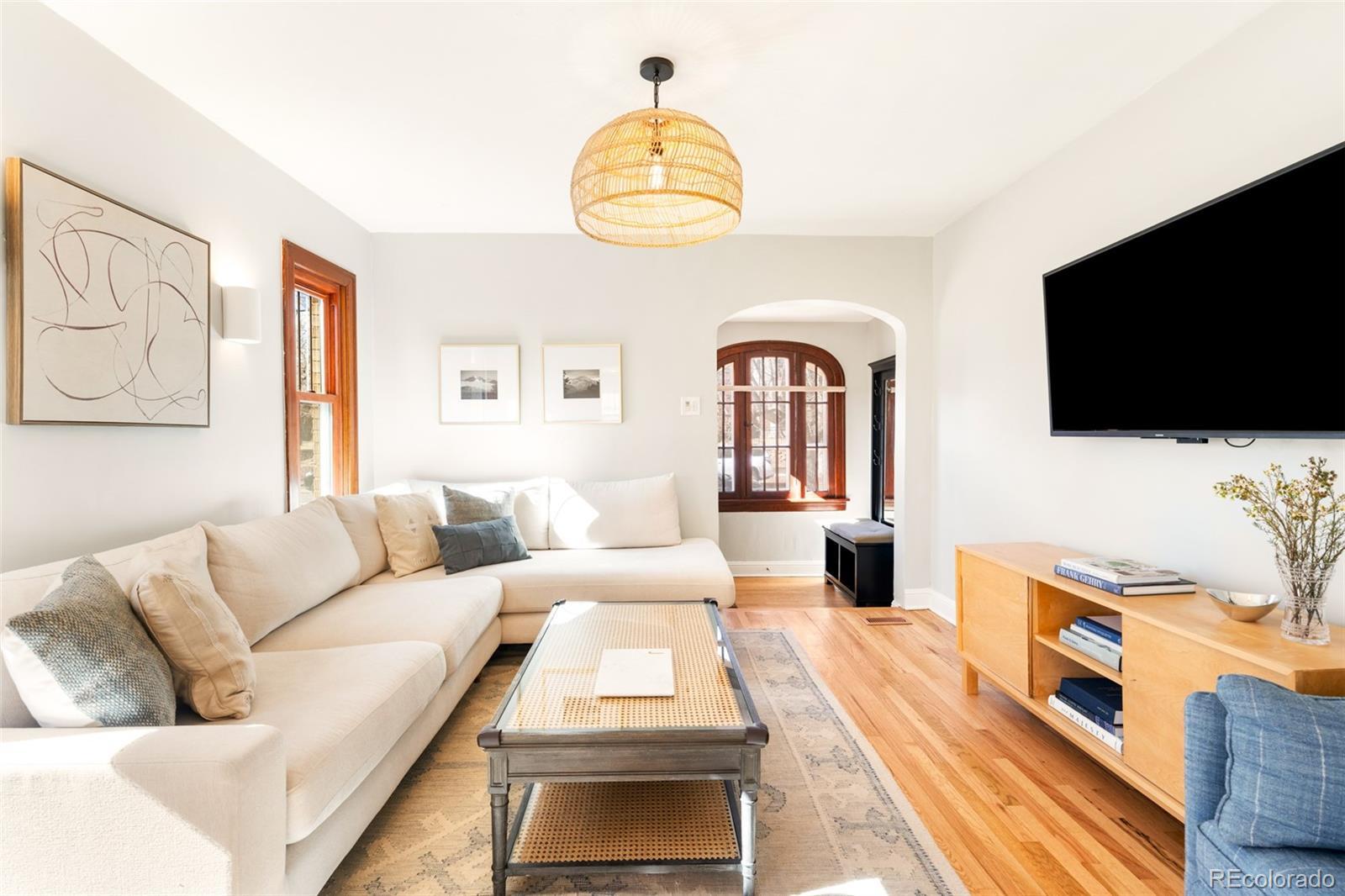 Discover historic charm reimagined in this exquisitely renovated Tudor, nestled in the heart of one of Denver's most coveted and walkable neighborhoods, West Highlands. Steps from Highland Square's vibrant array of restaurants, cozy bars, boutique shops, and coffee havens, this home offers unbeatable convenience and walkability. Thoughtfully renovated to honor its architectural roots while embracing modern design, this home is refined yet captures an inviting living experience. South-facing windows bathe the open-concept main level in warm natural light, showcasing gleaming newly refinished hardwood floors, smooth skim-coated walls, and meticulously restored historic trim. The heart of the home is a stunning chef's kitchen featuring sleek quartz countertops, crisp white cabinetry, and a premium gas range cooktop and brand new dish washer, flowing seamlessly into generous living and dining spaces. A standout rarity in the neighborhood: the main level boasts an expansive bedroom, delivering true single-level living, ideal as a primary bedroom or elevated guest space. The adjacent fully remodeled bath exudes contemporary calm with timeless, high-end finishes. The finished lower level expands the home’s livability, featuring a spacious non-conforming bedroom that functions as a private suite complete with its own living area—ideal for guests, extended stays, or a secondary primary bedroom option. A dedicated office nook, ¾ bath, and laundry room with new washer/dryer complete this level, creating meaningful additional living space. Step outside to a west-facing front porch that captures golden Colorado sunsets, or relax in the private backyard oasis featuring a covered patio with a lush grassy lawn and expansive landscaping. A detached one-car garage provides storage and ease, accompanied by a practical backyard shed. Rarely does a home blend old-world craftsmanship with contemporary comfort so seamlessly in one of Denver's most sought-after neighborhoods.