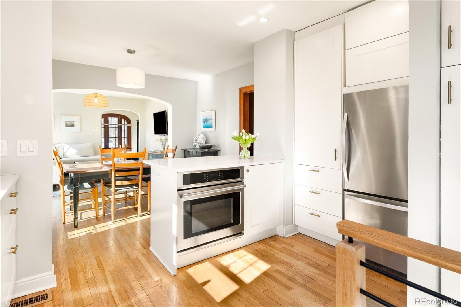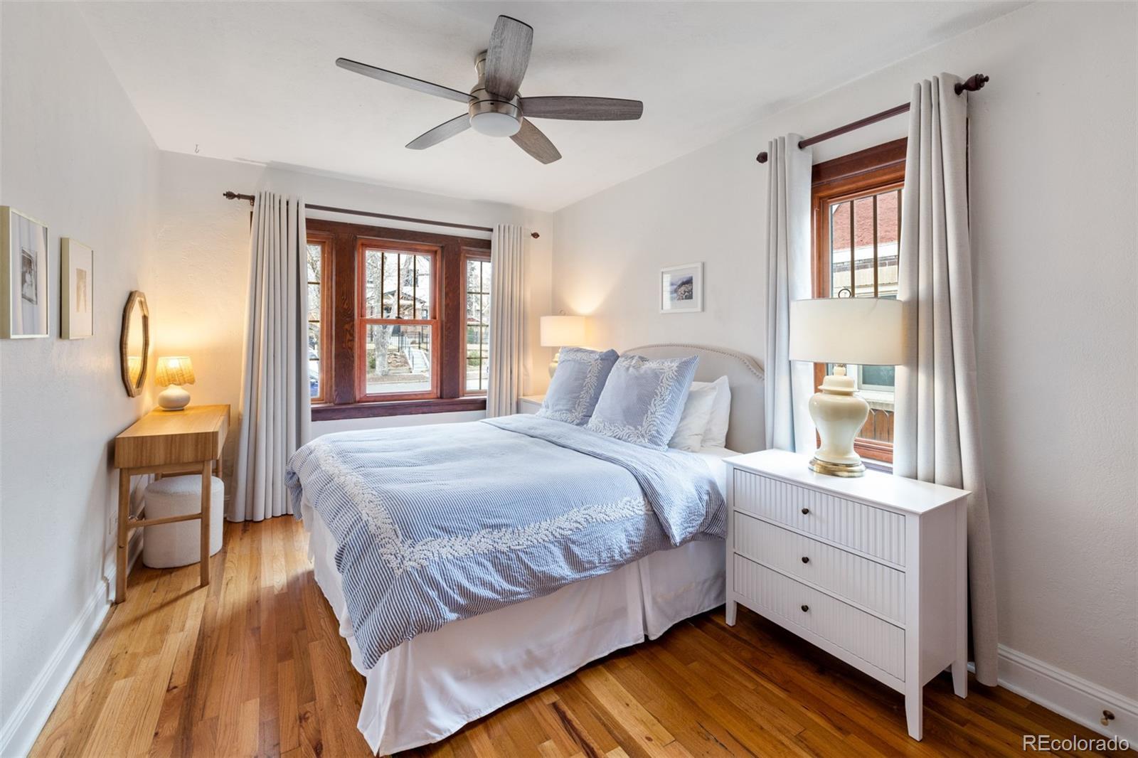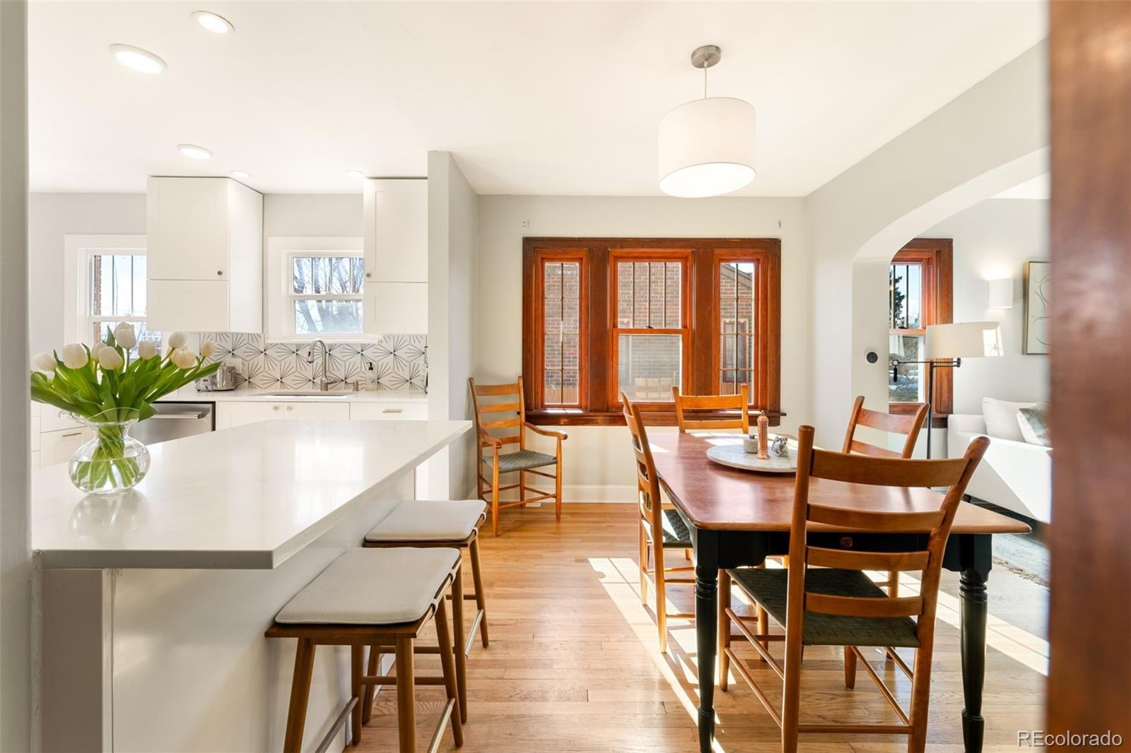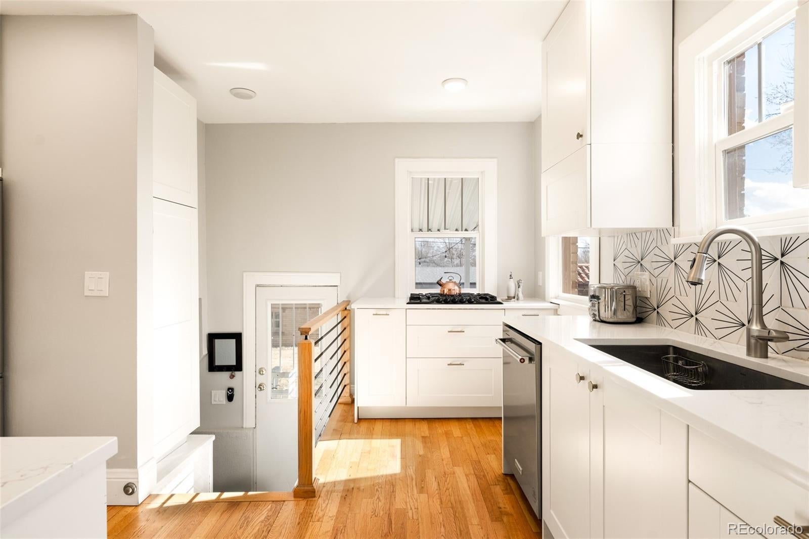 Discover historic charm reimagined in this exquisitely renovated Tudor, nestled in the heart of one of Denver's most coveted and walkable neighborhoods, West Highlands. Steps from Highland Square's vibrant array of restaurants, cozy bars, boutique shops, and coffee havens, this home offers unbeatable convenience and walkability. Thoughtfully renovated to honor its architectural roots while embracing modern design, this home is refined yet captures an inviting living experience. South-facing windows bathe the open-concept main level in warm natural light, showcasing gleaming newly refinished hardwood floors, smooth skim-coated walls, and meticulously restored historic trim. The heart of the home is a stunning chef's kitchen featuring sleek quartz countertops, crisp white cabinetry, and a premium gas range cooktop and brand new dish washer, flowing seamlessly into generous living and dining spaces. A standout rarity in the neighborhood: the main level boasts an expansive bedroom, delivering true single-level living, ideal as a primary bedroom or elevated guest space. The adjacent fully remodeled bath exudes contemporary calm with timeless, high-end finishes. The finished lower level expands the home’s livability, featuring a spacious non-conforming bedroom that functions as a private suite complete with its own living area—ideal for guests, extended stays, or a secondary primary bedroom option. A dedicated office nook, ¾ bath, and laundry room with new washer/dryer complete this level, creating meaningful additional living space. Step outside to a west-facing front porch that captures golden Colorado sunsets, or relax in the private backyard oasis featuring a covered patio with a lush grassy lawn and expansive landscaping. A detached one-car garage provides storage and ease, accompanied by a practical backyard shed. Rarely does a home blend old-world craftsmanship with contemporary comfort so seamlessly in one of Denver's most sought-after neighborhoods.