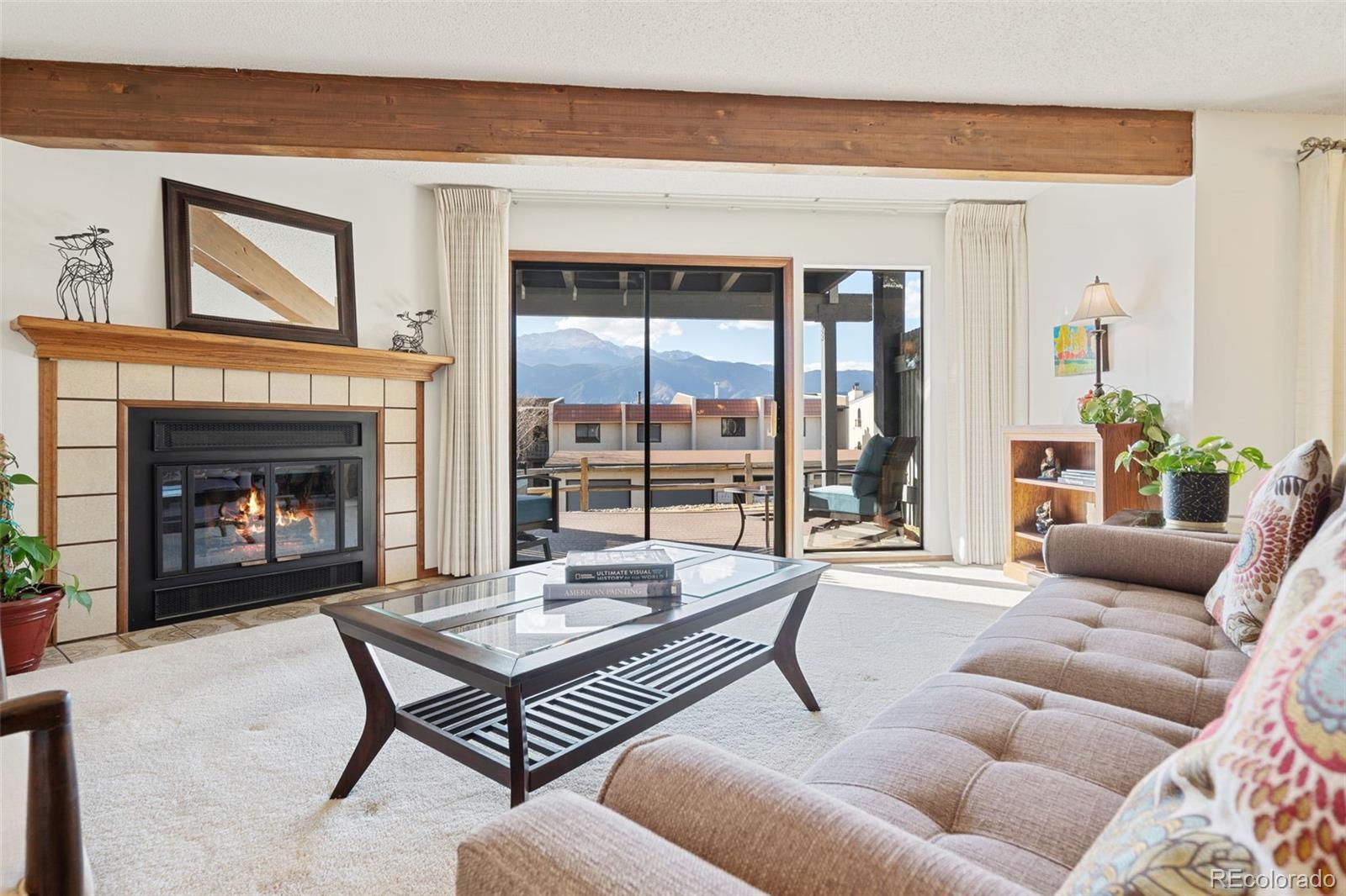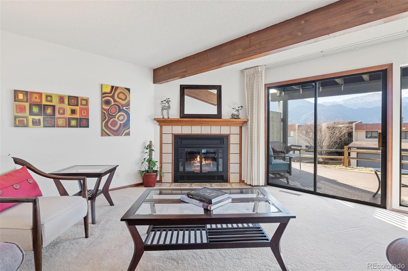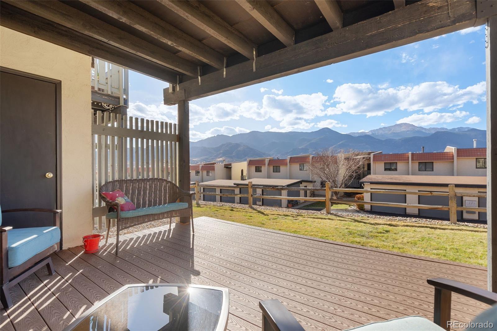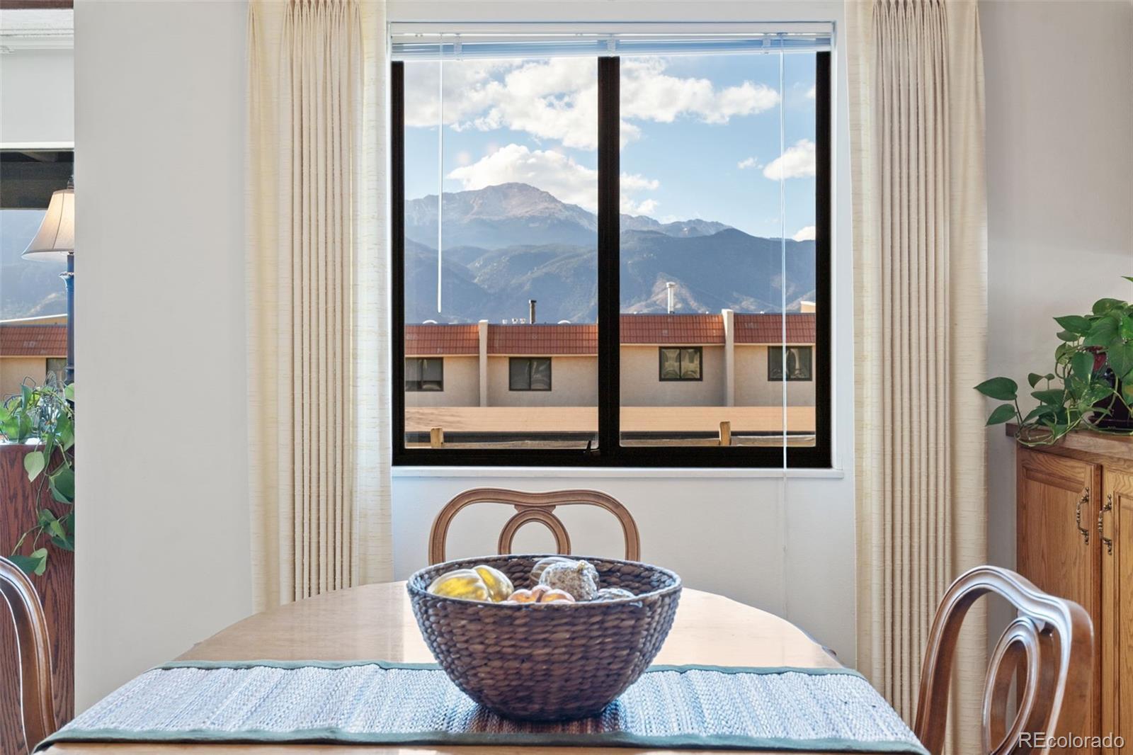 Welcome to this rare ground-level condo with no stairs, offering truly spectacular, unobstructed views of the Front Range and Pikes Peak! This well-maintained 3-bedroom, 1¾-bath home provides comfortable main-level living in one of Colorado Springs’ most desirable west-side locations. Inside, you'll find a bright and open layout with large windows that frame the mountain views, a spacious living area, and an efficient kitchen with ample cabinet space. The primary bedroom features an adjoining full bath with dressing area. Two additional bedrooms offer options for family, guests, an office, or hobby space. A 3/4 hallway bath services bedrooms 2 and 3. Enjoy peaceful mornings and gorgeous Colorado sunsets from your private, covered patio overlooking the Front Range. Just steps from the front door is a detached 1-car garage with a workbench—perfect for projects or storing outdoor gear. Quiet, convenient, and close to shopping, dining, parks, and trails, this move-in-ready condo is ideal for anyone seeking easy living with postcard-worthy vistas. Don’t miss this opportunity—homes with views like this are rarely available!