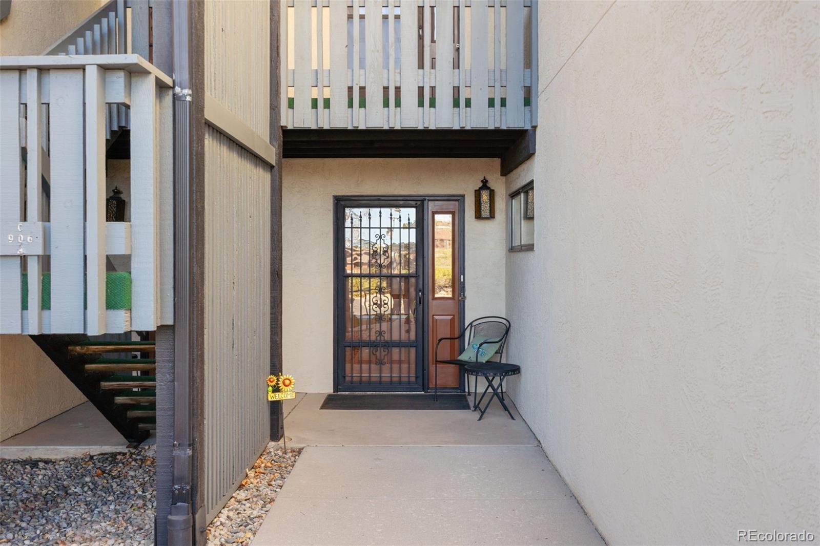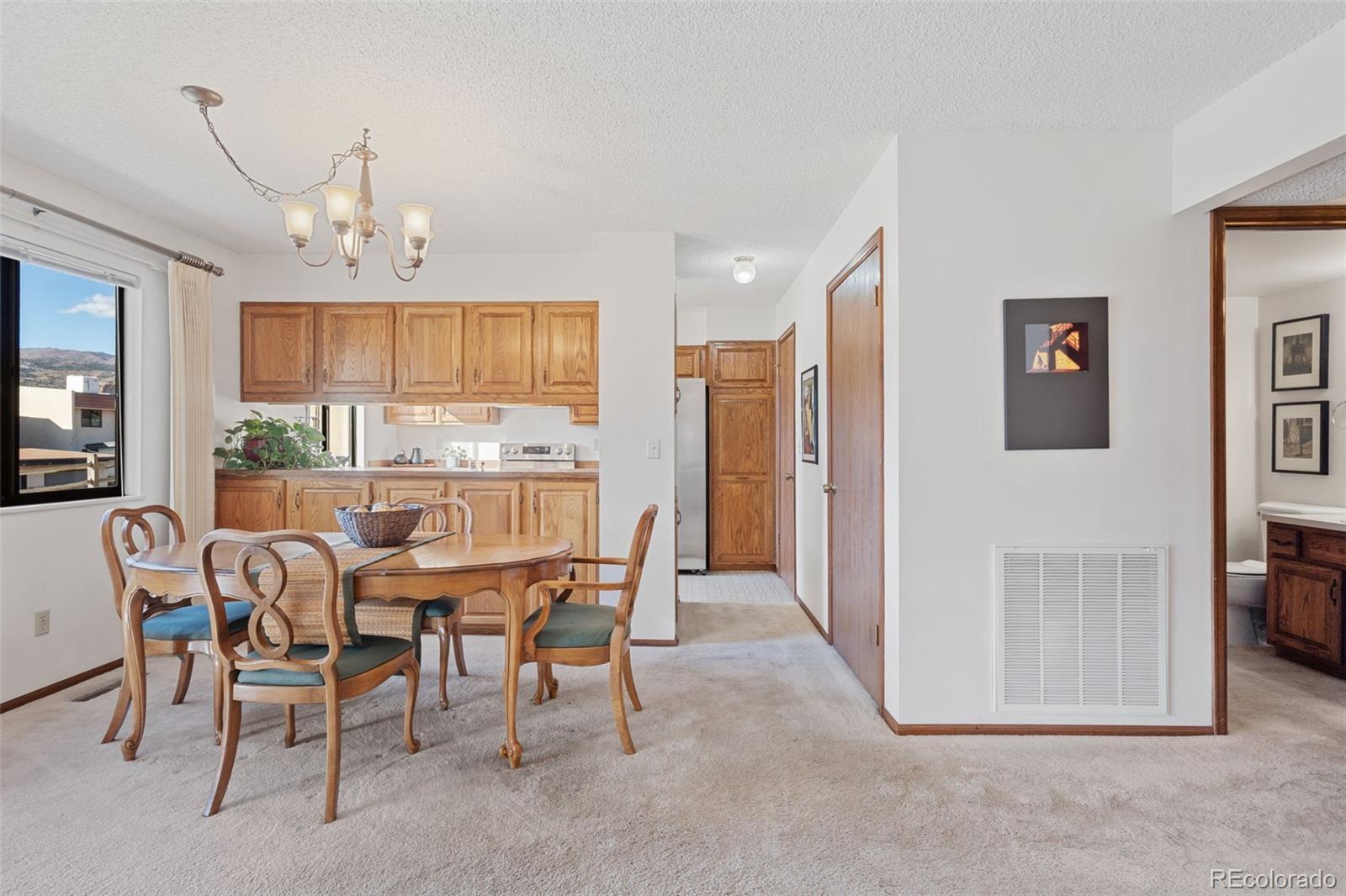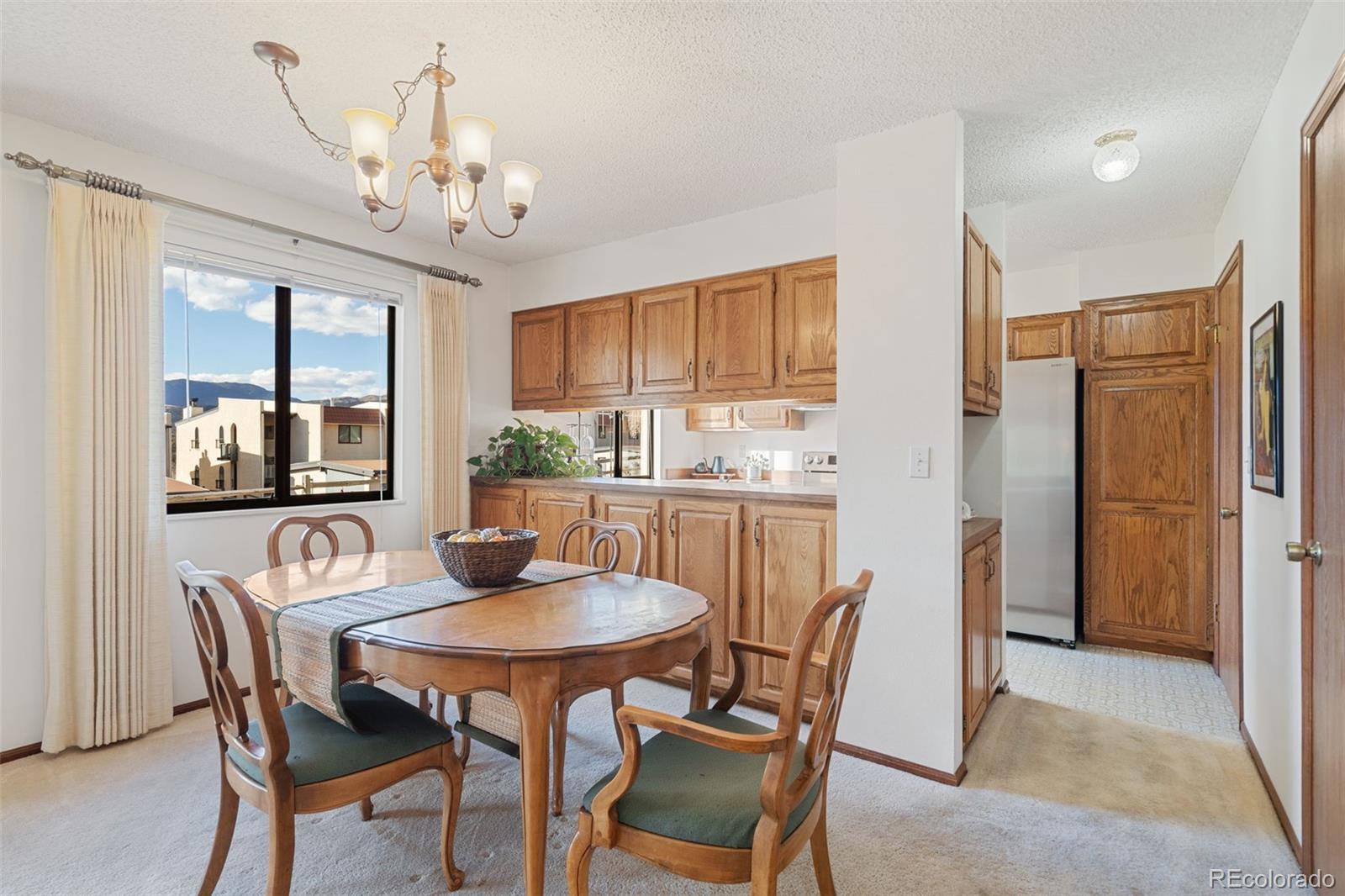 Welcome to this rare ground-level condo with no stairs, offering truly spectacular, unobstructed views of the Front Range and Pikes Peak! This well-maintained 3-bedroom, 1¾-bath home provides comfortable main-level living in one of Colorado Springs’ most desirable west-side locations. Inside, you'll find a bright and open layout with large windows that frame the mountain views, a spacious living area, and an efficient kitchen with ample cabinet space. The primary bedroom features an adjoining full bath with dressing area. Two additional bedrooms offer options for family, guests, an office, or hobby space. A 3/4 hallway bath services bedrooms 2 and 3. Enjoy peaceful mornings and gorgeous Colorado sunsets from your private, covered patio overlooking the Front Range. Just steps from the front door is a detached 1-car garage with a workbench—perfect for projects or storing outdoor gear. Quiet, convenient, and close to shopping, dining, parks, and trails, this move-in-ready condo is ideal for anyone seeking easy living with postcard-worthy vistas. Don’t miss this opportunity—homes with views like this are rarely available!