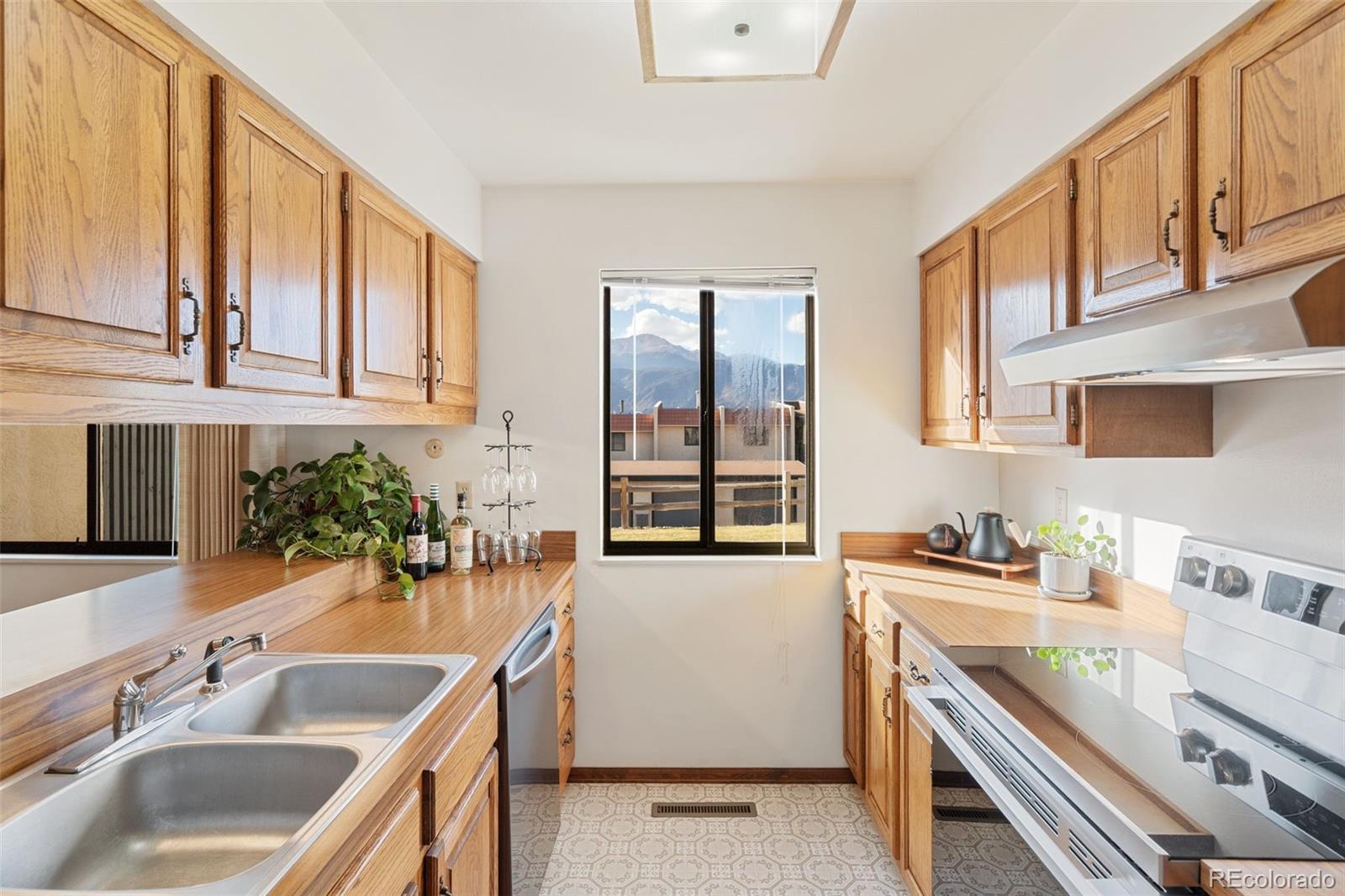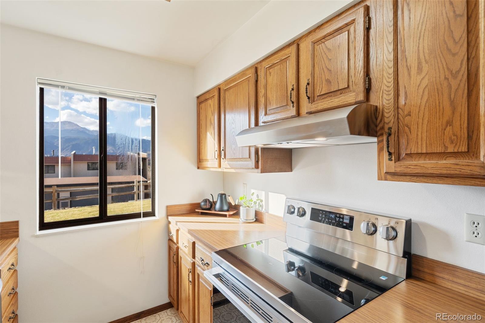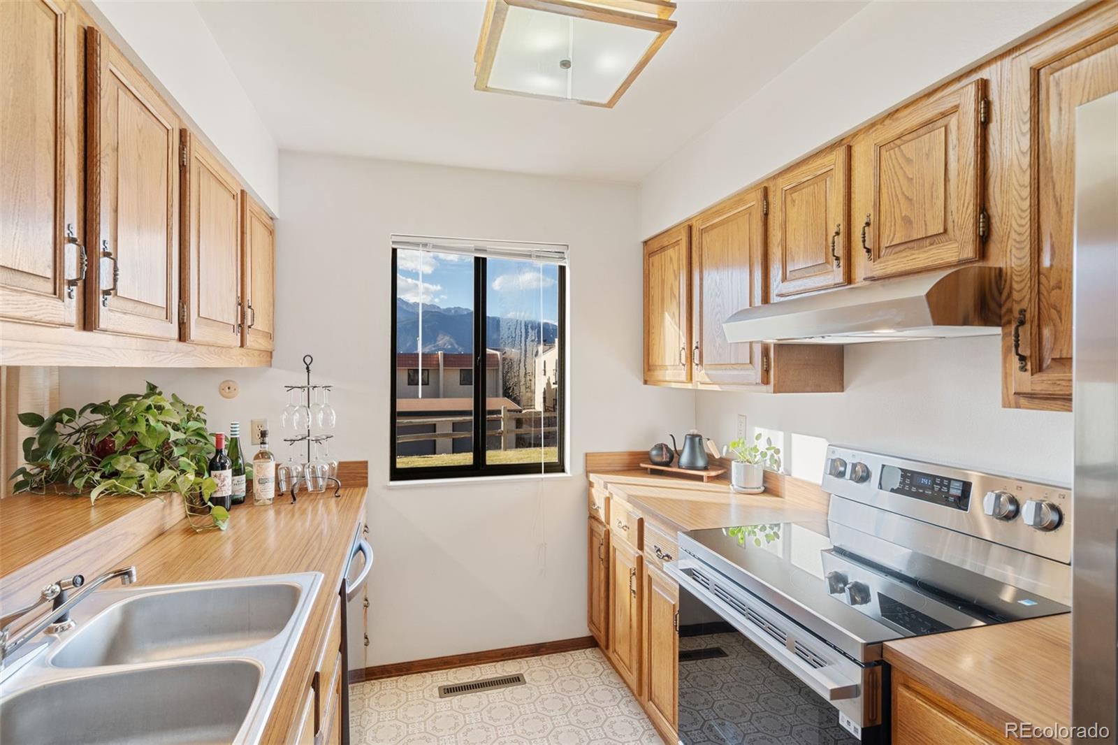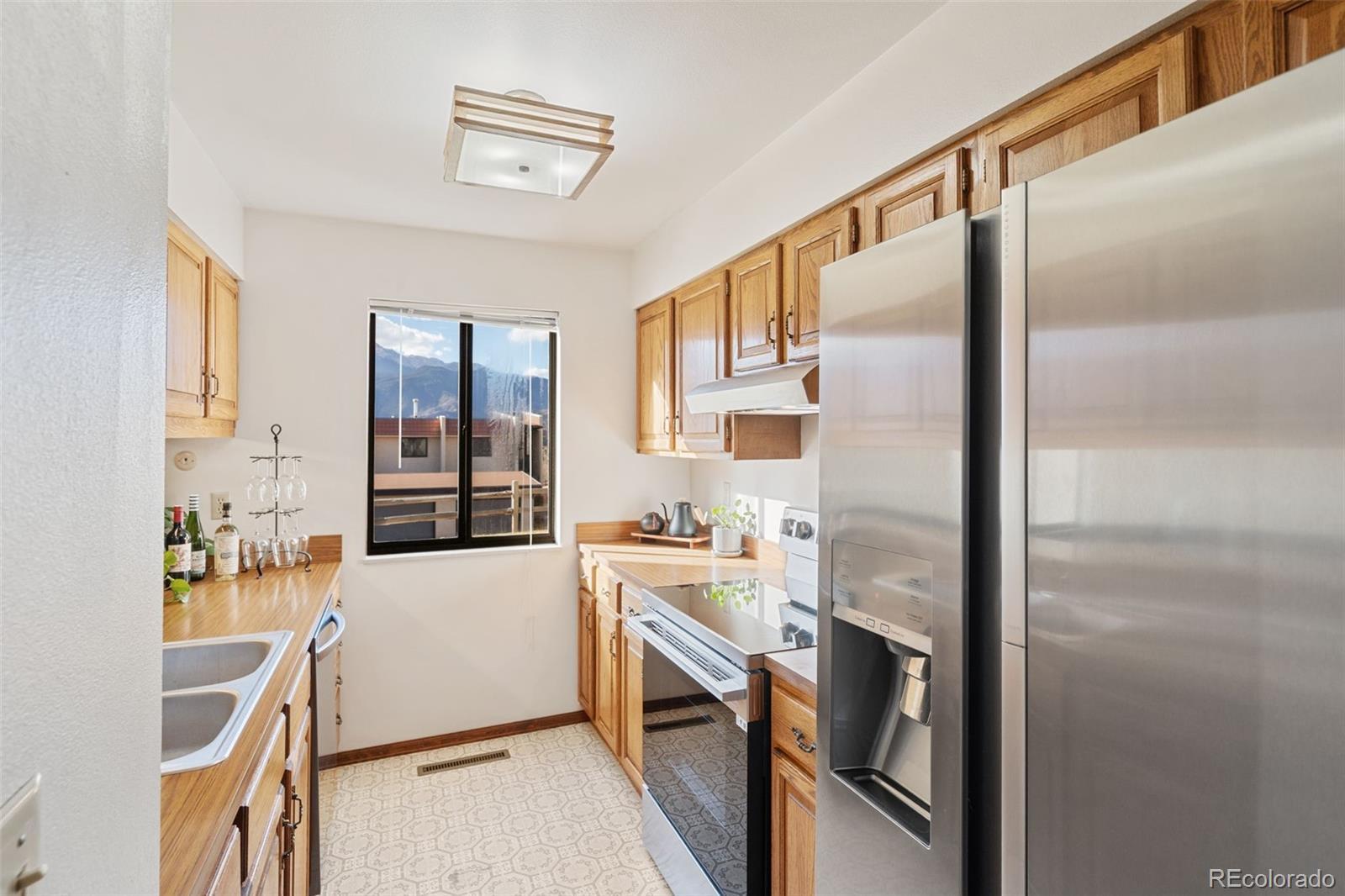 Welcome to this rare ground-level condo with no stairs, offering truly spectacular, unobstructed views of the Front Range and Pikes Peak! This well-maintained 3-bedroom, 1¾-bath home provides comfortable main-level living in one of Colorado Springs’ most desirable west-side locations. Inside, you'll find a bright and open layout with large windows that frame the mountain views, a spacious living area, and an efficient kitchen with ample cabinet space. The primary bedroom features an adjoining full bath with dressing area. Two additional bedrooms offer options for family, guests, an office, or hobby space. A 3/4 hallway bath services bedrooms 2 and 3. Enjoy peaceful mornings and gorgeous Colorado sunsets from your private, covered patio overlooking the Front Range. Just steps from the front door is a detached 1-car garage with a workbench—perfect for projects or storing outdoor gear. Quiet, convenient, and close to shopping, dining, parks, and trails, this move-in-ready condo is ideal for anyone seeking easy living with postcard-worthy vistas. Don’t miss this opportunity—homes with views like this are rarely available!