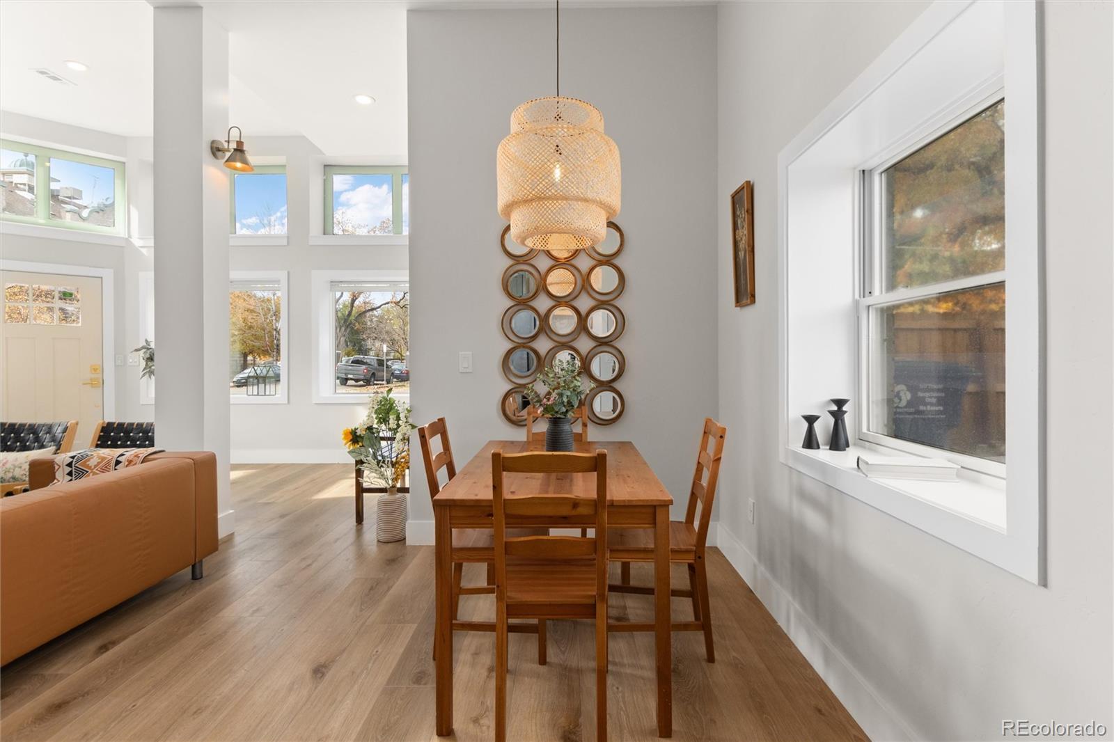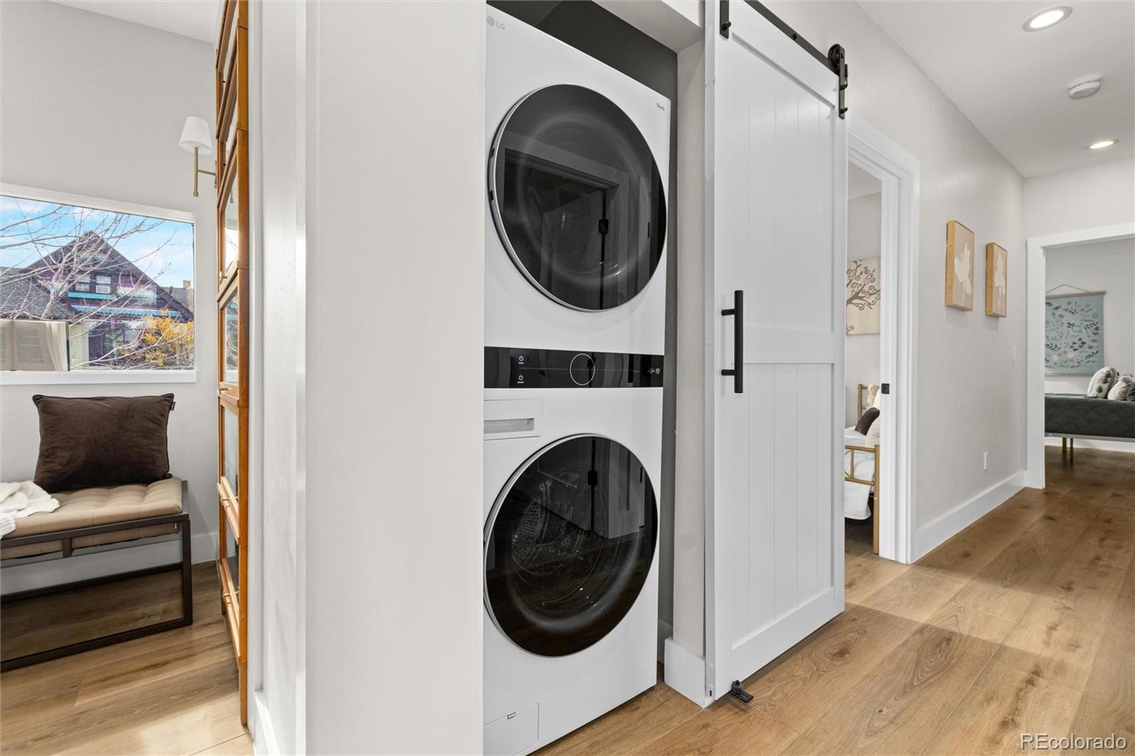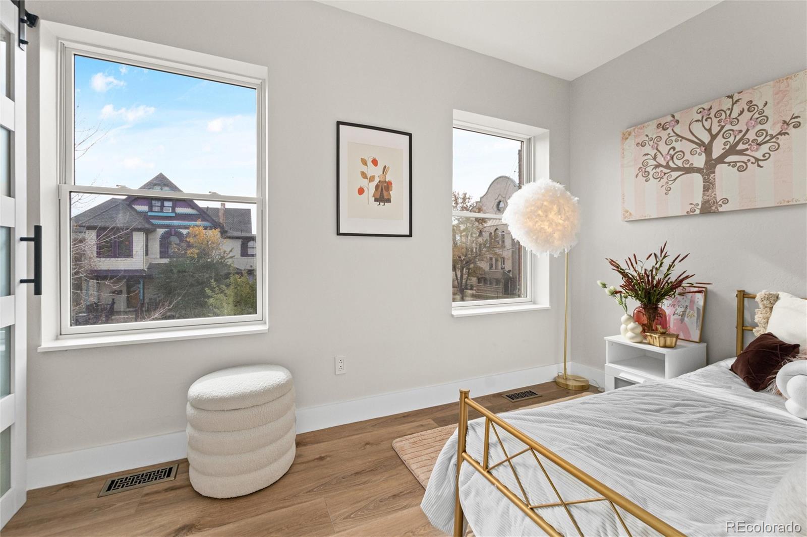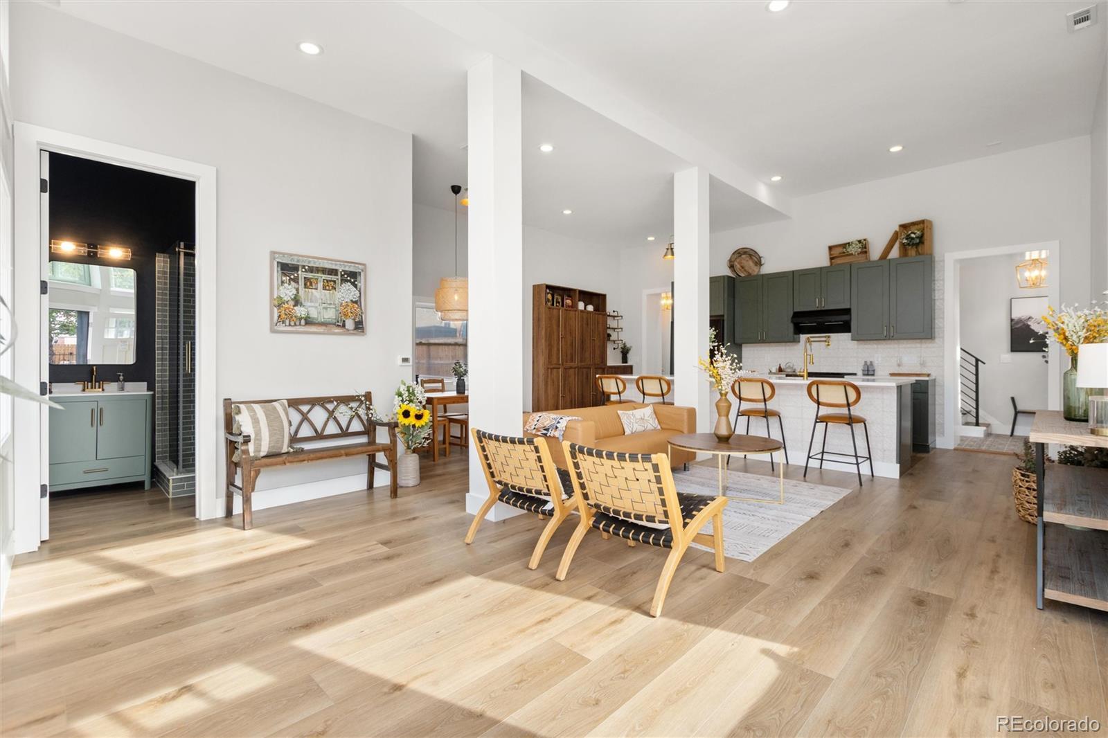 Built in 1896 and steeped in historical significance, 95 W Byers Place was once a family-owned grocery store serving Denver in the early 1900's! For the first time in it's 130 year history, it has been completely reimagined and transformed into a luxurious single family home on a rare double lot. The home's exterior natural character has been preserved, which allows for an abundance of natural light that illuminates the interior of the home. Featuring 13 foot ceilings, the home opens to an open concept main floor perfect for entertaining where friends and family can easily mingle throughout the entire space! Bathed in natural light, the comfortable living room and kitchen are smartly designed with every modern convenience including quartz countertops, large center island, sleek black and gold appliances and plenty of cabinets for storage. The dine in kitchen can easily accommodate a large dinner party if needed. The main floor offers a dramatic 3/4 bath with frameless glass shower. Off the stairwell, the back of the home offers a charming butlers pantry with wine fridge tucked into the stairwell as well as a secondary entrance to the home and additional exit to the rare fully fenced yard with private parking on the large double lot. The lot offers additional opportunity for a detached garage as well as ADU should one desire. Upstairs features three bedrooms, including the Primary Suite with an updated, private ensuite bath and walk in closet. Two secondary bedrooms share a completely renovated secondary bath with dual sinks, quartz countertops and shower/tub combo. A bright reading nook with built in seating, original shelving with glass doors and included original pictures of the home from the early 1920's showcase more of the historical charm of the home. The laundry room is smartly hidden behind one of multiple barn doors upstairs for added convenience. Located within steps of restaurants, bars and shopping this historical home is now ready to become yours!