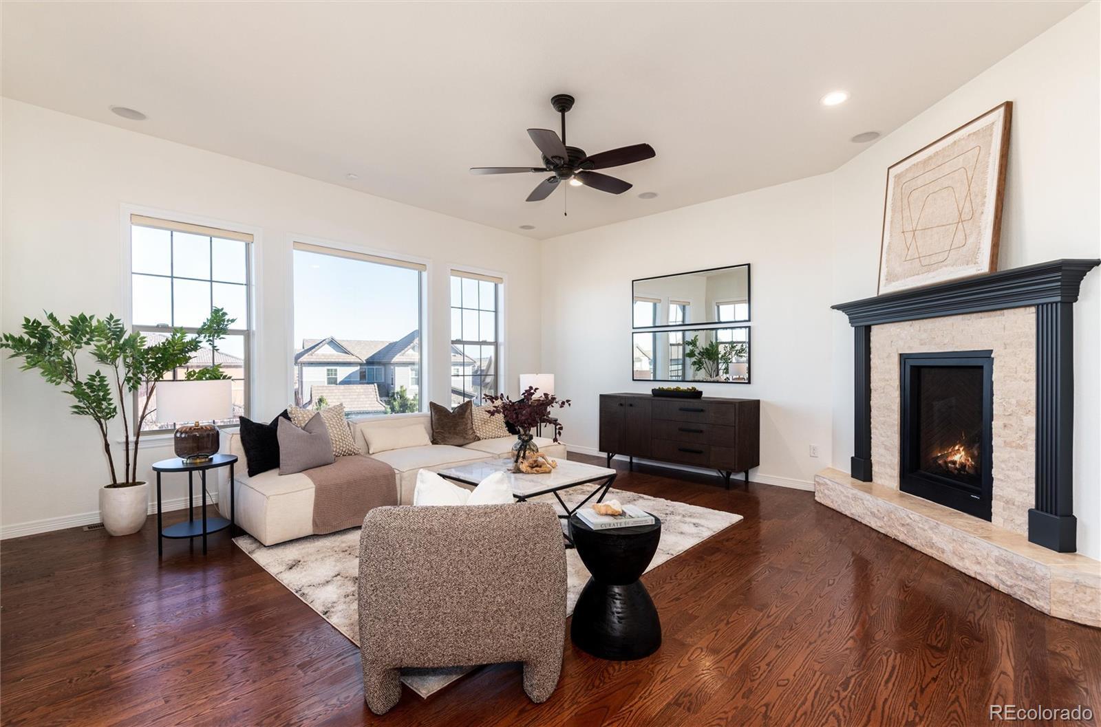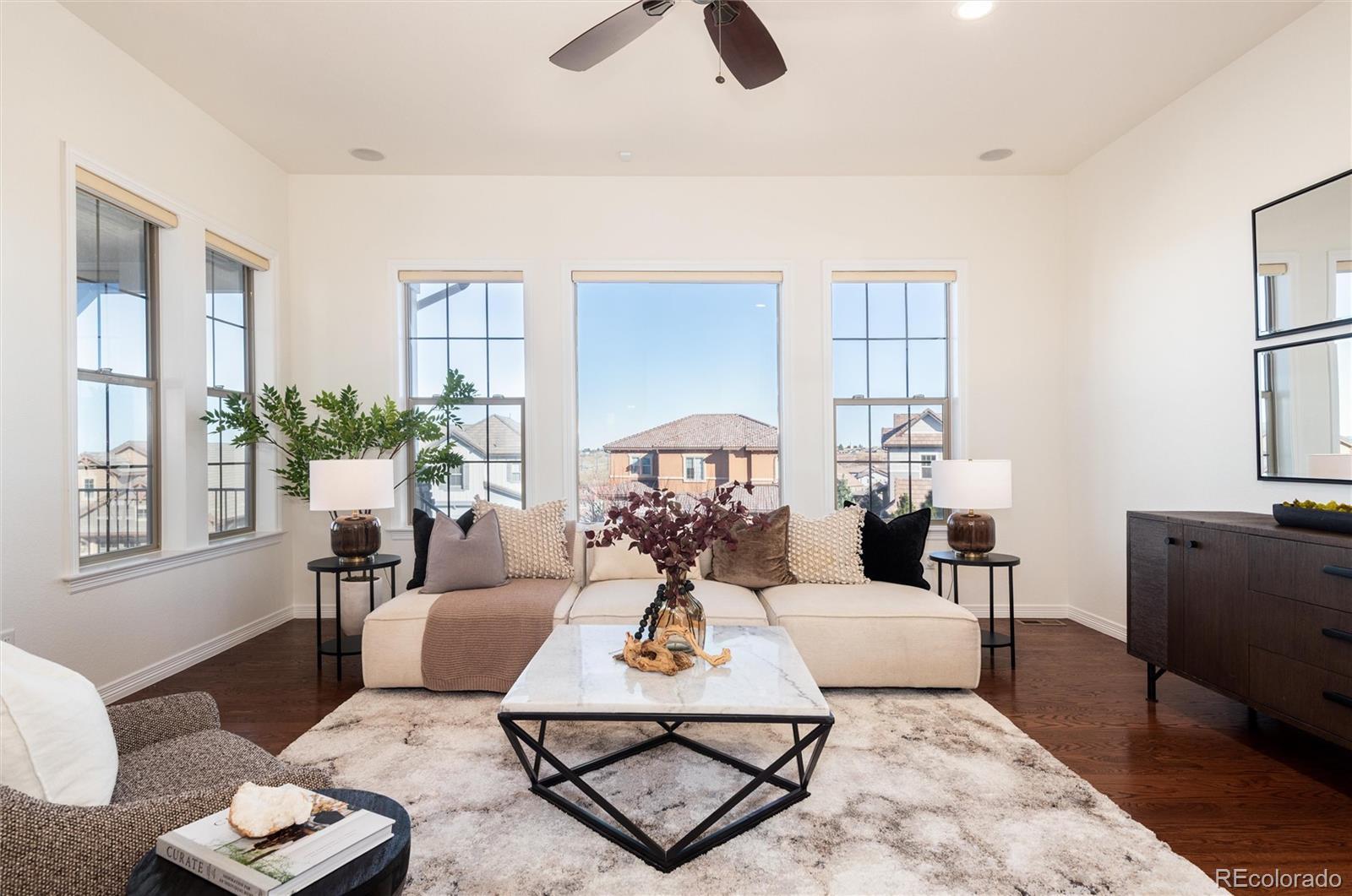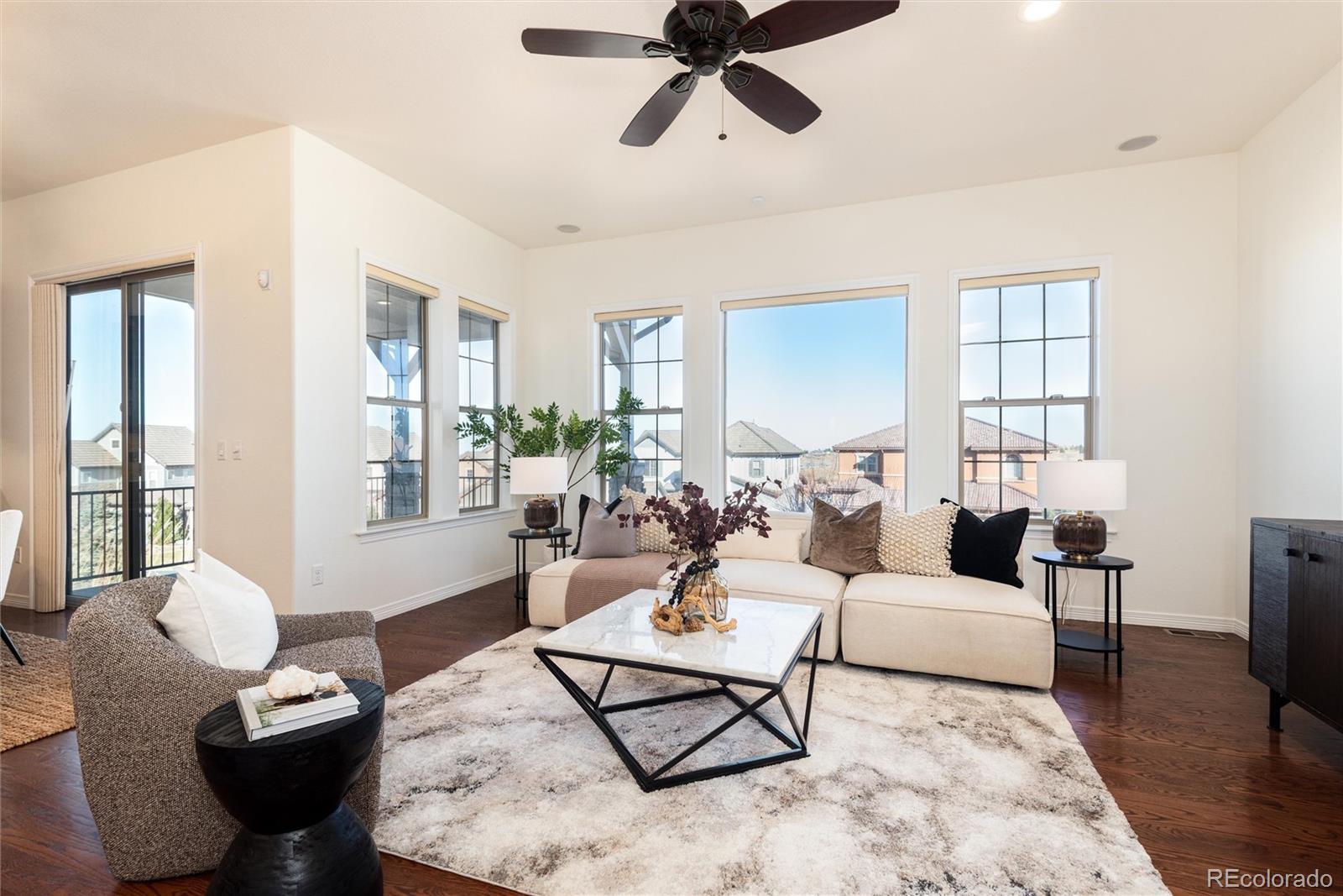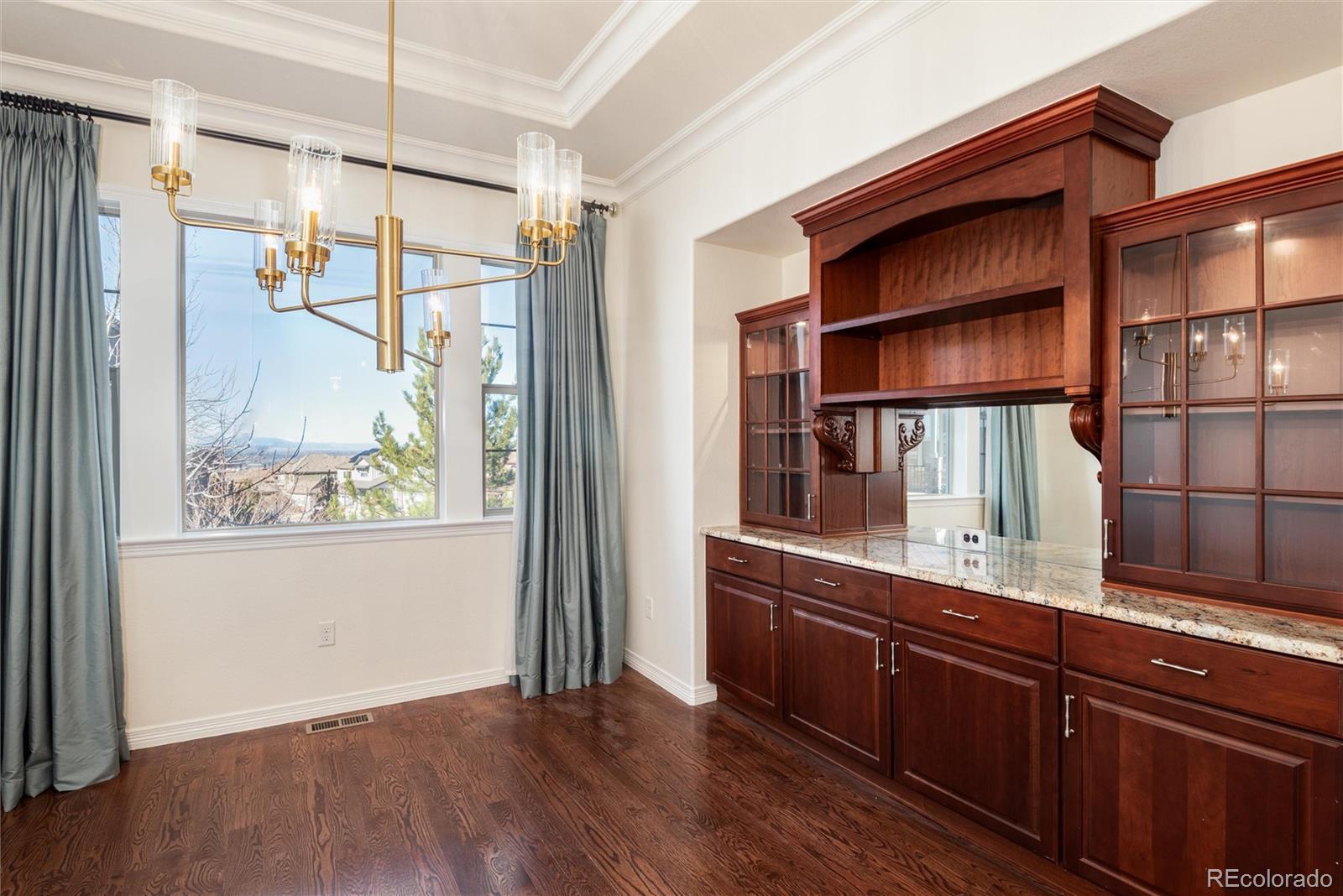 Welcome to 10698 Mountaingate Court, an exceptional home in the gated BackCountry community, known for its resort-style amenities, miles of trails, and dramatic Front Range setting. Tucked at the end of a quiet cul-de-sac, this property offers privacy, space, and views that are hard to match. Set on a huge, fenced in lot exceeding 14,000 square feet, the home features expansive mountain views enjoyed from the back deck and outdoor fire wall, ideal for relaxing or entertaining. Inside, the entire interior has been freshly painted, complemented by updated light fixtures, solid oak hardwood floors, and a welcoming fireplace that anchors the main living area. The thoughtfully designed floor plan includes four bedrooms, highlighted by a main-floor primary suite, plus a dedicated home office on the main level, perfect for today’s flexible lifestyles. The finished walk-out basement expands the living space with a wet bar and plenty of room for a pool table, media area, or game space. Additional features include a three car tandem garage, generous storage, and seamless indoor-outdoor flow to the oversized yard. Residents of BackCountry enjoy exclusive access to the Sundial House, featuring a resort-style pool, fitness center, coffee lounge, and event spaces, along with miles of private trails, parks, and open space. Community events, outdoor recreation, and gated entry complete the experience, offering a lifestyle that blends luxury, nature, and convenience in Highlands Ranch’s most desirable neighborhoods.