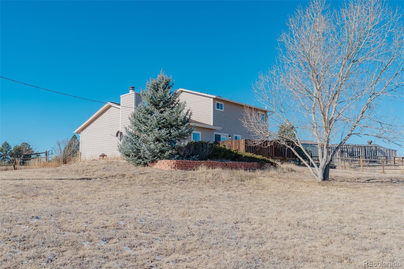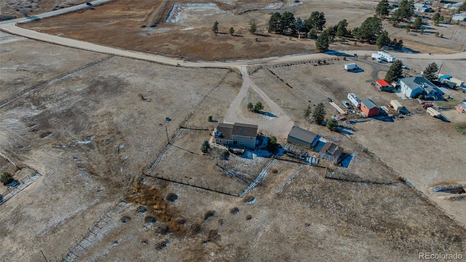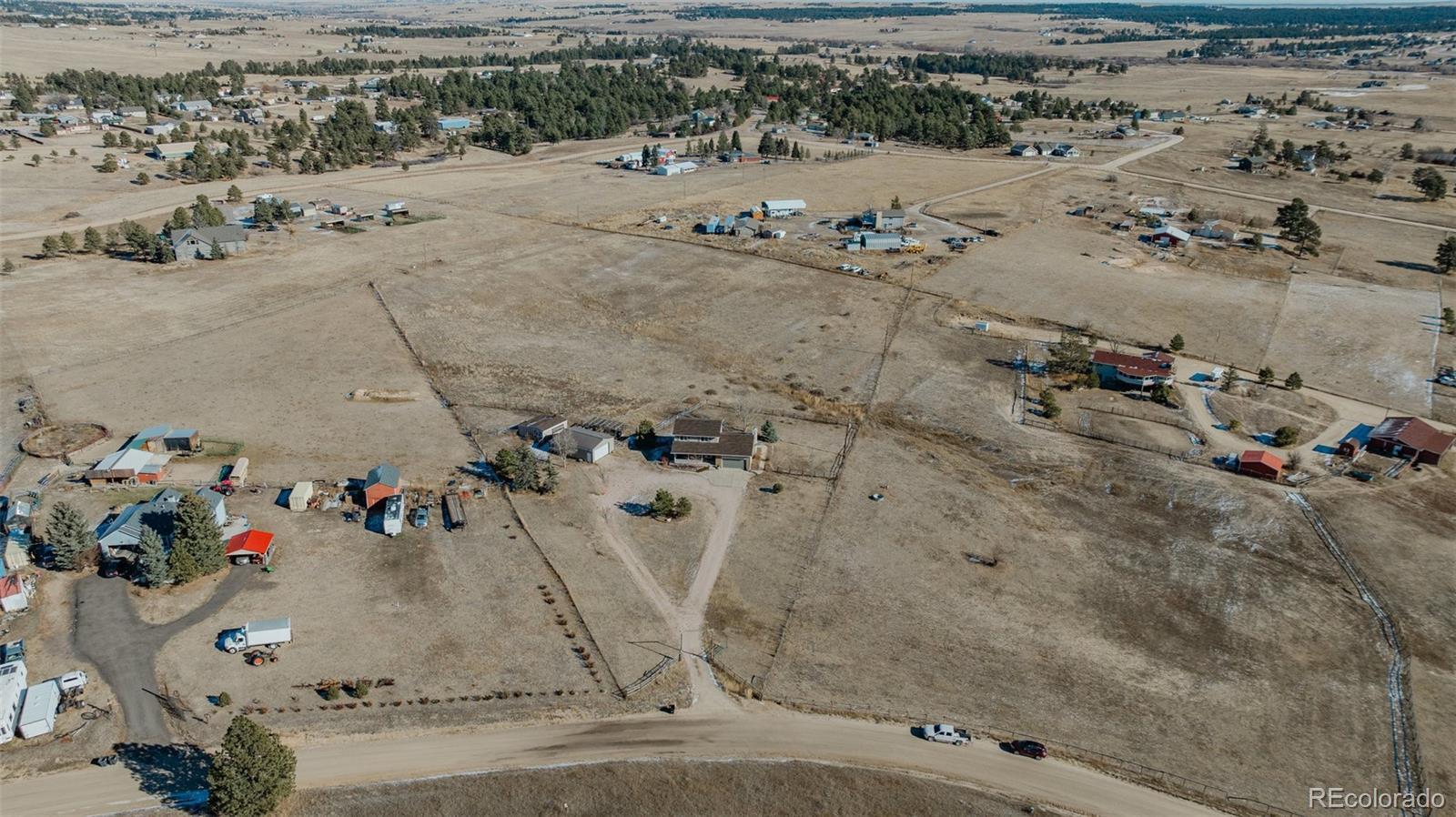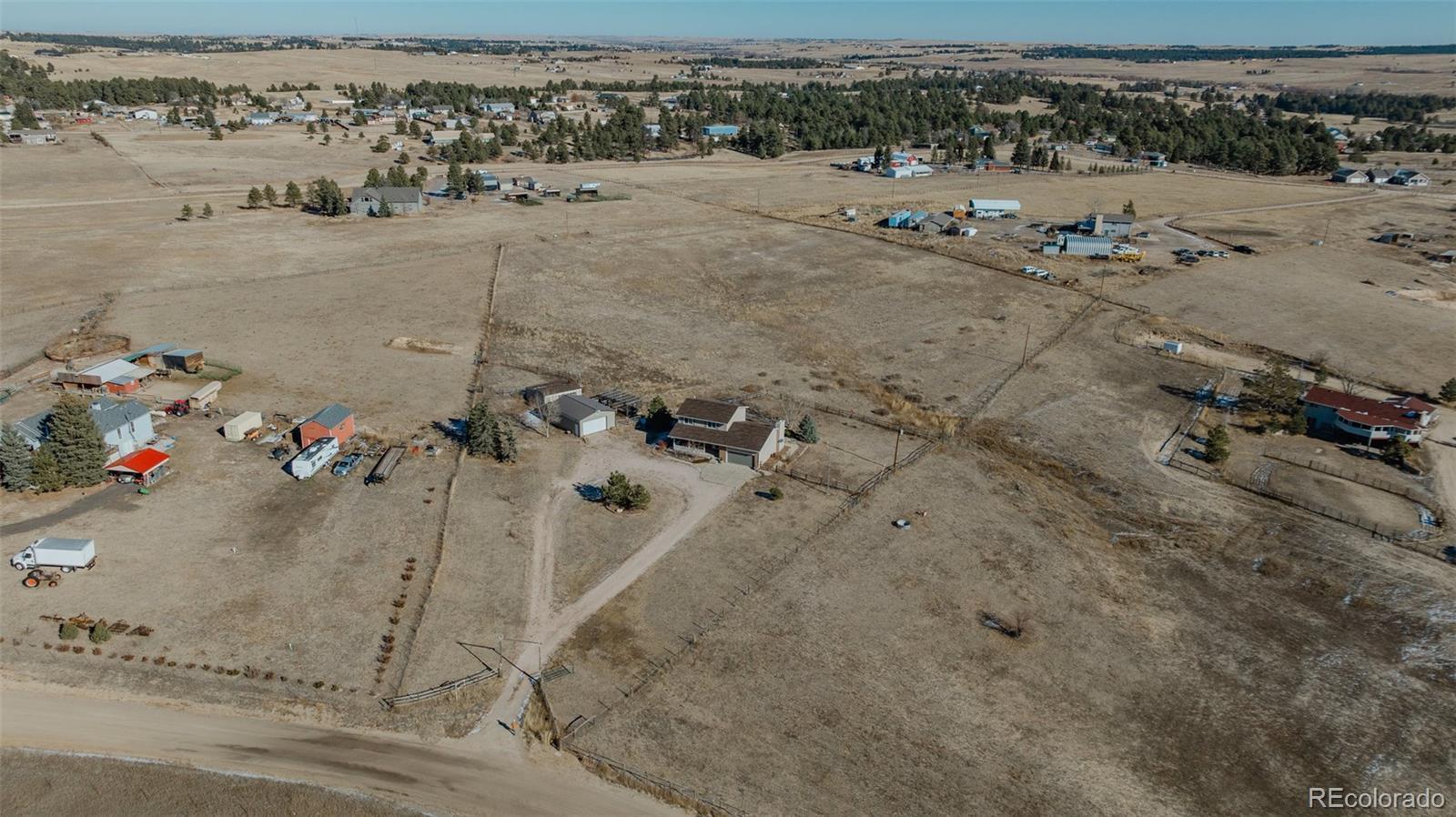 This adorable two story charmer in Ponderosa Pines in ready for you! The cute front porch is well positioned for afternoon sunsets. Almost six acres of land with no HOA and a phenomenal location. Just mere feet from a paved road with a quick commute to historic Elizabeth, Parker, Castle Rock or DTC. Get home quick, away from the hustle and bustle! This property has a 25'x30' Cleary built shop with concrete floors and electric. Perfect for your toys, tools, equipment, truck storage, and more! Imagine, actually parking your cars in the garage! Additionally, there is a 20'x25' barn located just behind the shop for your "four legged" storage, with easy access to the pasture for grazing/ turnouts. The home is on natural gas, so no need to worry about propane running low. Maverick Internet has just come through and installed their lines, so no need to worry about slow internet! The home has been very well maintained and features soft close kitchen cabinets, washer, dryer and all kitchen appliances included, reverse osmosis water system, whole house filtration, and a commercial size furnace/ AC unit that has had an annual service.