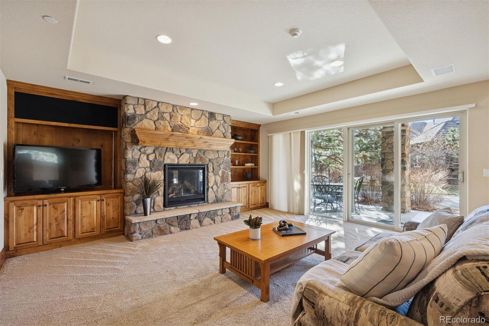 If you’re looking for a truly custom home that blends timeless design with comfortable, everyday livability, this 4 bedroom | 4 bathroom residence, designed by renowned architect Craig Bush and well-located on a corner lot within the gated, highly coveted Village at Castle Pines community, delivers. The main level, featuring rich hardwood floors and statement-making millwork, is thoughtfully designed around a dramatic open concept great room showcasing a stone fireplace, tray ceiling with wood accents, thoughtfully designed built-ins, and floor to ceiling windows | access door opening to a covered deck - creating seamless indoor | outdoor connectivity. Adjacent to the dining room, the kitchen is finished with warm wood cabinets, granite counters, and a generous center island. Appliances include Sub-Zero refrigerator and beverage fridge, Wolf double ovens, range, warming drawer, and built-in microwave. A sizable main level office with coffered ceiling detail and handcrafted built-ins provides a quiet retreat, while the primary suite offers a spacious escape filled with abundant natural light. The adjoining bathroom is appointed with dual vanities, granite counters, and custom cabinets. Completing this level are a well-planned laundry room, refined powder room, and 2-car garage with epoxy seal floor and built-in storage. Expanding the home’s versatility, the walkout lower level includes a large family room with walkout access to the covered deck. Three more bedrooms are thoughtfully offered, with two sharing a well-appointed bathroom, and the third featuring an en suite bath. A flexible bonus room with abundant natural light provides space for a 2nd home office, fitness studio, or playroom. Additional ample unfinished space is perfect for storage or future expansion. Designed for both everyday comfort and entertaining, this thoughtfully built home offers a functional layout, high quality finishes, and a rare balance of privacy, warmth, and convenience.