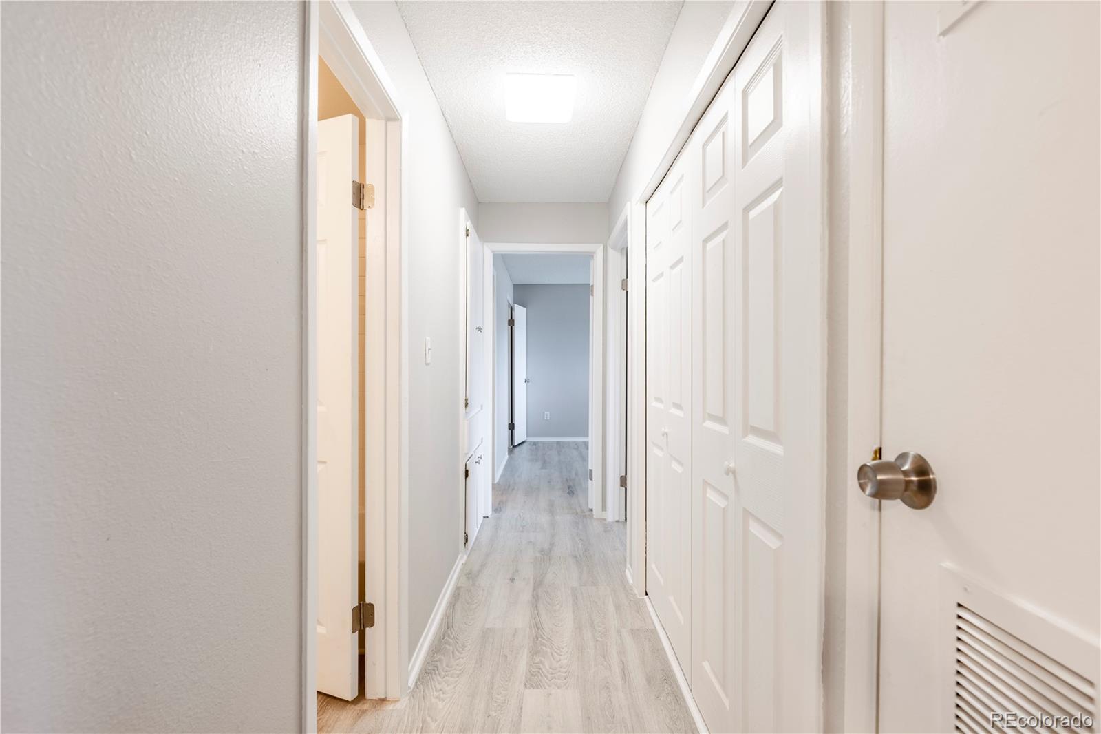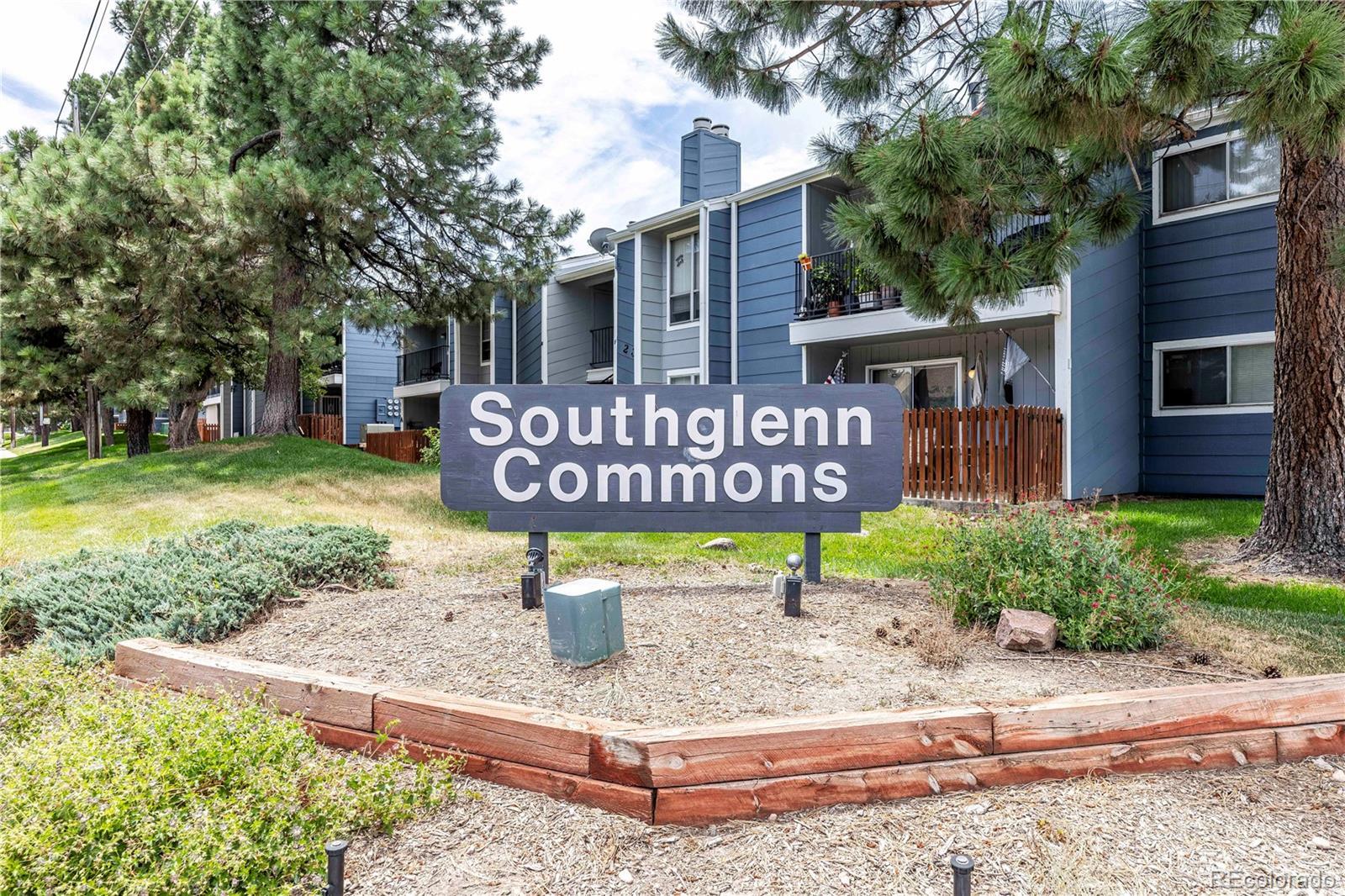 Enjoy low-maintenance living in Littleton in this updated ground-floor unit at Southglenn Commons! With 2 bedrooms, 2 bathrooms, and over 1,000 finished square feet, this move-in-ready home offers a smart layout and modern upgrades throughout. The open concept living and dining area features luxury vinyl plank flooring, natural light, and direct access to a private covered patio. The kitchen includes plentiful cabinetry, a stainless steel sink, and updated appliances, including a brand new range. The spacious primary suite offers a walk-in closet and a private 3/4 bathroom with an oversized vanity, walk-in shower, and glass enclosure. A second bedroom and full bathroom provide flexible living space for guests, roommates, or a home office. Additional highlights include an in-unit laundry space with hookfor a side-by-side washer and dryer, ceiling fans, central AC, and ample storage throughout. The unit comes with access to plentiful open parking throughout the community! Enjoy a secure storage closet just outside your front door for long-term storage! Southglenn Commons is a well-managed community with a pool, clubhouse, and beautifully landscaped grounds just minutes from Dry Creek Road, Arapahoe High School, South Suburban Golf Course, and plenty of shopping, dining, entertainment, and recreation nearby! HOA dues cover water, sewer, trash, exterior maintenance, and more.