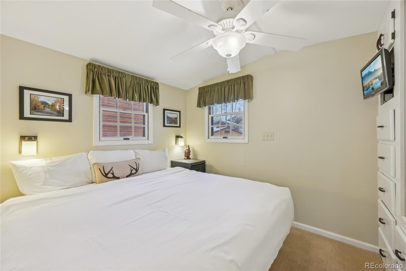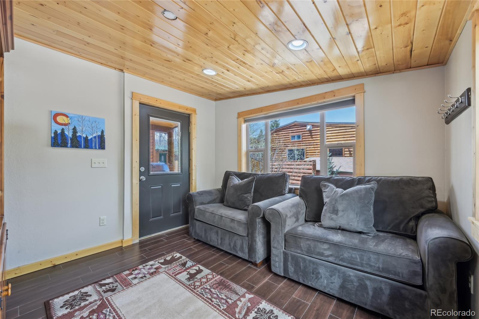Welcome to your cozy mountain escape in the heart of Tiger Run Resort with majestic mountain views and lifestyle galore! This move-in-ready log home is set on a rare oversized corner lot in Tiger Run Resort, offering room to expand into a larger unit. Enjoy mountain living with a covered front porch and a private back deck—perfect for grilling or relaxing. The easy-to-maintain side yard provides plenty of space for outdoor dining, a fire pit, or even a swing. Inside, the spacious living room features rustic wood plank ceilings and flexibility to create multiple seating or sleeping areas. The bright eat-in kitchen boasts granite tile countertops and stainless appliances. You'll also find a full updated large bathroom and a cozy king-size bedroom with built-in storage. A separate storage shed adds convenience and ample extra storage. New heat tape added and new exterior stain. You will not want to leave this charming 53-acre gated community just 4 miles from historic downtown Breckenridge and its renowned ski resort. Tiger Run offers unbeatable amenities: including a 12,000-square-foot clubhouse with an indoor heated pool, two hot tubs, an owner's lounge, a new community laundry facility, a workout room, and a 2023 updated arcade-style game room. Outdoors, you can take advantage of tennis and pickleball courts, a basketball half-court, sand volleyball, a firepit, a playground for the kids, and a large outdoor pavilion perfect for family gatherings and community, Just minutes to the Colorado Trail, Blue River bike path, and endless hiking and biking opportunities. Tiger Run Resort offers year-round events like Jeep tours, wine & cheese nights, movies, community cookouts, and more! As a special bonus, Tiger Run Resort is exempt from the short-term rental moratorium, presenting a rare opportunity to own in a vibrant mountain resort community for your own enjoyment or investment opportunity! Don’t miss out on this incredible chance to own a slice of paradise!