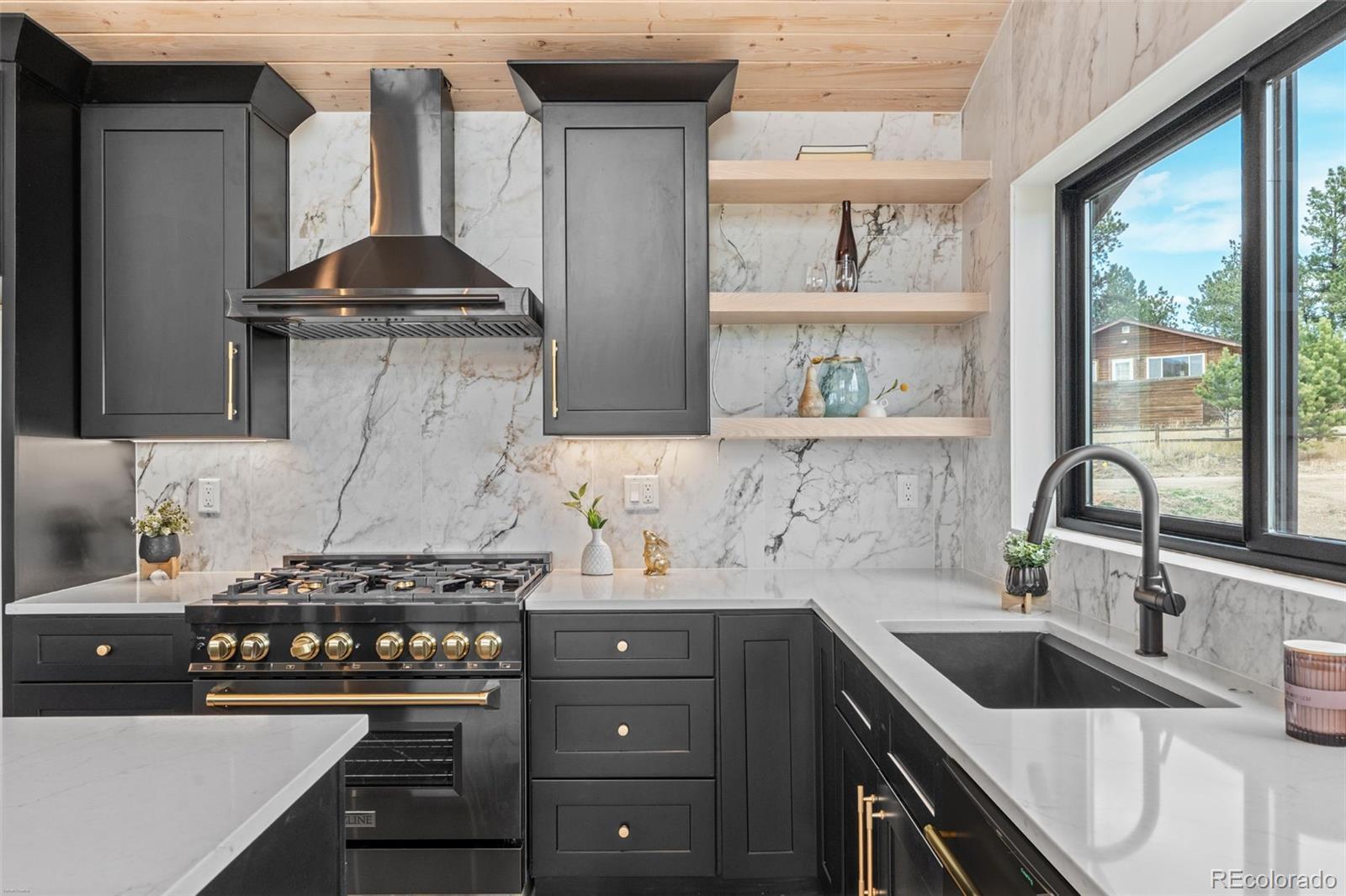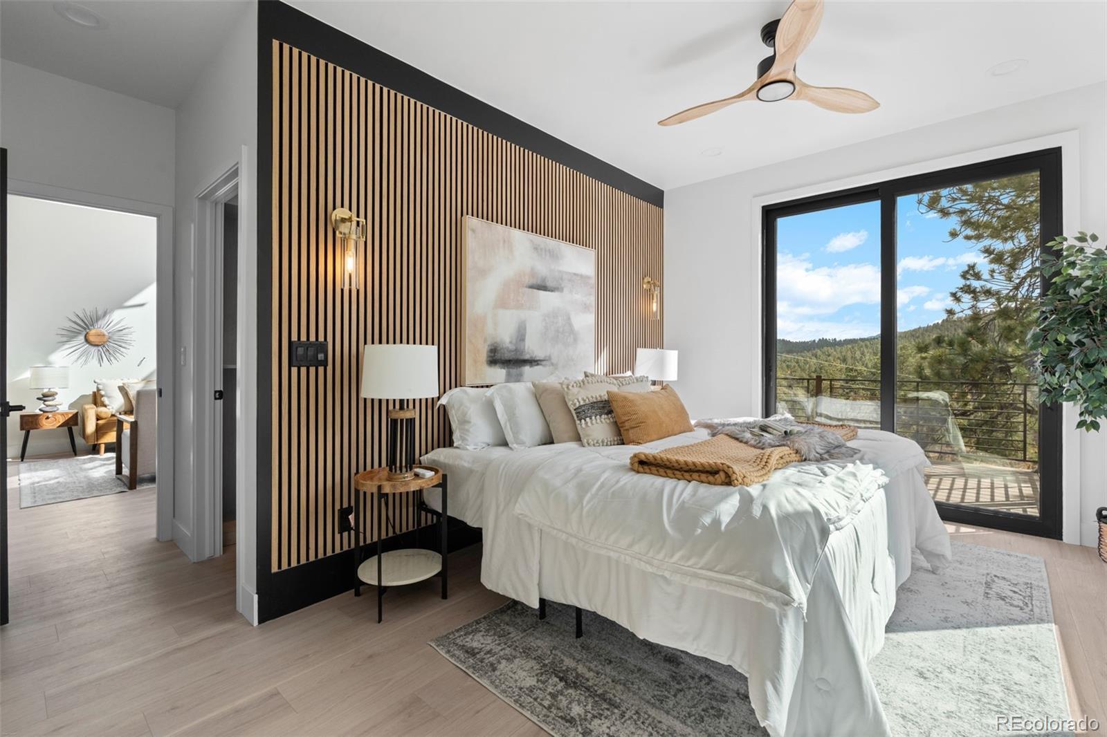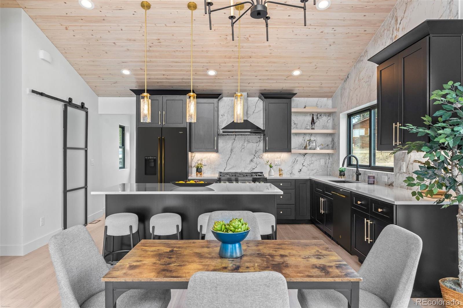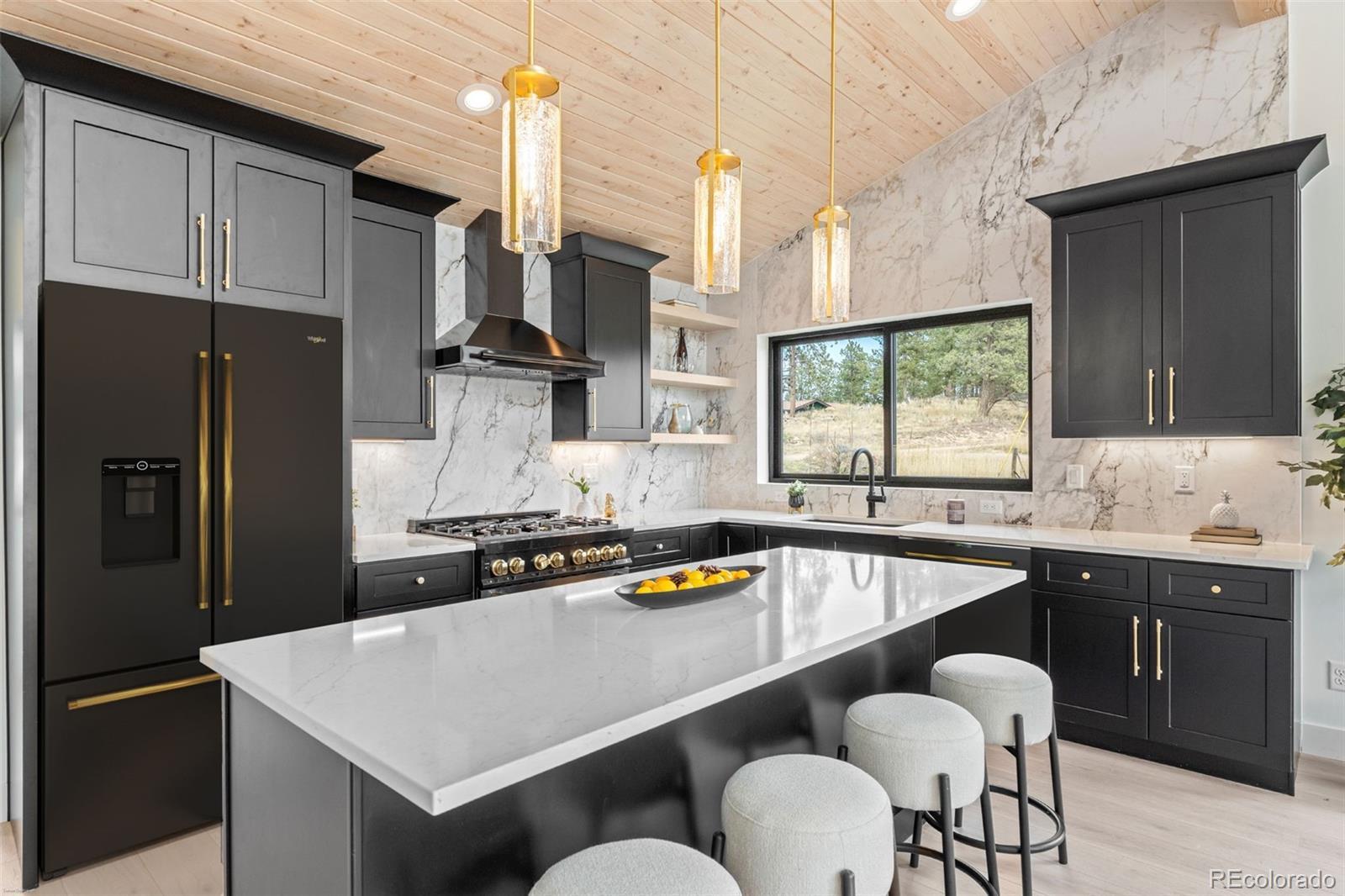 Luxury meets livability in this modern mountain retreat — where every detail has been thoughtfully considered and no stone left unturned. The builder spared no expense on high-end upgrades: standing seam metal roof for timeless durability, air conditioning (a true luxury in the mountains), and premium multi-slide doors that open the entire living space to cinematic mountain views. Every element was designed for enduring beauty, comfort, and connection to the outdoors. Built from the ground up by Majestic Mountain Homes, a name synonymous with excellence in the Foothills, this custom-built haven on one gentle acre captures the essence of mountain modern living. Anderson® 100 black-on-black fibrex windows frame the lovely views and bathe the interiors in natural light, while 20+ foot ceilings create an expansive, airy atmosphere. White oak flooring sets a tone of understated elegance. As you ascend to the main floor, a striking floor-to-ceiling fireplace commands attention. The primary suite is a tranquil retreat, complete with an en-suite bathroom, walk-in closet, and slat wood wall with an acoustic membrane for sound serenity. The chef’s kitchen is a showstopper with quartz counters, 7-foot island, and black stainless designer Z-line® appliances that strike the perfect balance of function and form. T&G ceiling and exposed beams echo the home’s natural setting. A spiral staircase w/ cable railing leads to a versatile loft overlooking inspiring views; perfect for a home office or creative space. A bonus room nearby offers additional flexibility as playroom or storage. Ideally located just 5 minutes off Highway 285, 22 minutes to Conifer King Soopers, 54 minutes to Downtown Denver, and 1 hour 20 minutes to DIA. The property is eligible for State Farm homeowner’s insurance. Your mountain modern masterpiece awaits at 542 Conifer Drive — where craftsmanship, comfort, and Colorado beauty converge.