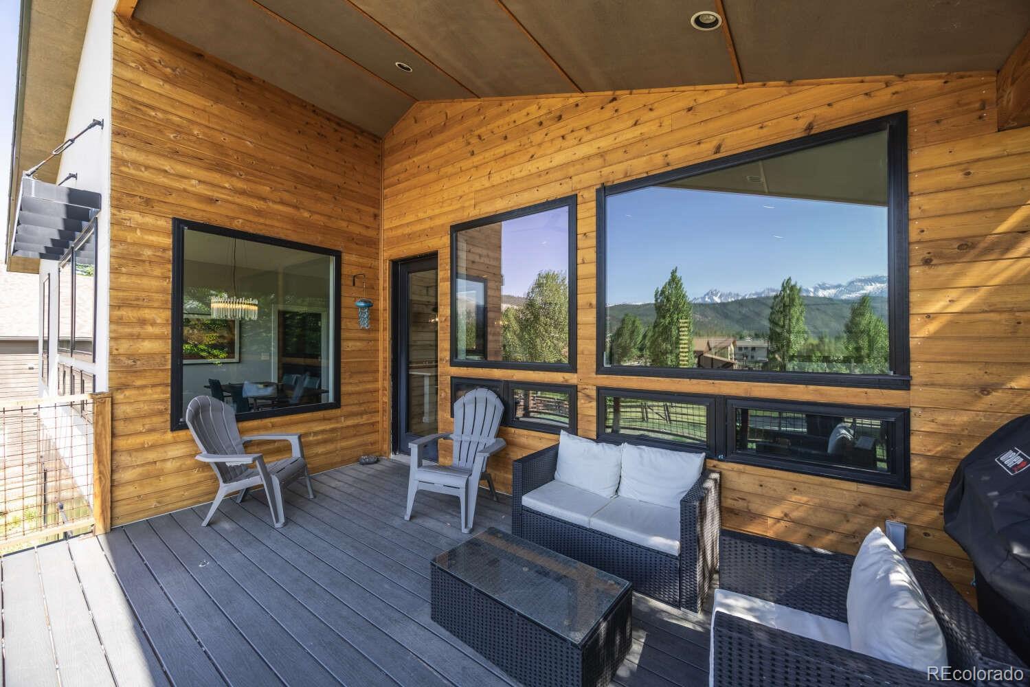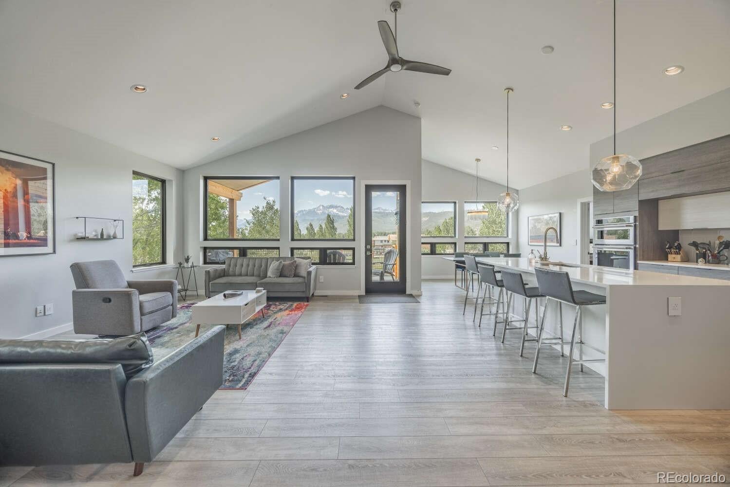 This custom-built home in Ridgway, Colorado offers expansive mountain views, thoughtful design, and a flexible layout ideal for both personal use and income potential. Located within walking distance to downtown Ridgway’s restaurants, shops, and parks, the home is perfectly positioned between Ouray and Telluride, making it a year-round base for mountain adventure. Inside, you’ll find vaulted ceilings, passive solar design, and natural materials that bring warmth and comfort. Oversized windows and a large deck frame views of the Sneffels Range, while the open-concept living area connects seamlessly to a chef-style kitchen with a full wall of built-in refrigeration, quartz countertops, and modern finishes. A spacious mudroom with five built-in lockers adds functional beauty for outdoor lovers or large families. The primary suite features a luxurious soaking tub and mountain views, while a second en suite bedroom upstairs can serve as an additional primary suite or guest retreat. Downstairs, a bonus living room and game room offers flexible space for entertaining, relaxing, or hosting. What sets this home apart is the lower-level studio apartment with a private entrance, full kitchen, and two beds. It is already earning 5-star reviews on Airbnb and is perfect for hosting guests, generating income, or offsetting your mortgage. It's a turnkey setup for short-term rental success. The home stays cozy in the winter with passive heat and remains naturally cool in the summer thanks to thoughtful architectural design. With a large two-car garage, ample storage, and a track record of guest satisfaction, this home is both a stunning retreat and a smart investment.