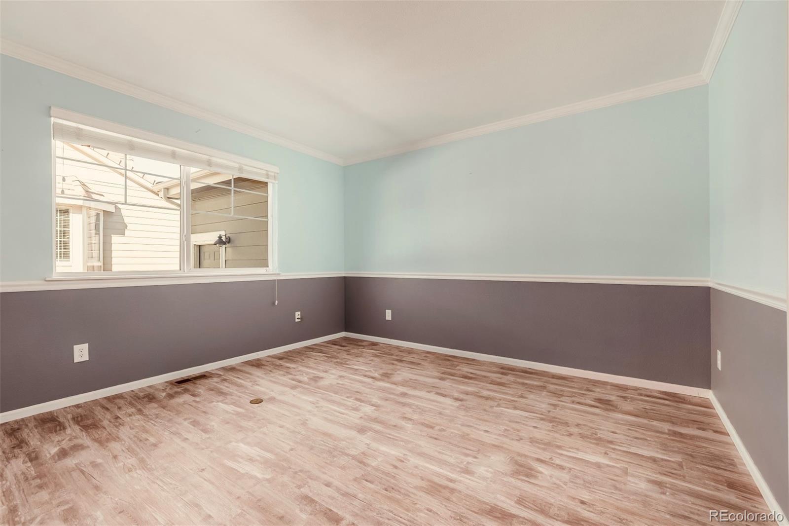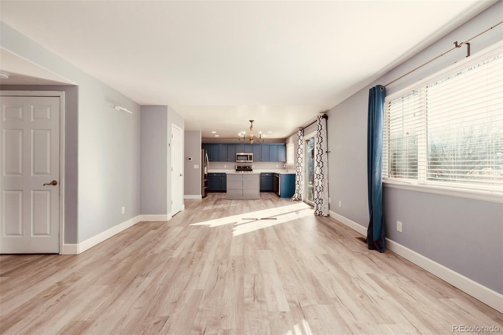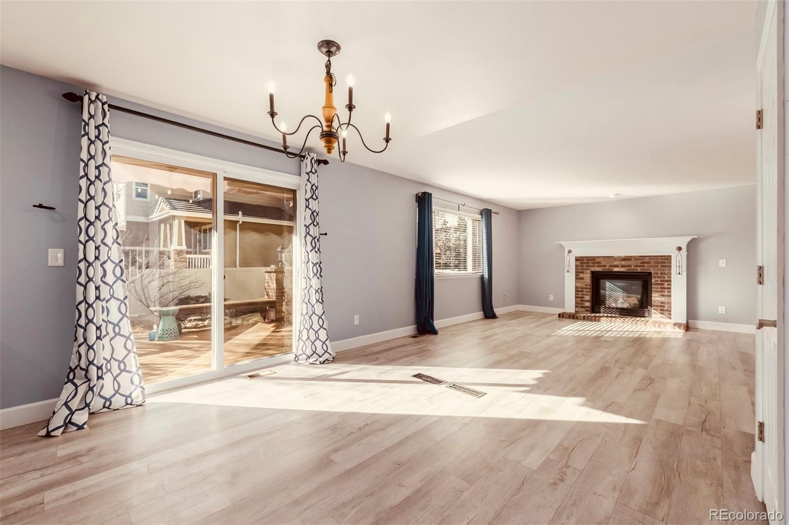 Best family home opportunity in Parker (Maybe in all of Colorado!) This fantastic 7 bed, 4 bath residence located in the highly sought after Anthology neighborhood sits on a premium corner lot & features tasteful brick veneer accents, a large front yard w/natural turf, 3 garage spaces, and a welcoming front porch. Come inside to discover a sizable dining & living area w/soaring ceilings, perfect for entertaining. Updated Wood-look flooring and custom palette throughout! Continue into the cozy family room, boasting a gas fireplace to keep you warm during the cold winter months. The fabulous kitchen comes equipped w/everything you'll need for preparing your favorite meals, painted shaker cabinetry w/crown moulding, recessed lighting, quartz counters, stainless steel appliances, and a prep island. End your busy day in the grand primary suite, showcasing a full ensuite w/dual sinks and a walk-in closet for all your belongings. Don't forget about the HUGE basement bonus room, ideal for an entertainment center! Also including a large backyard w/a lovely deck, this home simply has it all! Act now before it's gone!