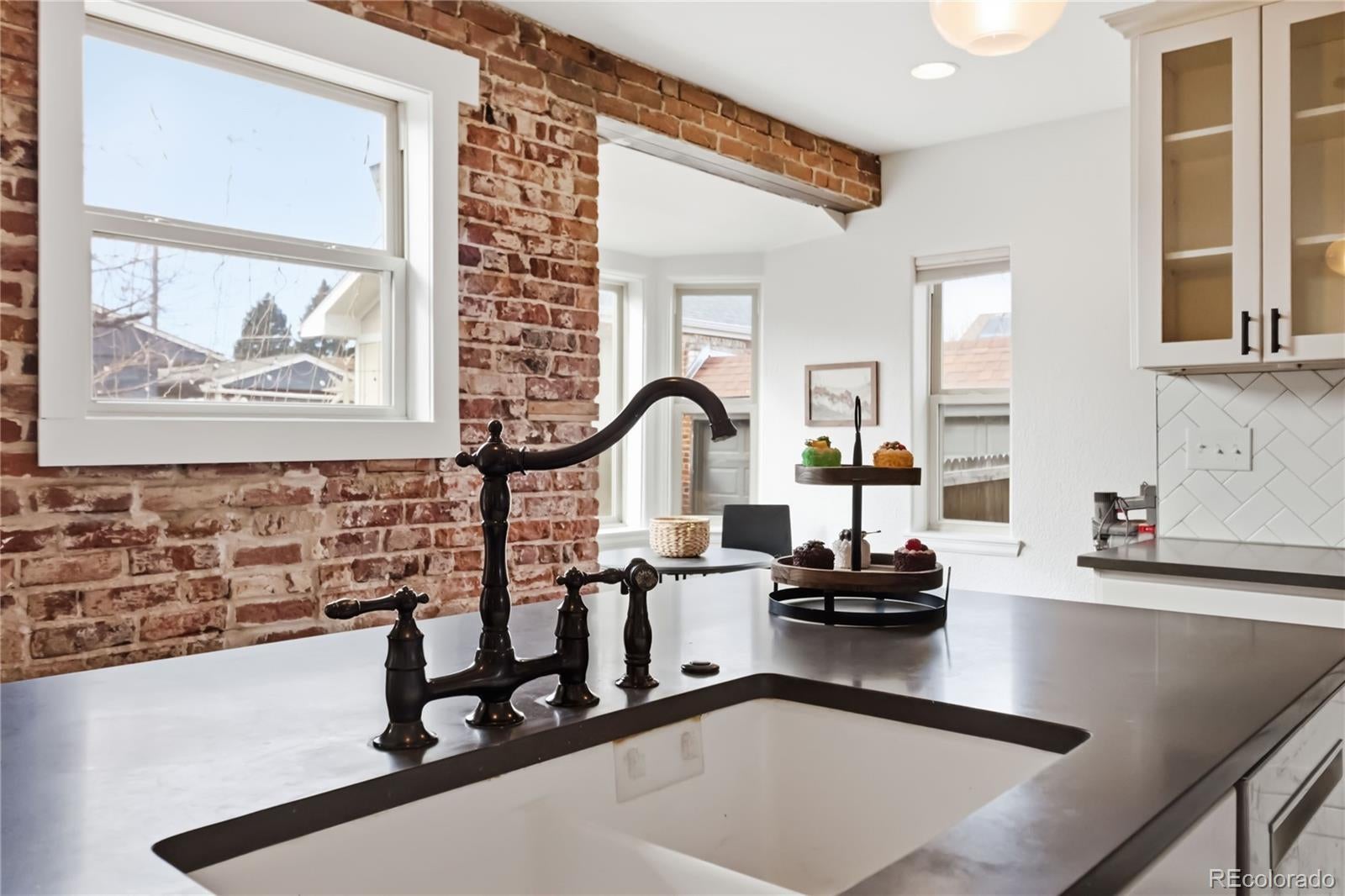Classic Park Hill Tudor with the character intact and the updates already done. Arched doorways, crown molding, and hardwood floors set the tone on the main level, while a fully remodeled kitchen brings it into the present — white shaker cabinets, quartz counters, herringbone tile backsplash, stainless appliances, center island, and an exposed brick accent wall that earns every compliment. The adjacent dining room opens to the patio through a sliding glass door, and the living room anchors the front of the home with a gas fireplace. Two main floor bedrooms share a remodeled hall bath with double sinks; one bedroom includes a murphy bed, making it an instant guest room and office in one. The fully finished basement adds a generous 1,241 sq ft of living space. A large family room centered on a wood-burning fireplace gives the lower level its own identity, and the bonus room works equally well as a gym, workshop, or dedicated storage. Two additional non-conforming bedrooms, a remodeled ¾ bath, and laundry with washer and dryer included round it out. Outside, a private fenced yard with deck, patio, and hot tub creates a genuine outdoor living space from day one — and the detached 2-car garage keeps everything organized. Central air conditioning and forced air heat keep the home comfortable in every season. All appliances are included — refrigerator, dishwasher, oven, washer, and dryer — so there's nothing to figure out. The location puts City Park, the Denver Zoo, the Museum of Nature & Science, the City Park Golf Course, and summer evenings at City Park Jazz all within biking distance. Colfax Avenue dining is nearby, and downtown Denver is about ten minutes by car. For buyers who want this much house in this neighborhood, this home is worth a close look. Schedule your showing today!