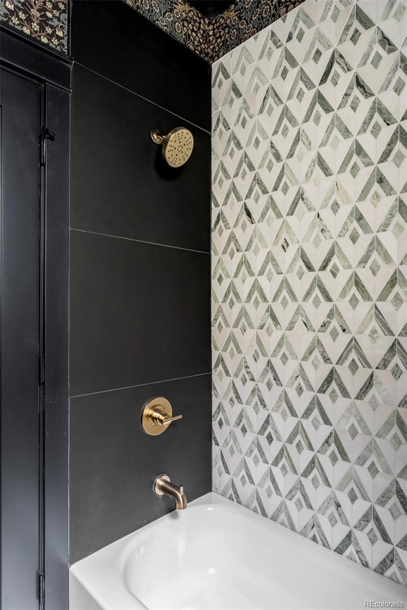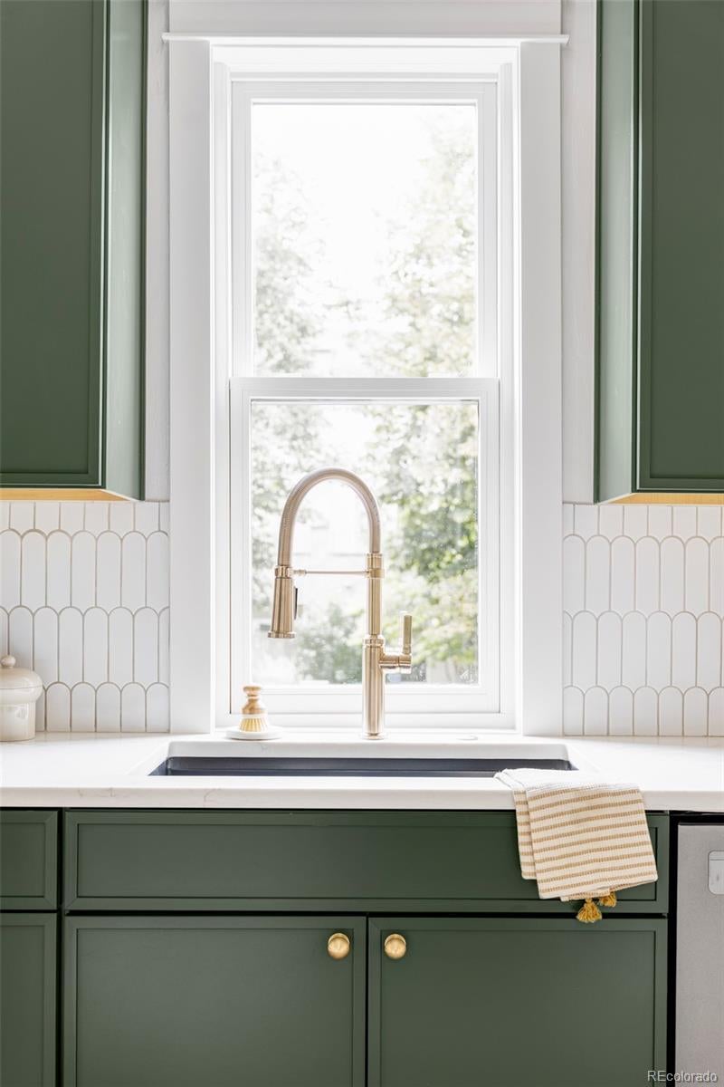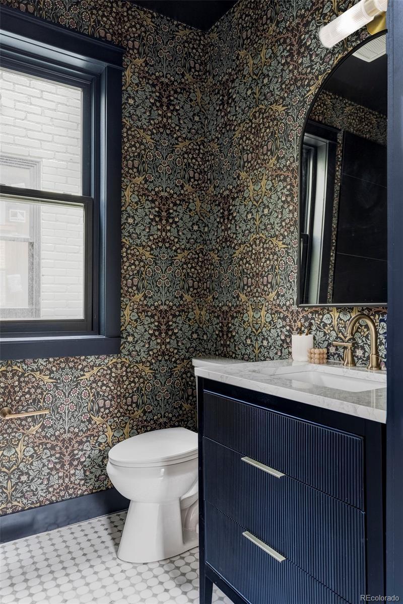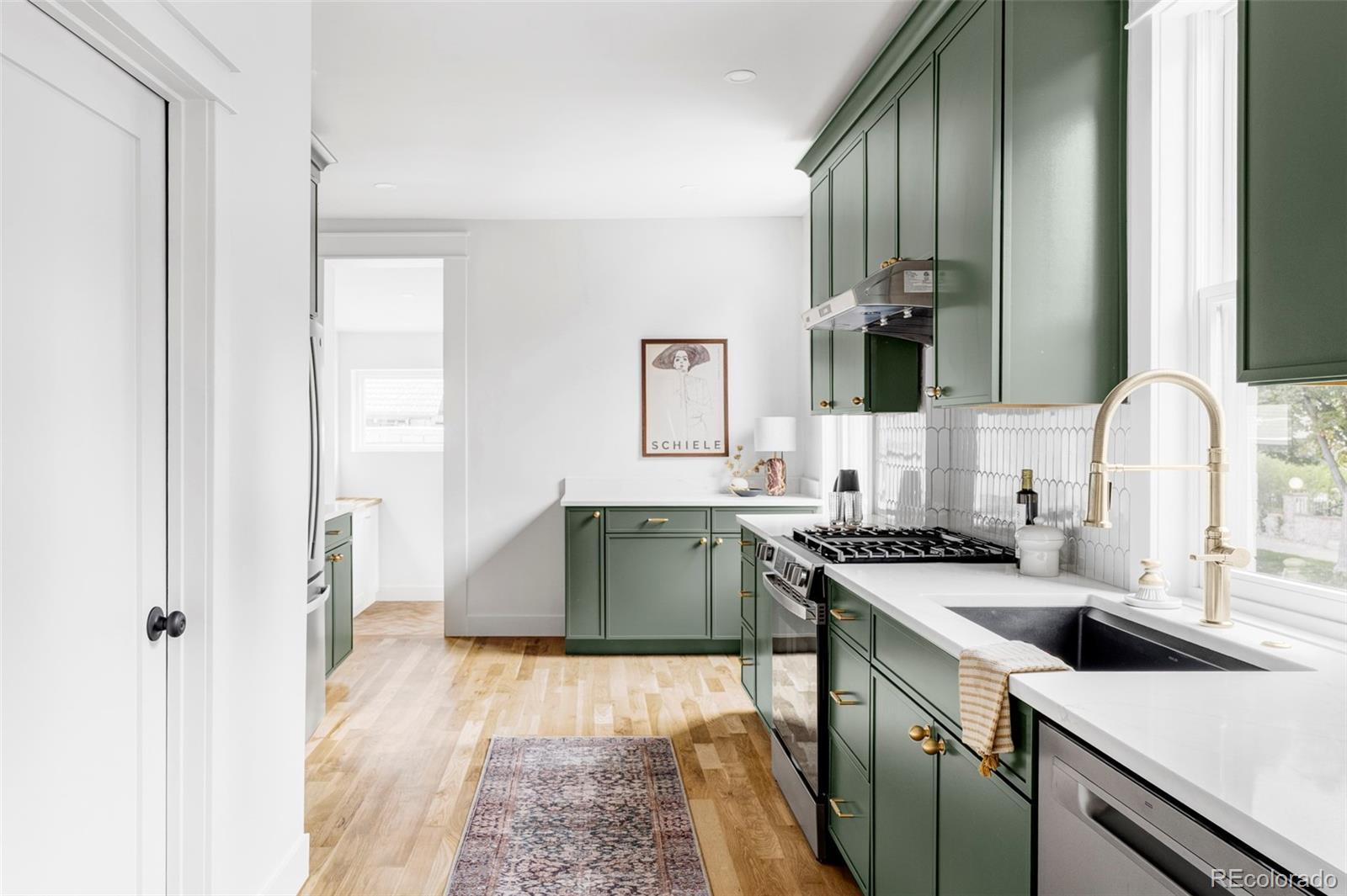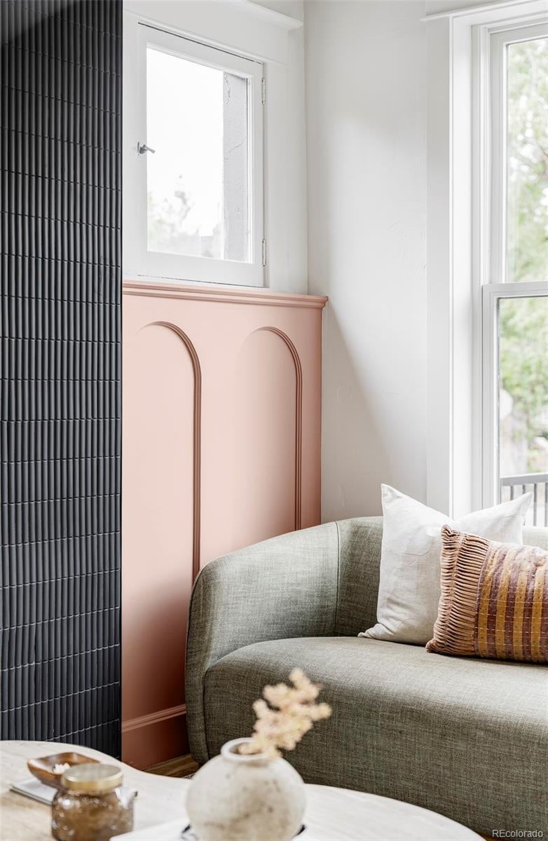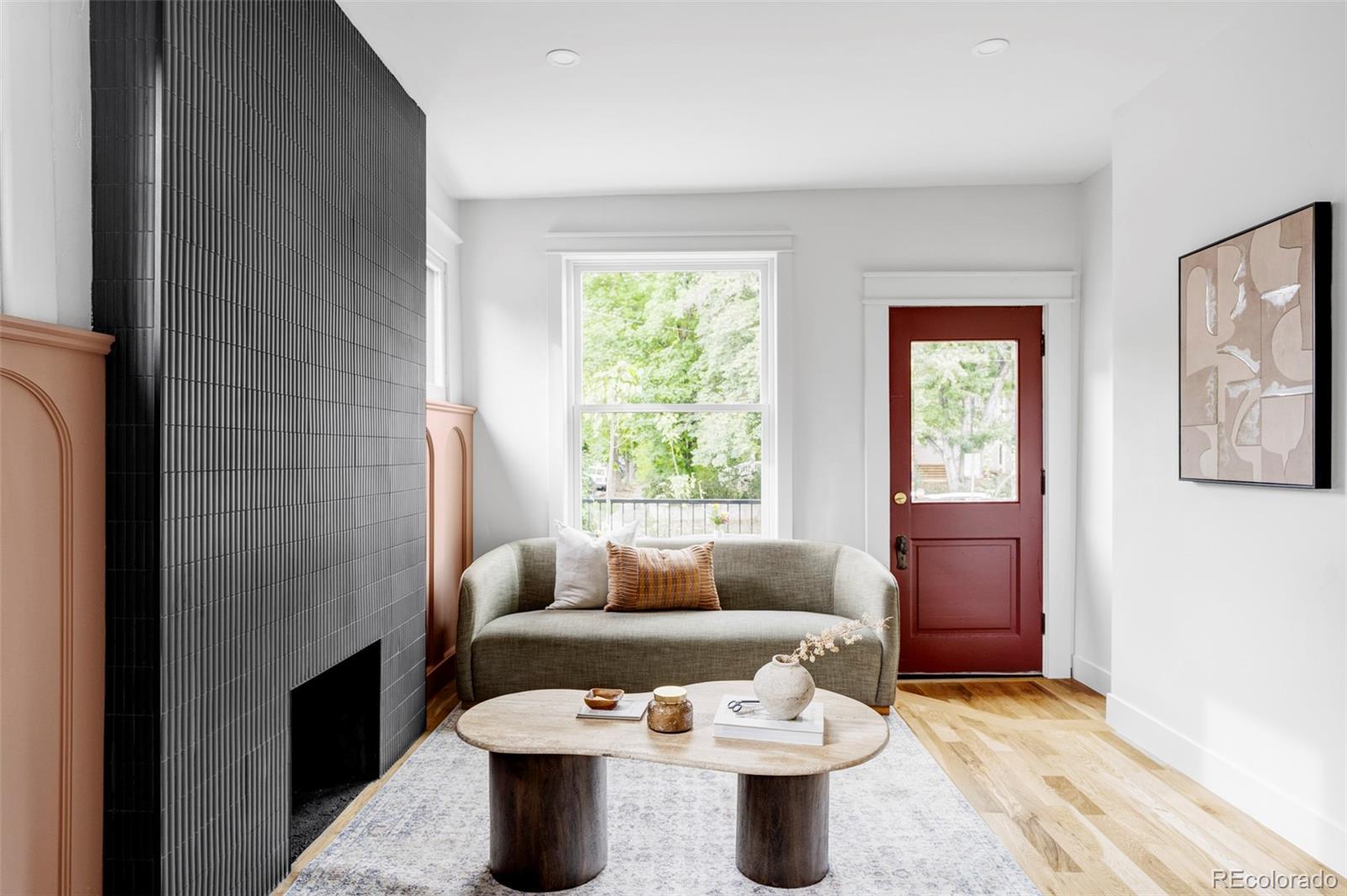 Truly Masterful Alamo Placita Renovation by Garden City Design Build. After years of neglect this charming all brick beauty finally received the love it deserved and has had a complete Top/Bottom - Inside/Out fully permitted renovation and is ready for someone to call it HOME! Perched on a little hill, 1002 is the larger half of this duplex being offered with 3 beds and 2 baths. The eco-friendly landscaping, front steps and inviting porch welcomes you in. Take it slow and notice all the details! You’ll notice straight away the historic leaded glass front windows set into energy efficient new windows and the restored Solid wood front door then step into the light filled living room streaming through the new high end Andersen E-series windows. The arched wall trim molding will stun and floor to ceiling tile grounds the space. New solid wood floors throughout the main level and into the 2 main floor bedrooms. Beautiful main floor full bath with gorgeous wall paper. The kitchen is not only beautiful with its green slim shaker cabinet and quartz countertops but functional with thoughtful cabinet design. The cute and practical mudroom leads down a few stairs to the back door or down to the bright garden level featuring a cozy family room/den and the Primary Bedroom with a walk-in closet and en-suite bathroom with a large walk-in shower enclosure and double vanity. Beauty is not just skin deep here like so many other houses! Everything you can’t see has also been done including a new foundation and exterior brick work. All the plumbing has been replaced including the main water supply line and sewer line as well as a new high efficiency water heater. All electrical wiring is new including the service panel. HVAC ducts have been replaced and high efficiency furnace and central AC installed. Newer Roof and brick 2 car Garage accessible from Ogden and not a tiny Denver alley. Perfect walkable location 2 blocks to 6th ave shops, restaurants and across the street from the park!