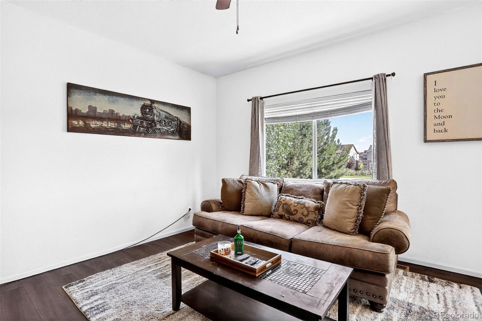*****INCREDIBLE PRICE!!!! Bring your Buyers to see this fabulous home. Step into this beautifully maintained 3-bedroom, 3-bathroom home located in the desirable Murphy Creek community. From the moment you enter, you'll be captivated by its charm and character, making it easy to envision as your future home. The main level features soaring ceilings with new and well-kept laminate wood floors, complemented by fresh paint, and ceiling fans. The large kitchen with granite counters, custom backsplash, pantry and quality appliances opens to the inviting living room, where a cozy gas fireplace provides an intimate setting. Large windows bathe the home in natural light, enhancing its welcoming vibe. Upstairs, the primary suite includes a spacious walk-in closet and private bath with a luxurious soaking tub. Two additional bedrooms, a full bath, and the convenient laundry room complete the upper level. Downstairs, you’ll find a spacious basement ready for your customized personal touch. Outside, the backyard is designed for easy maintenance and features a patio area, mature landscaping, gardening and close access to a walking path. This home is ideally situated near parks, the renowned Murphy Creek Golf Course, community amenities, highly rated schools, shopping, and dining, with quick access to major highways and Buckley Space Force Base. This property is a must-see!