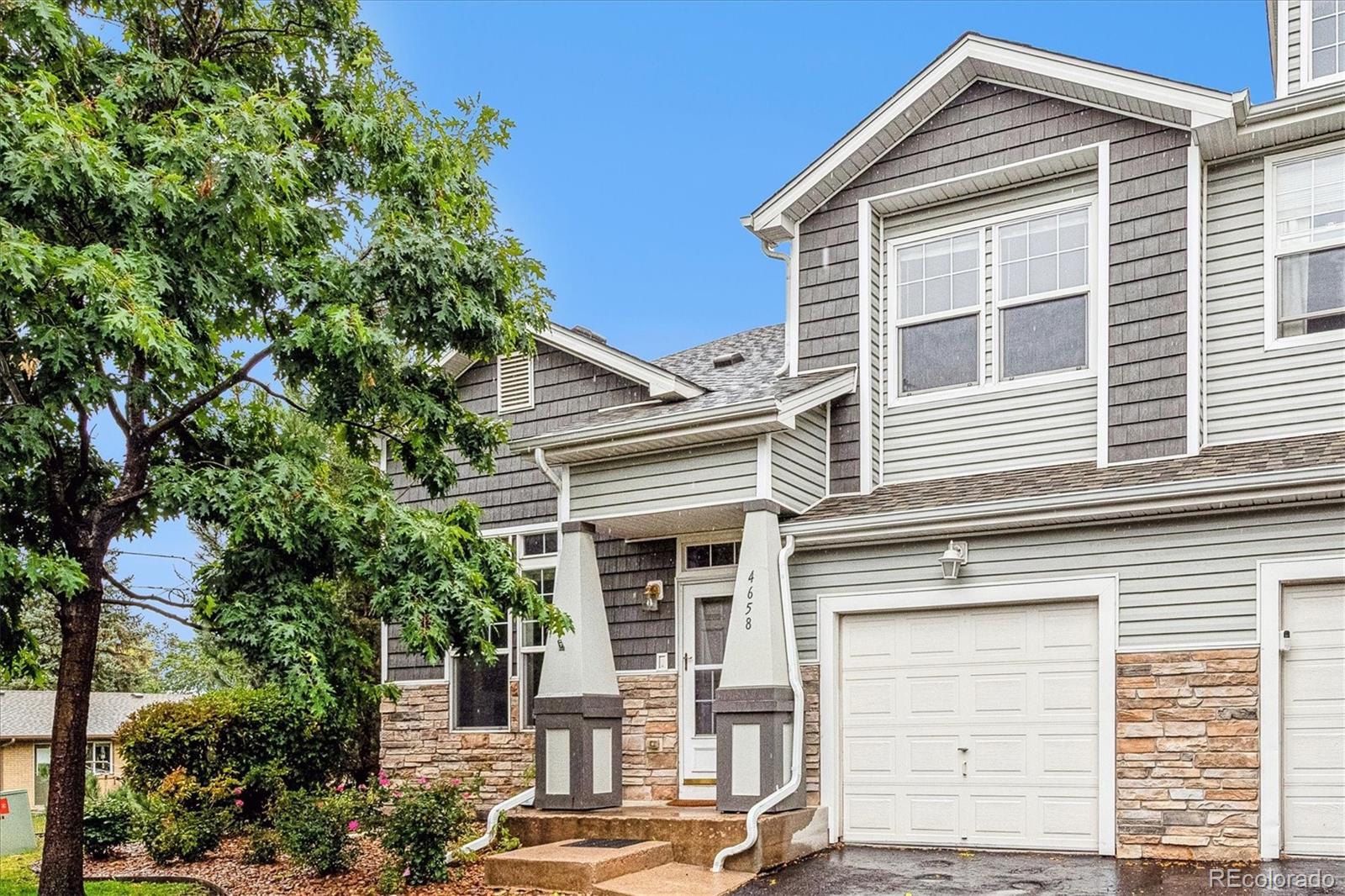 Fantastic opportunity for your buyer on this updated 2-bedroom, 2-bath, end-unit townhome located in the desirable Garrison Village community. Offering the perfect blend of comfort, style, and convenience, this home is move-in ready and features an attached 1- car garage and is ideally situated on a private cul-de-sac near guest parking and a charming community park/playground. Inside, you’ll find a light-filled, open floor plan with soaring vaulted ceilings and abundant of natural light. The spacious living room features a cozy gas fireplace with blower, ceiling fan, and vaulted ceiling that enhances the open feel. The kitchen is thoughtfully designed with 42” cabinets, a pantry, breakfast bar, and brand-new stainless steel appliances – including refrigerator, stove, microwave, and dishwasher. An adjacent dining area makes entertaining or everyday meals easy and enjoyable. Just off the dining area, enjoy your private covered patio, complete with a small fenced area for added privacy and a locking storage closet. Upstairs, the spacious primary suite boasts vaulted ceilings, a ceiling fan, and a large walk-in closet. The upper level also includes a generous second bedroom with ceiling fan, a full bath, and a laundry room with washer and dryer included. Conveniently located minutes from Olde Town Arvada, the Garrison Light Rail Station, and I-70—providing easy access to shopping, dining, and entertainment throughout the Denver metro area.
