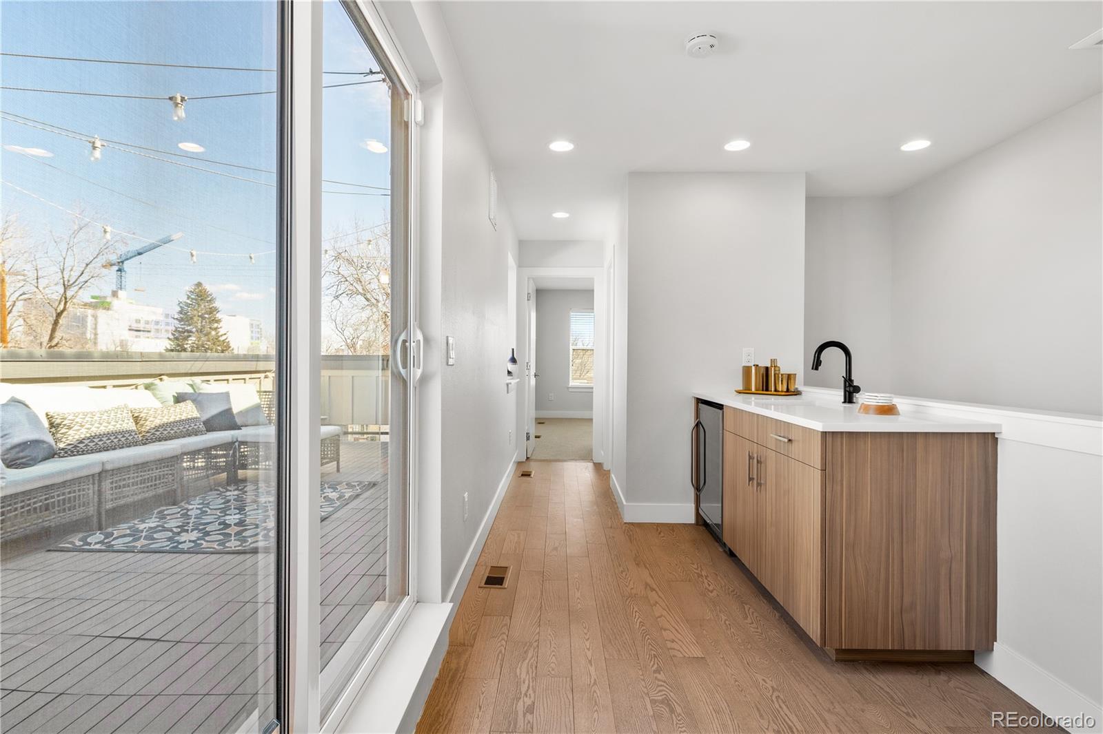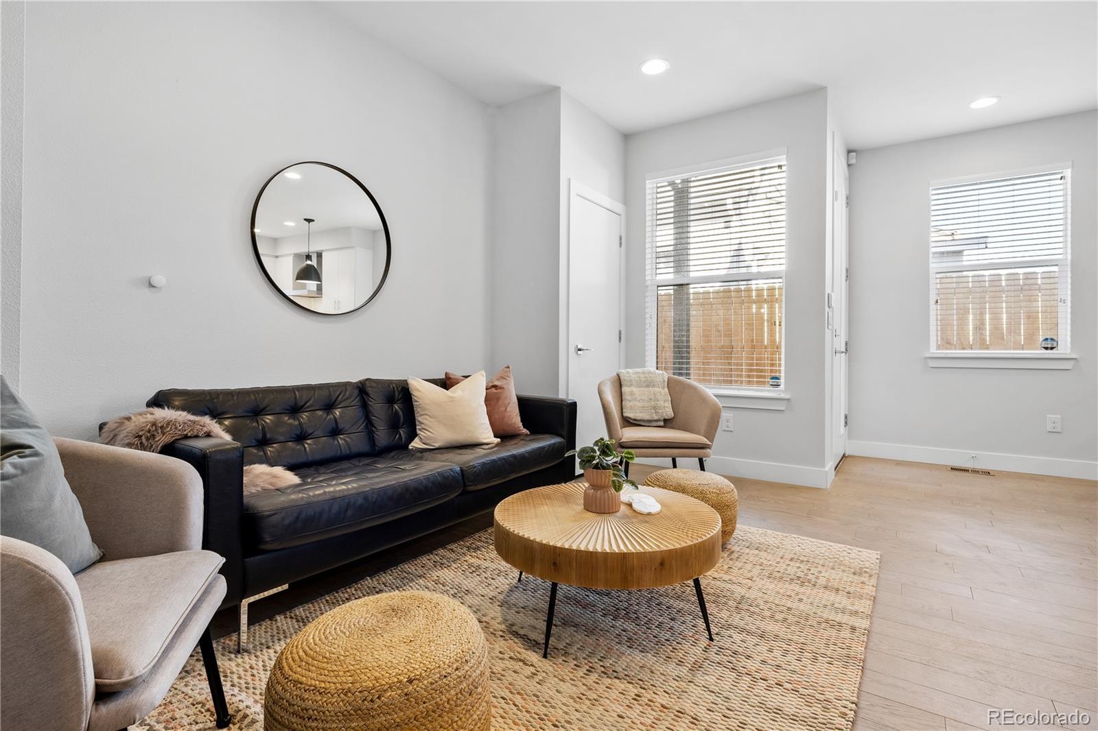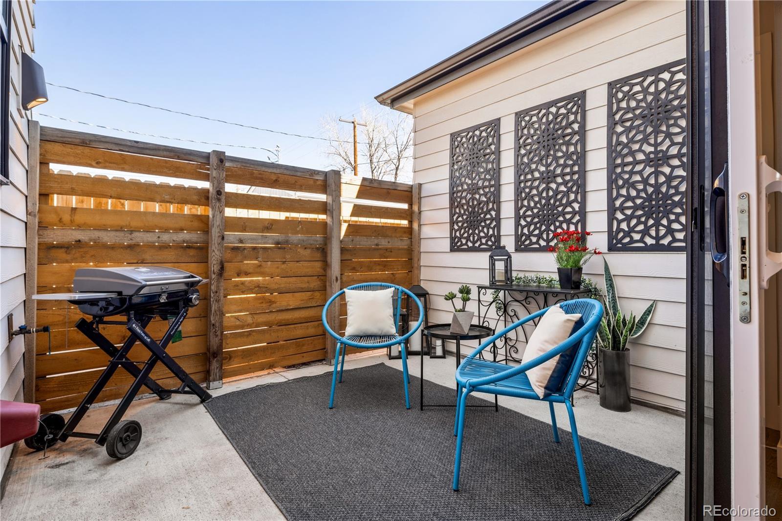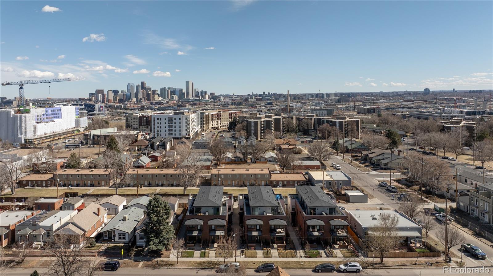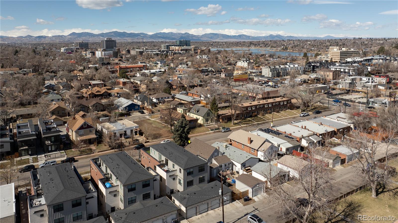 Modern brick townhome, with lovely top level deck, attached garage and mountain views. Located just minutes from downtown Denver, Sloan's Lake, West Highland and Lower Highland (LoHi). Rare top floor finished square footage opens to a rooftop deck adorned with charming tea lights. Sleek eat-in kitchen equipped with Kitchen Aid architect series appliances, abundant quartz counter space and soft-close cabinetry. Designer lighting illuminates the dining area, which effortlessly flows into the private fenced courtyard. Your summer of alfresco dining & entertaining awaits. The primary suite boasts a walk-in closet and spa-like bath, complete with ambient lighting, floating cabinets, sleek fixtures, and double sinks. A sun-filled secondary bedroom offers east-facing windows and an adjacent full bath. The airy top level is perfect for guests, with its third bedroom, full bath and versatile loft area that is perfect size for home office, complete with wet bar and wine fridge. Enjoy lovely year round mountain views and celebratory fireworks over Broncos Stadium. Only 1.5 blocks to RTD light rail and Paco Sanchez Interactive Park. The Lakewood Dry Gulch trail is a local favorite for disc golf, community gardens, playgrounds and biking. Easy access to I-70, 6th Ave/Belmar and I-25. Experience the freedom of no HOA, with both Party Wall and Exterior Maintenance agreements in place.
