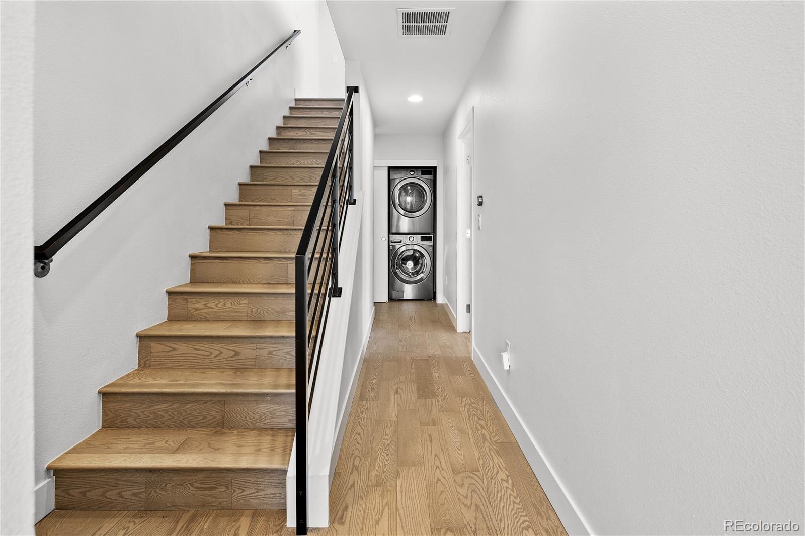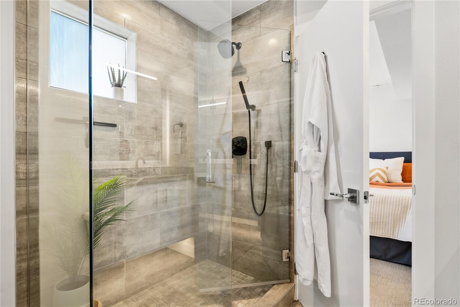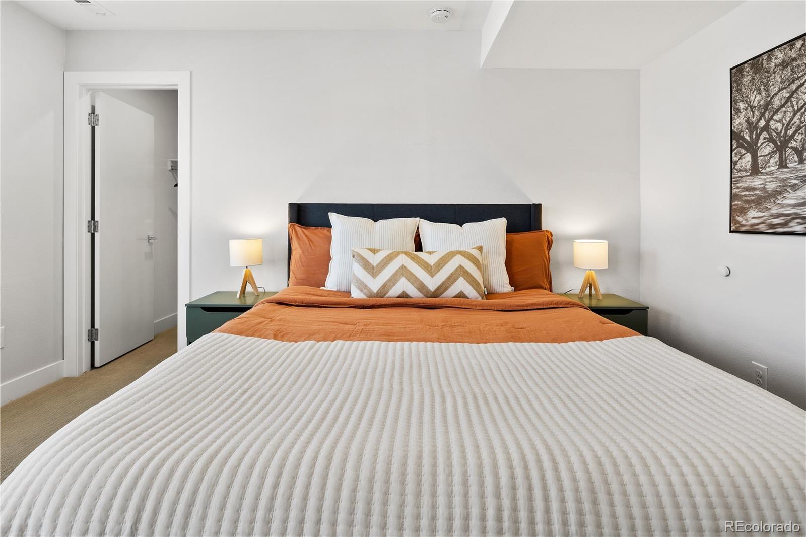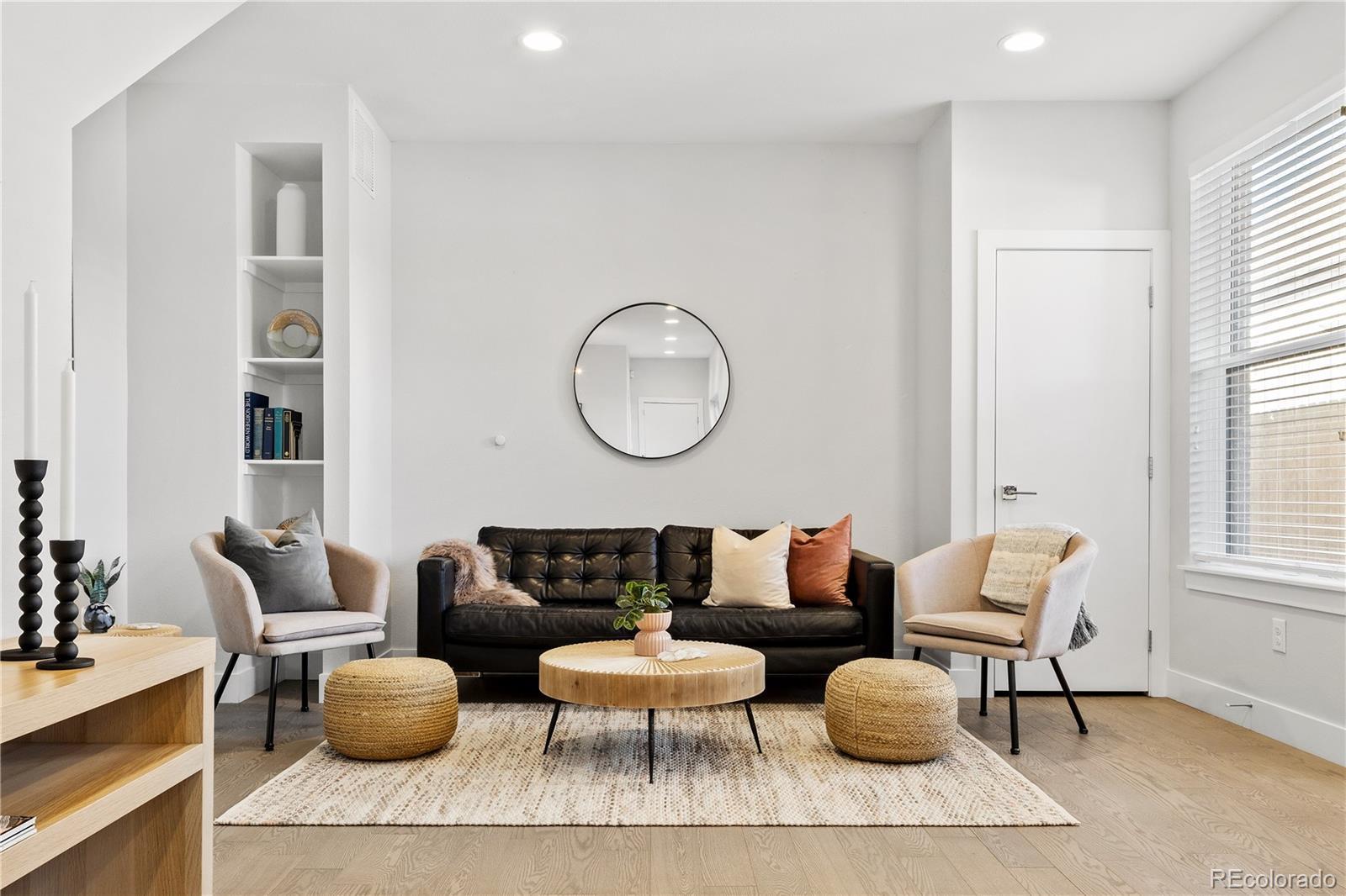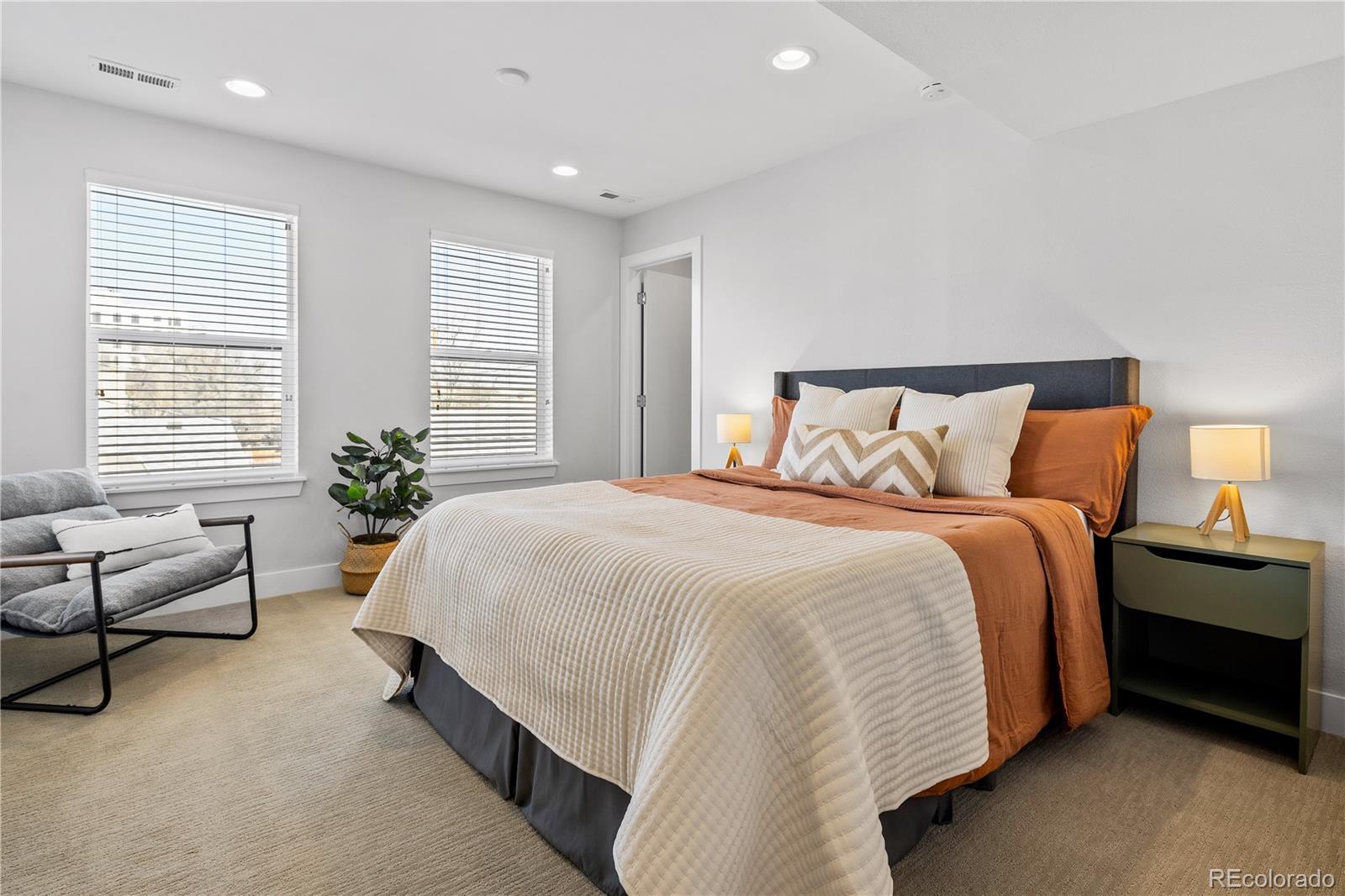 Modern brick townhome, with lovely top level deck, attached garage and mountain views. Located just minutes from downtown Denver, Sloan's Lake, West Highland and Lower Highland (LoHi). Rare top floor finished square footage opens to a rooftop deck adorned with charming tea lights. Sleek eat-in kitchen equipped with Kitchen Aid architect series appliances, abundant quartz counter space and soft-close cabinetry. Designer lighting illuminates the dining area, which effortlessly flows into the private fenced courtyard. Your summer of alfresco dining & entertaining awaits. The primary suite boasts a walk-in closet and spa-like bath, complete with ambient lighting, floating cabinets, sleek fixtures, and double sinks. A sun-filled secondary bedroom offers east-facing windows and an adjacent full bath. The airy top level is perfect for guests, with its third bedroom, full bath and versatile loft area that is perfect size for home office, complete with wet bar and wine fridge. Enjoy lovely year round mountain views and celebratory fireworks over Broncos Stadium. Only 1.5 blocks to RTD light rail and Paco Sanchez Interactive Park. The Lakewood Dry Gulch trail is a local favorite for disc golf, community gardens, playgrounds and biking. Easy access to I-70, 6th Ave/Belmar and I-25. Experience the freedom of no HOA, with both Party Wall and Exterior Maintenance agreements in place.