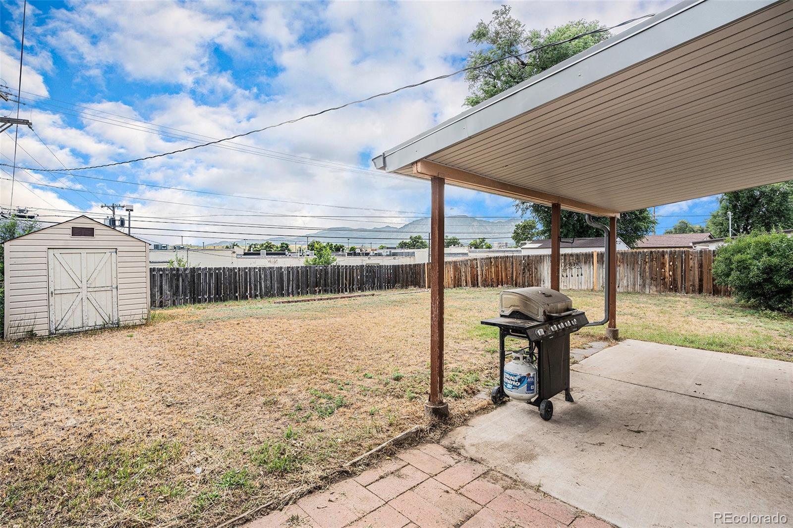 This inviting ranch-style home offers the perfect blend of comfort, style, and convenience. Located in a quiet neighborhood, this 3-bedroom, 1-bathroom home is ideal for anyone looking for a cozy retreat with easy access to all that Colorado Springs has to offer. This offering a large .18-acre lot, fenced rear yard, and tremendous mountain and Pikes Peak views! This home has hardwood floors in the bedrooms, a kitchen with space for a dining table, and large utility/mud room off kitchen with built-in cabinetry. The living room has carpet and large windows to provide natural light. The bathroom is a full size bath with a tub. The backyard is a huge pet-friendly yard with a covered patio, rear storage shed, and sunset views over the Front Range. Additional home features include an attached garage, new roof over the patio, newly installed AC, solar panels, plumbing in the crawlspace has been redone, electrical panel replaced and the home has a security system installed by Vivant. Don’t miss this gem! The large backyard is perfect for outdoor activities, gardening, or simply unwinding in the fresh Colorado air. The home also boasts a single-car garage and additional parking space for your convenience.