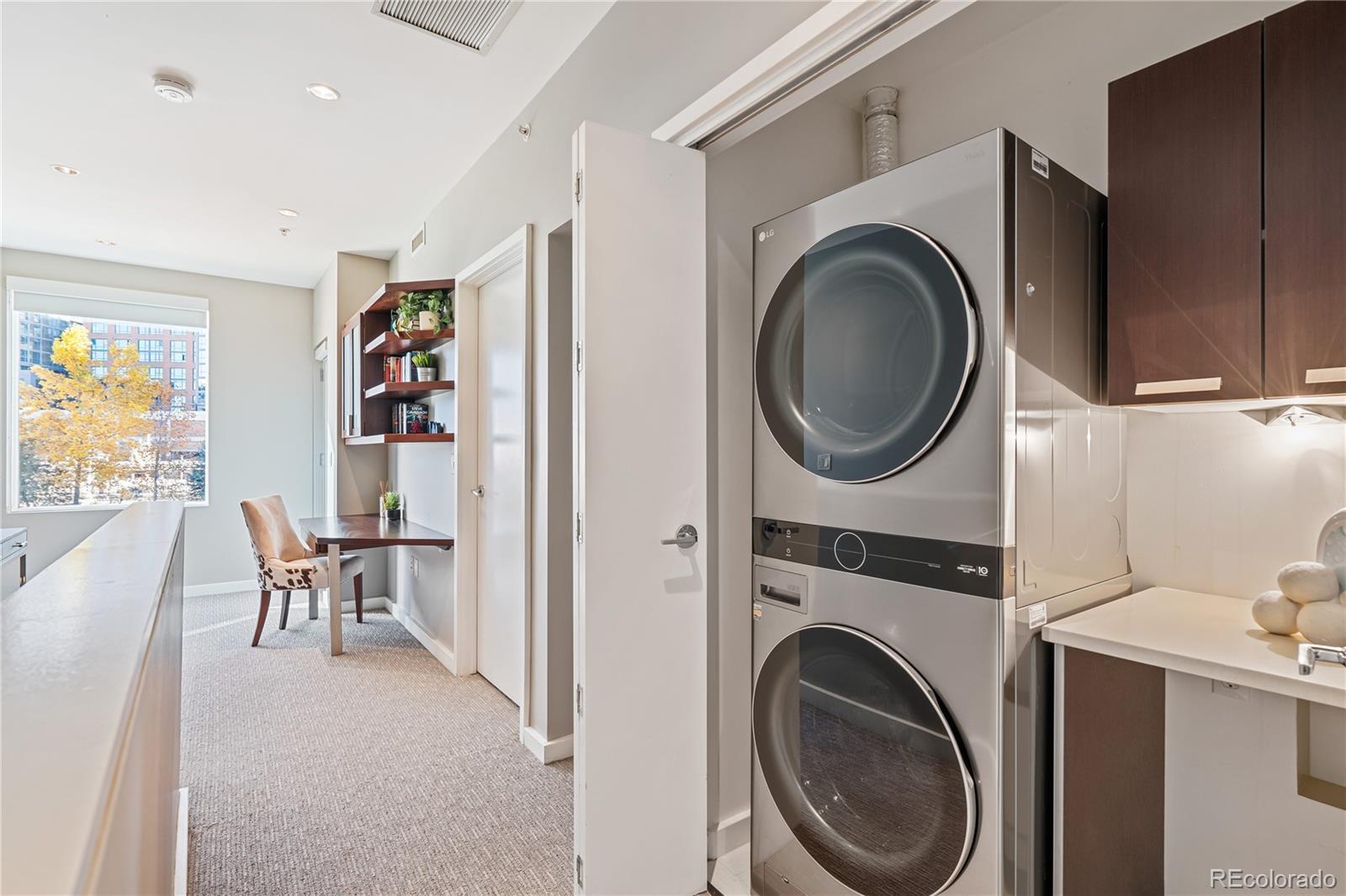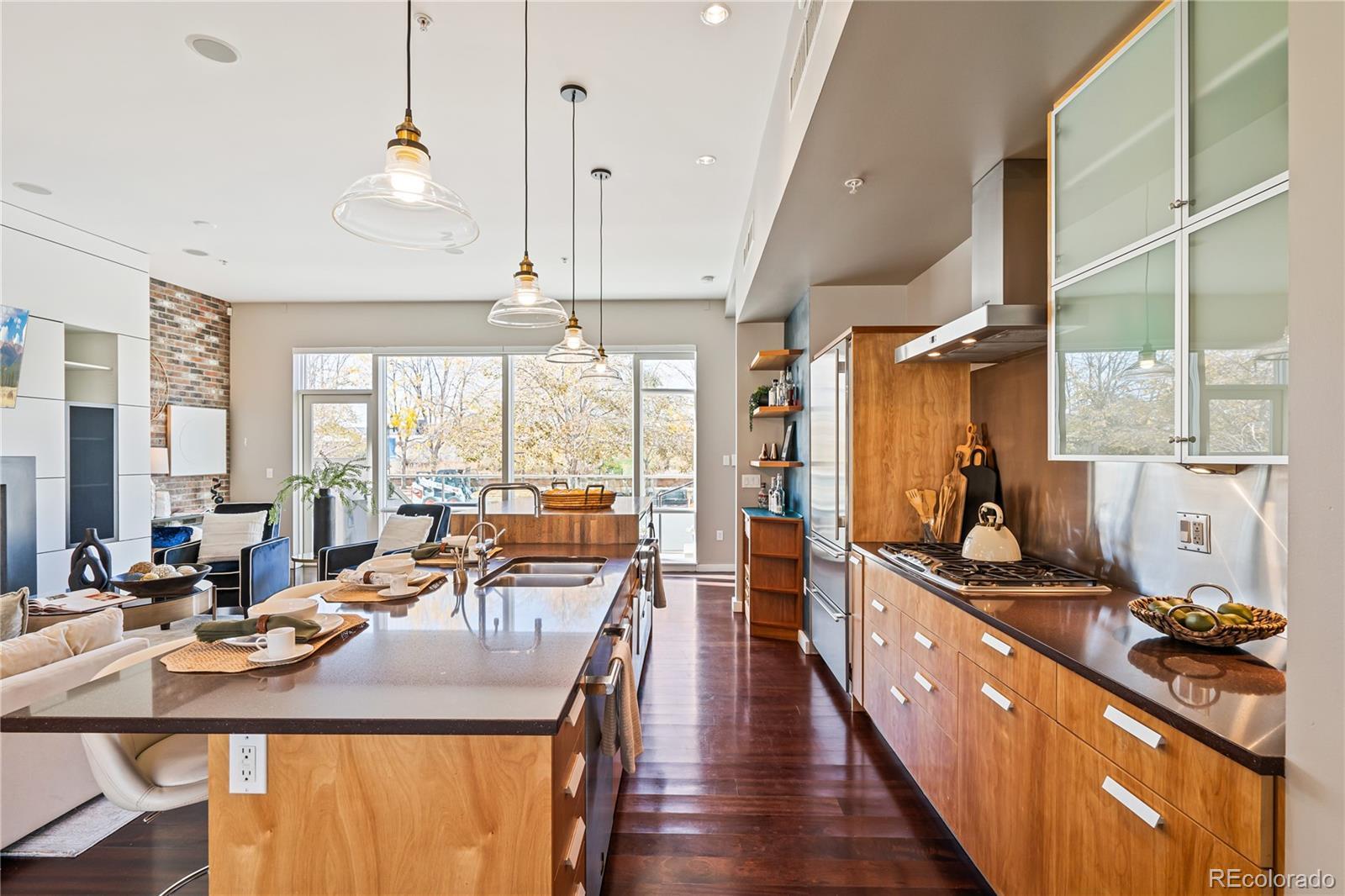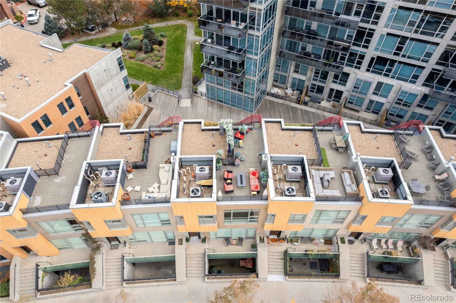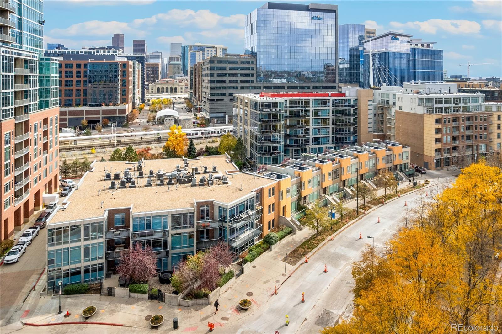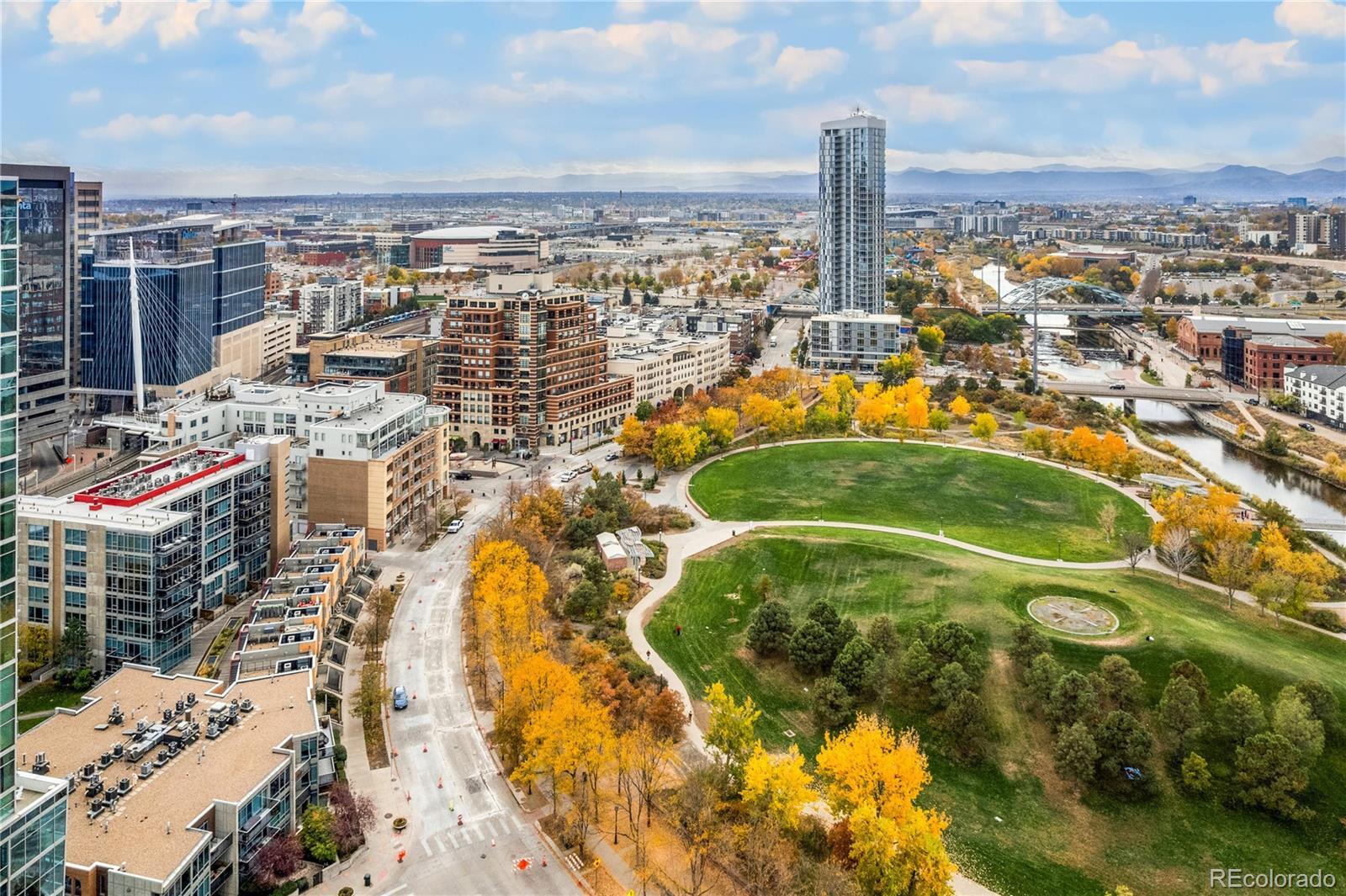 Experience premier downtown living in Riverfront Park’s most sought-after residences! This stunning townhome, situated directly across from Commons Park, features an open, airy floor plan with soaring ceilings, built-in audio, and motorized window treatments—every detail designed for modern luxury. With 2 bedrooms plus a versatile flex room featuring custom cabinetry, you can easily create a 3rd bedroom, home office, or media space. The chef’s kitchen is equipped with SubZero, Thermador, and Bosch stainless steel appliances, rich cherry cabinetry, and Caesarstone countertops—perfect for culinary creativity and entertaining. Upstairs, the owner’s suite offers a spacious 4-piece bath and an expansive walk-in closet with custom built-ins. A guest suite, laundry area, and cozy office nook complete the upper level. Outdoor living is elevated with four distinct spaces, including a private rooftop deck offering breathtaking city, park, and mountain views. Relax by the firepit or tend to the custom planter beds—an urban oasis unlike any other. Two garage spaces are conveniently located at the lower level entry, complemented by two oversized private storage closets—a rare perk in downtown living. Just steps from LoDo and LoHi’s finest dining, shopping, and cultural experiences. Come see this property today!