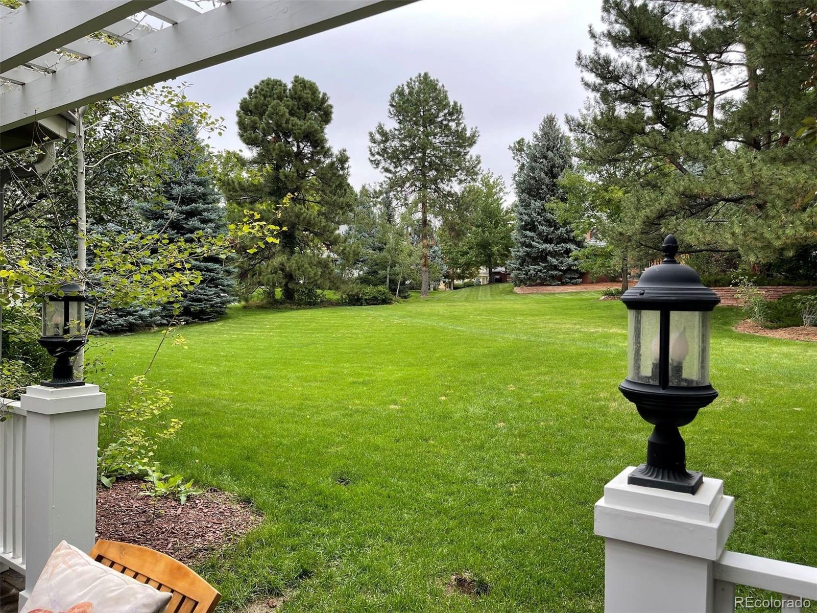 As you arrive, this elegant Green Oaks residence immediately feels set apart—gracefully set back from the street on a rare pentagon-shaped lot offering exceptional privacy, calm, & quiet luxury. A beautifully updated front entry welcomes you inside, where timeless design & warmth unfold effortlessly. The foyer opens to refined living & dining spaces accented by charming molding & rich hardwood floors that extend throughout the entire main level & much of the second floor, creating an inviting setting for both intimate gatherings & larger celebrations. The flowing floor plan leads to a light-filled family room & adjoining sunroom, offering flexible living & seamless indoor-outdoor connection. French doors open to a serene patio & enhanced outdoor entertaining space, while the expansive yard provides an ideal setting for play, recreation, & relaxation. The remodeled kitchen is both stylish & functional, featuring thick marble countertops in soft white & gray tones, a KitchenAid double oven, gas range cooktop, & a custom banquette that blends charm with everyday comfort. A main-level bedroom with an updated en-suite bath offers flexibility for guests or multigenerational living. Upstairs, four generously sized bedrooms & two updated baths include a tranquil primary suite with a spa-like en-suite & stand-alone tub. The rare convenience of bedroom-level laundry is complemented by additional laundry areas on every floor. The finished basement adds valuable living space with a recreation or media room, updated cork flooring, & ample storage. Recent improvements include a new tile roof, updated bathrooms, exterior l& scaping enhancements, updated garage door, & refined exterior details. Located in coveted Green Oaks, this home offers tree-lined streets, a community pool & tennis courts, the High Line Canal Trail, Aspen Academy, equestrian parks, & Cherry Hills Marketplace—timeless Greenwood Village living at its most private & desirable.