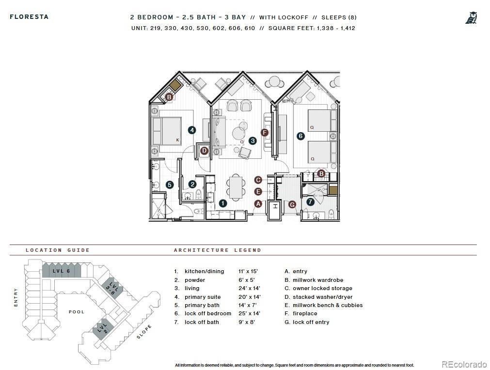 Perched on the top floor, Beckwith Residence 602 is a premier residence within The Beckwith’s exclusive ski-in, ski-out collection of 49 to-be-built residences. With an exterior northeast-facing orientation, this 1,412-square-foot Floresta floor plan captures a wide panorama of sky, trail, and alpine beauty. This thoughtfully designed residence features two bedrooms, including a spacious primary suite, a private lockoff, and an open-concept kitchen, living, and dining area that seamlessly blends indoor comfort with outdoor connection. Inside, discover mountain-modern interiors bathed in soft earthy neutrals, while whimsical design details and unexpected pops of color bring a distinctive sense of place and playful sophistication. The gourmet kitchen is outfitted with natural stone countertops, high-end appliances, and generous space for culinary exploration and entertaining. A custom millwork bench and cubbies at the entry make gear organization effortless. The living area features wide-plank wood flooring, a sleek electric fireplace, and easy flow to the balcony for seamless indoor-outdoor living. The primary suite is a private sanctuary with a millwork wardrobe, separate balcony, and a spa -inspired en-suite bath featuring Kohler fixtures, and luxurious finishes. The lockoff suite provides yet another peaceful escape, with mountain -inspired textures, en-suite bath, and elevated privacy. Additional conveniences include a stylish powder room, in-unit laundry with stacked washer/dryer, and secure owner’s gear storage. The Beckwith is the only ski-in, ski-out resort in the heart of Crested Butte's base area, with world-class amenities including a four-star, community-inspired hotel, seamless ski valet, luxurious spa, adventure concierge, and private mountain & social community, Club Beck. A multi-phased reimaging of Elevation Hotel & Spa will transform almost every space at the resort, with residences anticipated for completion in the Winter 26-27 ski season.
