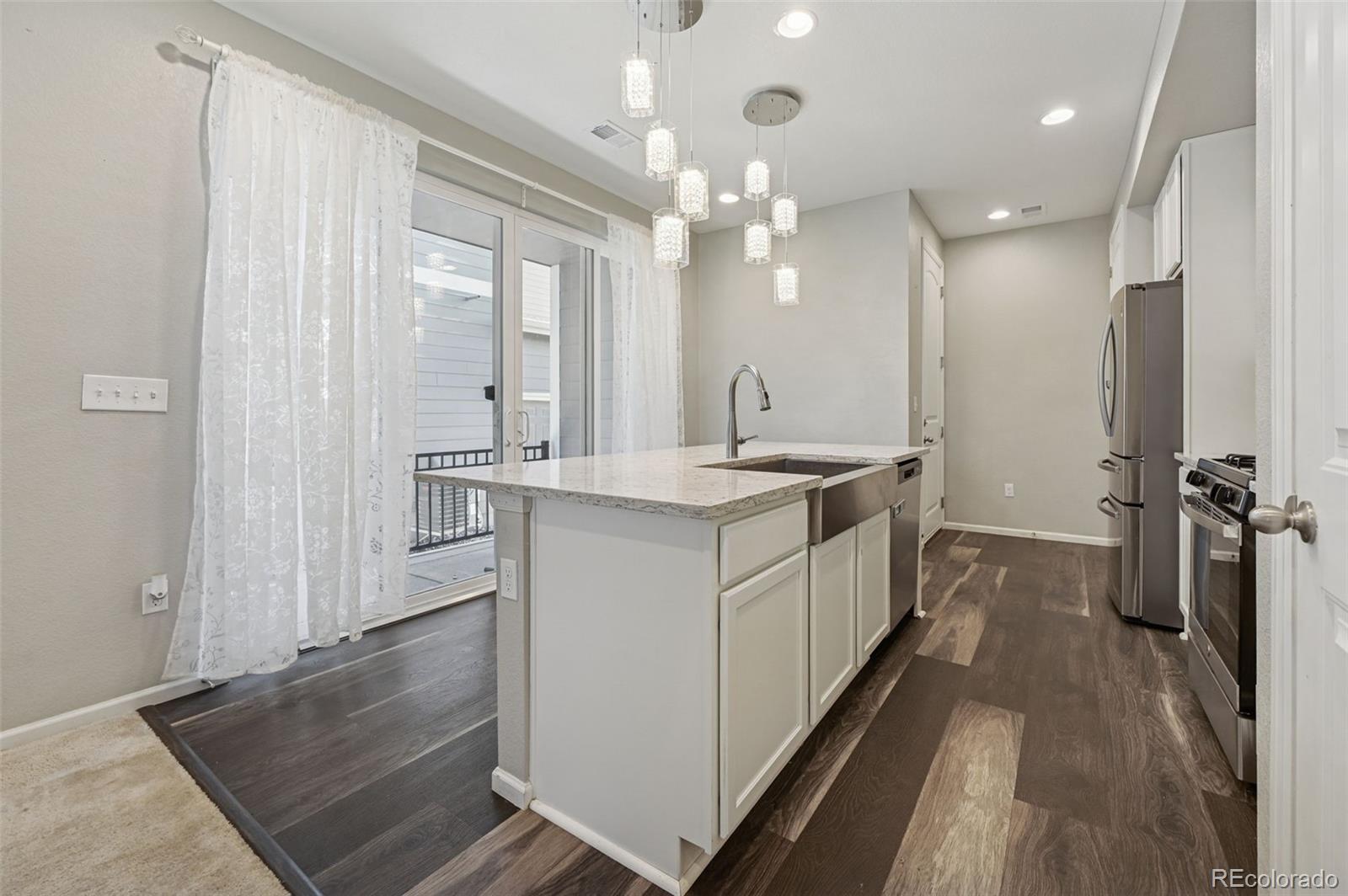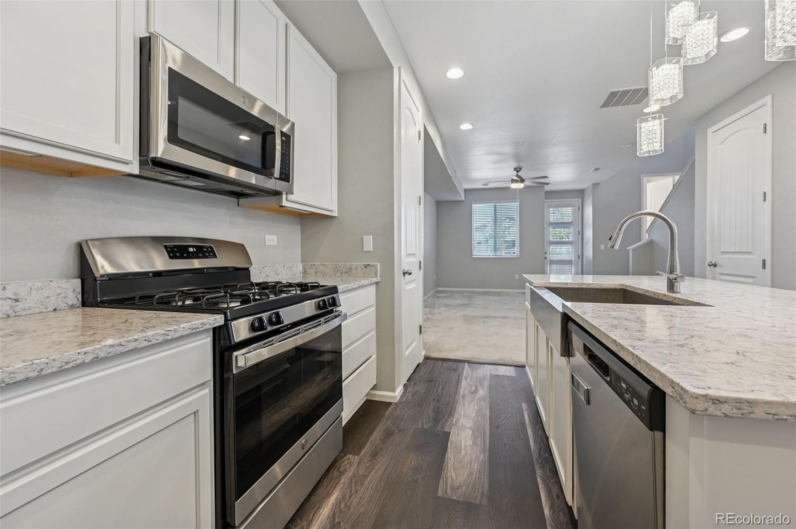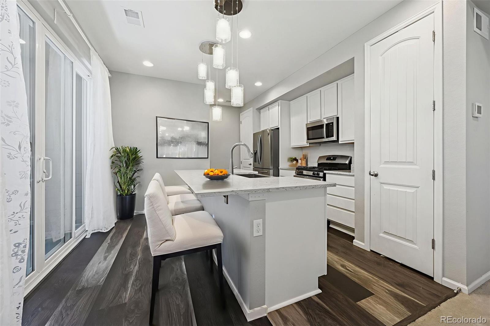 Modern Two-Bedroom Home with Open Floor Plan and Park Views Welcome to 23507 E 5th Place, a stylish and well-maintained home located in a desirable neighborhood featuring open green spaces, walking paths, and a welcoming community atmosphere. Step inside to find a bright, open-concept living area filled with natural light. The kitchen features included stainless steel appliances, quartz countertops, a farmhouse sink, a large island with seating, and light cabinetry; perfect for everyday living or entertaining. The adjoining living room provides a comfortable and flexible layout designed for modern lifestyles. Upstairs, you’ll find two spacious bedrooms with Elfa shelving storage systems, and two full bathrooms, with an additional half bath conveniently located on the main level. The home includes a two-car garage, with a professionally installed Elfa custom storage system, and contemporary finishes throughout. Stacked Washer and Dryer are also included, as well as all blinds, and upgraded interior doors. Enjoy easy access to parks, trails, shopping, and dining. This home offers both comfort and style in a thoughtfully designed community.
